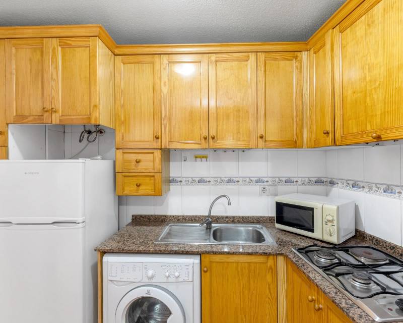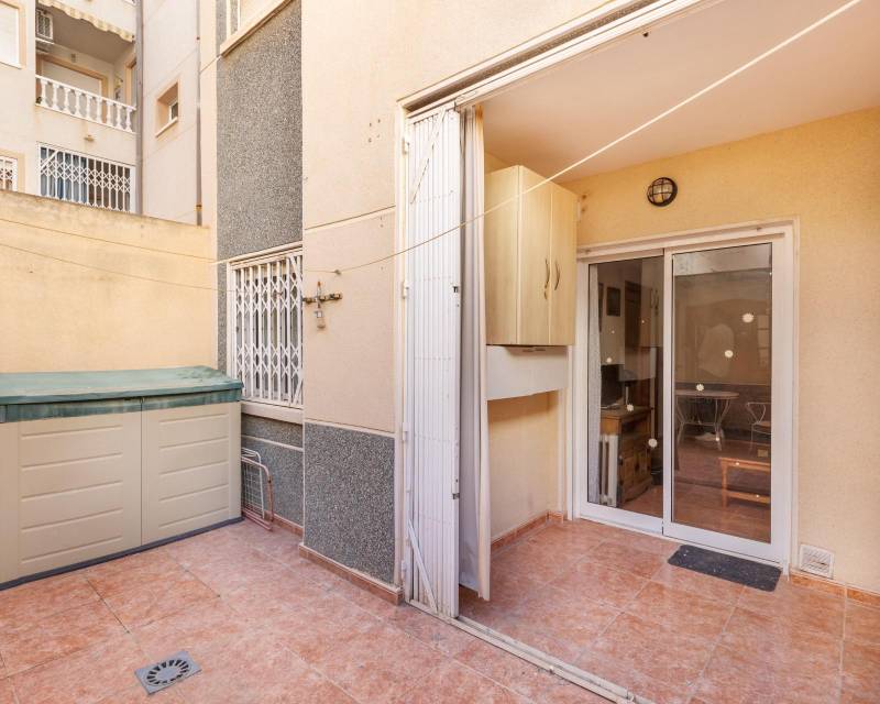 Te presentamos este encantador piso en planta baja, ideal para vivir todo el año o como segunda residencia. Con una superficie de 69 m2, esta vivienda destaca por su luminosidad gracias a su orientación sur y su excelente estado de conservación: ¡lista para entrar a vivir!~~Dispone de 1 amplia habitación con armario empotrado, 1 baño completo, cocina equipada y un salón-comedor con acceso a una agradable terraza, perfecta para disfrutar del clima mediterráneo. Se vende completamente amueblado y cuenta con aire acondicionado para mayor confort.~~La urbanización ofrece una bonita piscina comunitaria y ascensor. Además, está ubicada en una zona inmejorable, con todos los servicios al alcance: supermercados, colegios, centros médicos, parques, zonas infantiles y paradas de autobús. A tan solo 600 metros de la playa y a un paso del centro de Torrevieja.~~Gastos de comunidad: 87 €/mes~Gastos de Suma/IBI: 143€~~¡No dejes pasar esta oportunidad y ven a visitarlo!