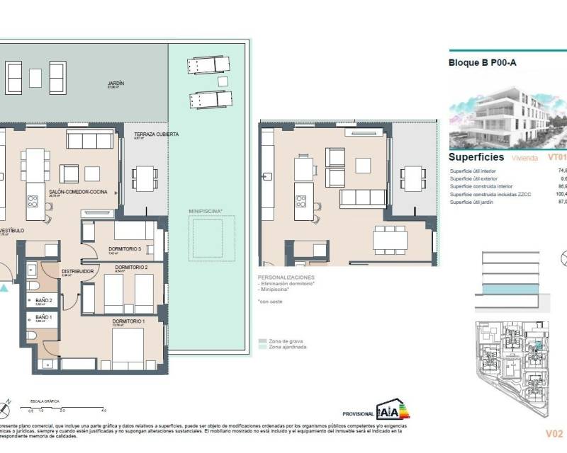 Viviendas exclusivas de obra nueva en Benicàssim: lujo y sostenibilidad junto al Mediterráneo Viviendas Premium adaptadas a tu estilo de vida Descubra un exclusivo proyecto de obra nueva en Benicàssim, que ofrece viviendas de 2, 3 y 4 dormitorios diseñadas para satisfacer sus necesidades. Elija entre residencias en planta baja con amplios jardines, apartamentos luminosos y ventilados en plantas intermedias o áticos premium con impresionantes vistas al mar Mediterráneo y al desierto de Las Palmas. Estas viviendas combinan el confort moderno con la excelencia arquitectónica, garantizando una amplia iluminación natural y ventilación cruzada para lograr un ambiente fresco y acogedor. Servicios modernos para su comodidad Esta comunidad residencial ofrece una amplia gama de servicios para mejorar su calidad de vida: Un garaje subterráneo comunitario con acceso directo desde todos los edificios. Amplios trasteros perfectos para el equipo deportivo o los artículos de temporada. Una piscina con múltiples ambientes y exuberantes zonas ajardinadas. Servicios de conserjería, zonas de calistenia, un gimnasio, un huerto urbano y un espacio comunitario compartido. Personalice su nuevo hogar con personalizaciones opcionales, asegurándose de que cada detalle se ajuste a sus preferencias. Vida sostenible con tecnología avanzada Estas viviendas están equipadas con tecnologías de alta eficiencia para una vida sostenible: Sistemas de agua caliente asistidos por energía solar. Iluminación LED para reducir el consumo de energía. Calefacción aerotérmica centralizada para agua caliente. Otras características adicionales incluyen puertas delanteras reforzadas y un completo sistema de aire acondicionado para el confort durante todo el año. Una ubicación privilegiada en Benicàssim Situada en el barrio premium de Las Villas, también conocido como «La Biarritz del Mediterráneo», esta promoción ofrece una mezcla inigualable de tranquilidad y accesibilidad. Playa: A sólo 700 metros para relajantes paseos junto al mar. Transporte: A 2 km de la estación de tren de Benicàssim y cerca de las conexiones con la autopista AP-7. Acceso a la ciudad: A 12 km de Castellón de la Plana y a 90 km de Valencia. Ocio: A 6 km del Club de Golf Costa de Azahar y a 3 km del Puerto Deportivo de Benicàssim. Compras y Servicios: A 5 km de los principales centros comerciales, colegios, centros sanitarios y complejos deportivos. Vivir en armonía con la naturaleza y la modernidad Benicàssim ofrece una mezcla perfecta de belleza natural y comodidades urbanas. Con sus espacios verdes, opciones recreativas y proximidad a los servicios esenciales, es el lugar ideal para aquellos que buscan un estilo de vida sereno pero conectado. No pierda esta oportunidad de conseguir la casa de sus sueños en una ubicación mediterránea privilegiada. Póngase en contacto con nosotros hoy mismo para obtener más información o para concertar una visita. 607
