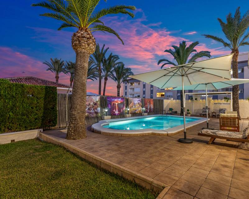 Te presentamos esta magnífica vivienda unifamiliar ubicada en una de las zonas más codiciadas de la costa: Rocío del Mar, a tan solo 200 metros de la playa. Se trata de un chalet semi-adosado distribuido en dos plantas, con una superficie construida de 141 m² sobre una parcela privada de 442 m². La propiedad ofrece cuatro dormitorios espaciosos y dos baños completos, con una distribución interior cómoda y funcional que garantiza una excelente luminosidad y ventilación natural en todas las estancias. Desde la planta superior se disfrutan agradables vistas al mar, añadiendo un valor especial a esta vivienda. El exterior destaca por su estupenda piscina privada, perfecta para relajarse y disfrutar del clima mediterráneo durante todo el año, además de amplias zonas de terraza y un cuidado jardín que invitan a compartir momentos inolvidables en familia o con amigos. La villa se entrega completamente amueblada y equipada con electrodomésticos, aire acondicionado, sistema de alarma y todas las comodidades necesarias para instalarse y disfrutar desde el primer día. Una opción ideal tanto como residencia habitual como para uso vacacional, situada en un entorno tranquilo y residencial, pero con todos los servicios esenciales a pocos minutos.