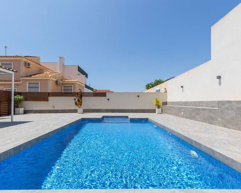 ¡Oportunidad única!~Vive el sueño en esta villa de lujo en la prestigiosa urbanizacion AGUAS NUEVAS en Torrevieja, un lugar rodeado de servicios donde lo tendra todo a unos pocos minutos.~~Esta increíble vivienda cuenta con 4 amplios dormitorios y 2 baños, diseñados para tu comodidad.~Además, disfrutarás de una cocina independiente muy amplia para poder cocinar sin humos en el resto de la vivienda.~~El atractivo no acaba ahí: esta vivienda cuenta con mas de 200 metros cuadrados de vivienda con grandes espacios como garaje cerrado o un gran sala de para poder disfrutar como sala de juegos, cine, o bien una gran sala para hacer fiestas.~~¡No dejes pasar esta oportunidad! Contacta con nosotros para descubrir cómo esta apasionante villa de lujo que podría convertirse en tu nuevo hogar.~~¿Pensando en vender tu propiedad y adquirir este apartamento de ensueño? Nuestra agencia te ofrece una valoración gratuita, con más de 20 años de experiencia en el sector y los datos de ventas más actualizados. Te ayudaremos a conseguir una venta rápida y ventajosa para que puedas comenzar a disfrutar de la vida que siempre has querido junto al mar.~~¡Contáctanos ahora y da el primer paso hacia tu nueva vida en la Costa Blanca!