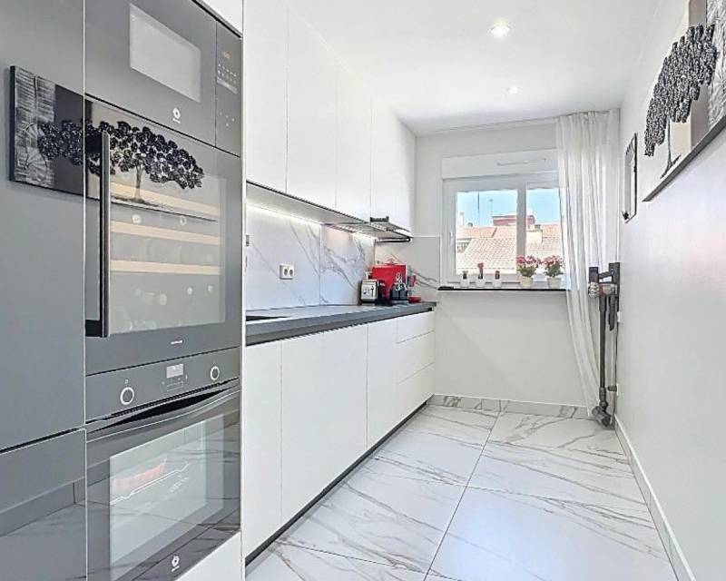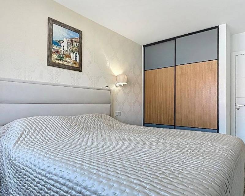A solo 200 metros de la arena, este excepcional apartamento de 99 m² ha sido renovado al más alto nivel, combinando el máximo confort con un estilo sofisticado. Cada detalle ha sido cuidadosamente diseñado para crear un hogar lujoso y funcional, ideal para vivir todo el año o como una exclusiva residencia vacacional. Dispone de 2 amplios dormitorios, un luminoso salón y una cocina independiente totalmente equipada con electrodomésticos de primera gama: lavadora-secadora, lavavajillas, horno, microondas, frigorífico, vinoteca de 36 botellas, cafetera, triturador de residuos y sistema de filtrado de agua para toda la vivienda. Cuenta con aislamiento acústico en paredes y ventanas, suelos radiantes y aire acondicionado central A++ con control desde el móvil. Incluye persianas automáticas (con estores reforzados en el balcón), puertas sin bordes con cierre silencioso, ventanas de doble cristal con reflexión de luz, alarma y cámaras de vigilancia. Se vende amueblado con acabados de alta calidad. Además, ofrece terraza privada en solárium, plaza de aparcamiento subterráneo y acceso a un edificio muy cuidado con ascensor y piscina comunitaria.