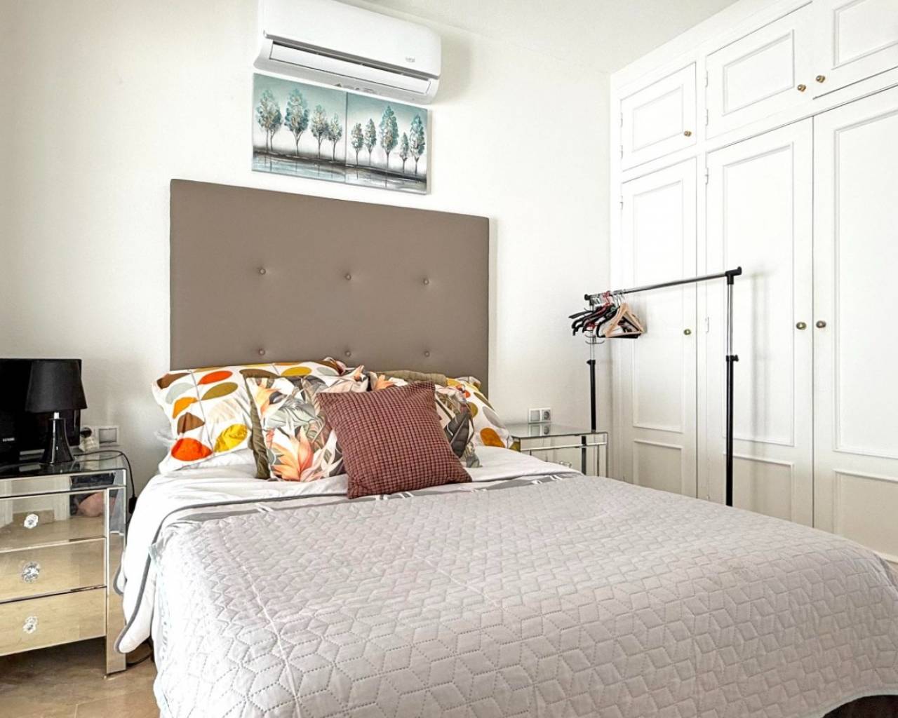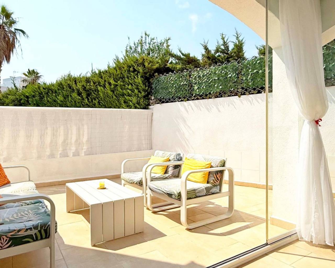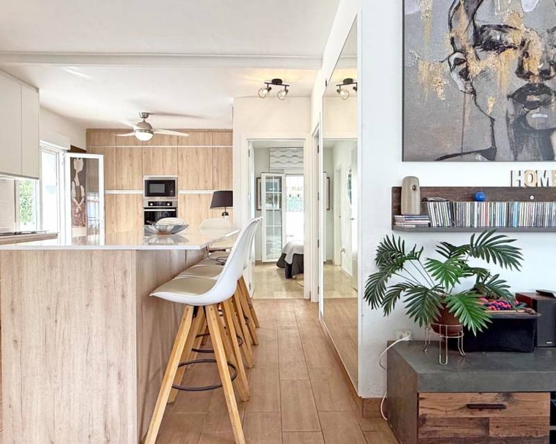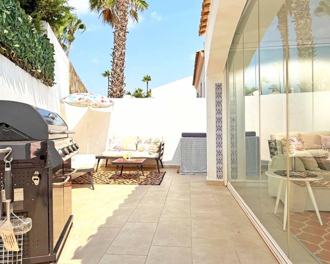 Esta villa, cuidadosamente mantenida, ha sido reformada en una vivienda de 2/3 dormitorios que combina comodidad y estilo. Dispone de piscina privada, tres baños (dos en suite), una amplia cocina-comedor y un gran salón con acceso directo a un balcón con vistas a la piscina, que puede cerrarse con cortinas de cristal para disfrutarlo todo el año. El dormitorio de invitados cuenta con un patio privado también cerrado con cortinas de cristal, mientras que el dormitorio principal ofrece un amplio solárium con impresionantes vistas al mar. Además, dispone de aire acondicionado en toda la vivienda, opción de calefacción central, dos grandes trasteros y se encuentra en una zona tranquila y privada de Villamartin, a poca distancia de la famosa Plaza Villamartin y del campo de golf.