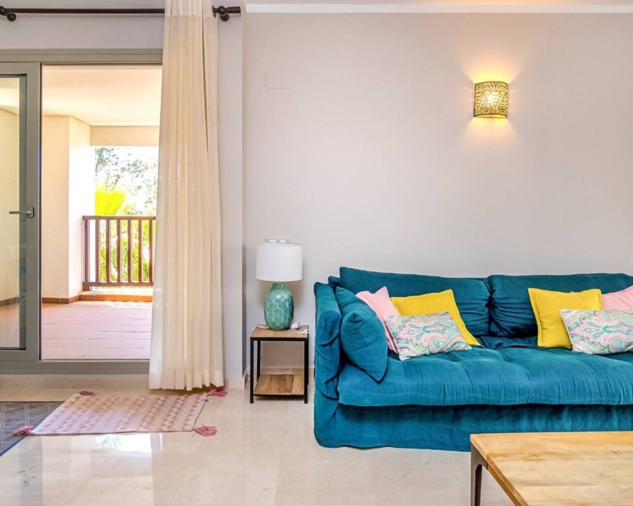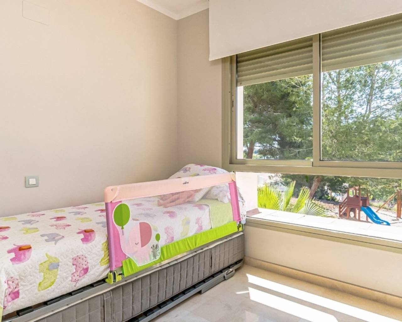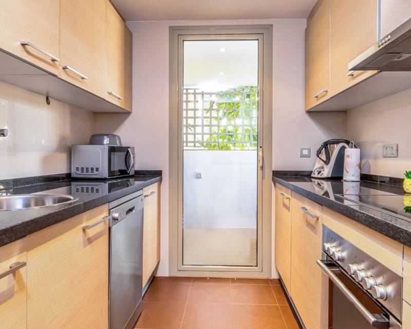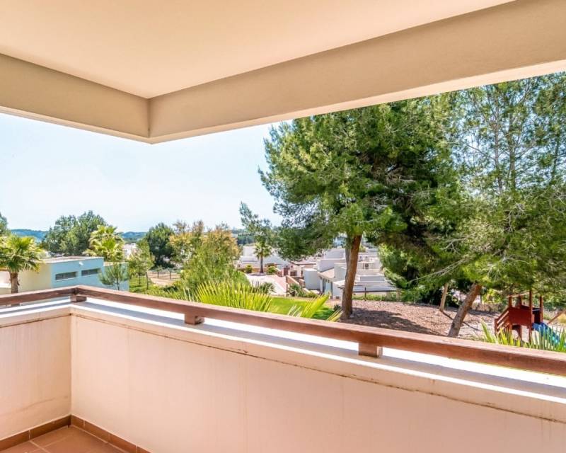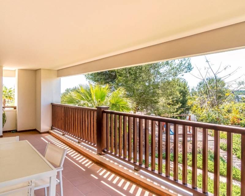 Ubicado en la prestigiosa Comunidad Encina de Las Colinas Golf & Country Club, este amplio apartamento en esquina en primera planta combina a la perfección comodidad, estilo y conveniencia. Con 145 m² de espacio habitable luminoso y amplias terrazas, la vivienda está diseñada para disfrutar tanto de interiores como de exteriores. Su excelente orientación sur, este y oeste garantiza luz natural durante todo el día, ideal tanto para vivir todo el año como para vacaciones. El apartamento dispone de 3 dormitorios, 2 baños y una cocina totalmente equipada, todo con acabados de primera calidad. Recientemente se ha instalado un sistema de aire acondicionado moderno y eficiente, lo que lo convierte en un hogar listo para entrar a vivir. El acceso directo desde la plaza de aparcamiento privado facilita la vida diaria, sin necesidad de escaleras ni ascensor. Situado en la comunidad más consolidada de Las Colinas, los residentes disfrutan de jardines maduros, entorno tranquilo, seguridad 24h y dos piscinas estilo resort.