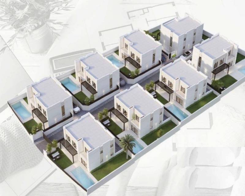 Villas de nueva construcción con piscina privada en San Juan de Alicante Vida residencial exclusiva en San Juan Descubra esta exclusiva promoción de 8 villas independientes en San Juan de Alicante, cada una con jardín y piscina privados. Estas modernas viviendas están diseñadas para mejorar la vida al aire libre en un entorno tranquilo, ofreciendo privacidad y comodidad a pocos minutos de la vibrante ciudad de Alicante y las doradas playas de la Costa Blanca. Distribuciones amplias y funcionales Cada villa ofrece 295 m² de superficie construida distribuidos en dos plantas, cuidadosamente planificadas para ofrecer comodidad y practicidad: Planta baja: luminoso salón-comedor con cocina abierta, aseo de invitados, lavadero/despensa y acceso directo a la terraza, el jardín y la piscina. Primera planta: dormitorio principal con terraza, vestidor y baño en suite, además de dos dormitorios dobles adicionales y un baño completo. Diseño moderno y acabados de alta calidad Construidas con un estilo arquitectónico contemporáneo, estas villas combinan elegancia y eficiencia energética. Los grandes ventanales garantizan una abundante luz natural, mientras que la orientación maximiza la exposición al sol durante todo el día. Los interiores están elaborados con acabados de alta calidad, entre los que se incluyen: Cocinas de diseño equipadas para la funcionalidad y el estilo Baños completamente amueblados con mamparas de ducha Excelente aislamiento y calificación de eficiencia energética Clase B tanto para el consumo como para las emisiones de CO2 Ubicación privilegiada en San Juan de Alicante La promoción se encuentra en Lloixa, considerada la mejor zona residencial de San Juan de Alicante. Este barrio ofrece amplias aceras, carriles bici y fácil acceso a los servicios esenciales. Distancias a los principales puntos de interés: Playa de San Juan: 4 km Cabo de las Huertas: 6 km Playa de La Albufereta: 7 km Centro de Alicante: 8 km Aeropuerto Internacional de Alicante: 20 km Bonalba Golf Resort: 10 km Puerto deportivo de Alicante: 9 km Colegios, tiendas, restaurantes y servicios sanitarios se encuentran a poca distancia, lo que hace que esta ubicación sea práctica y ideal para familias. Tu hogar mediterráneo ideal Estas villas ofrecen la combinación perfecta de diseño moderno, eficiencia energética y ubicación privilegiada, lo que las convierte en una excelente opción como residencia permanente o casa de vacaciones. No pierda esta oportunidad de vivir en una de las zonas más cotizadas de Alicante. Póngase en contacto con nosotros hoy mismo para concertar una visita y hacer realidad la villa de sus sueños.