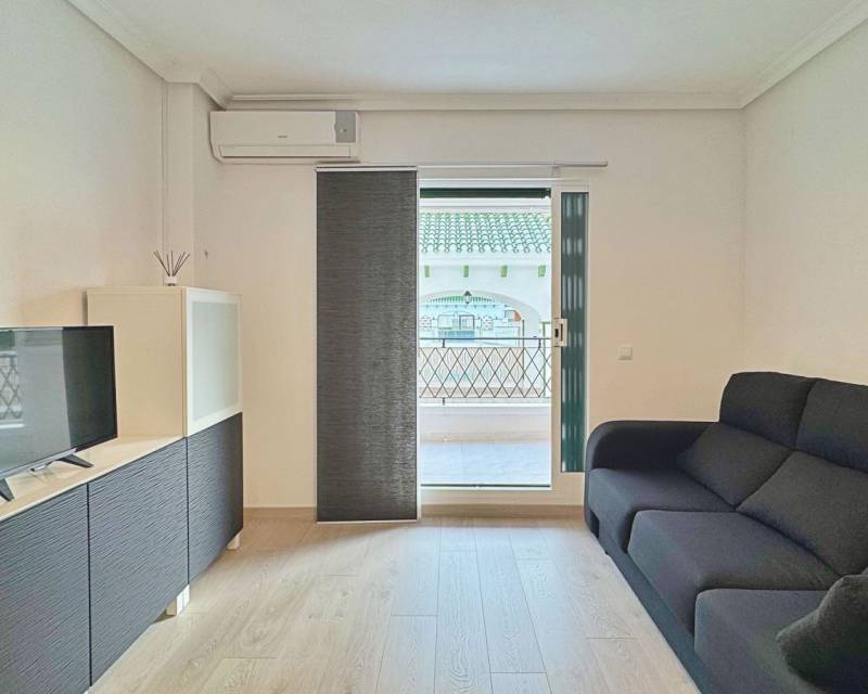 A tan solo 200 metros de la playa de La Mata, en Torrevieja, se encuentra este precioso apartamento en venta, completamente reformado con materiales de alta calidad y un diseño moderno y funcional. La vivienda, situada en la urbanización Viñamar V, cuenta con 1 dormitorio, 1 baño, una superficie interior de 45 m² y una amplia terraza de 12 m² orientada al sur, ideal para disfrutar del sol durante todo el año. La terraza dispone de toldos, creando un espacio perfecto para relajarse al aire libre con privacidad y confort. Este apartamento se vende totalmente amueblado y equipado con electrodomésticos, aire acondicionado y sistema de alarma, listo para entrar a vivir o comenzar a rentabilizar desde el primer día. Incluye además una plaza de garaje privada, un valor añadido muy apreciado en esta zona costera de alta demanda. Ubicado dentro de una urbanización cerrada con piscina comunitaria y zonas comunes cuidadas, ofrece seguridad, tranquilidad y un entorno perfecto tanto para residencia habitual como para vacaciones. En los alrededores se encuentran todos los servicios necesarios: supermercados, restaurantes, farmacias, transporte público y zonas de ocio. Gracias a su excelente ubicación junto al mar, su equipamiento completo y su alto potencial de inversión, esta propiedad representa una magnífica oportunidad para comprar un apartamento en La Mata, Torrevieja, ideal tanto como vivienda permanente como inversión en alquiler vacacional o de larga estancia.