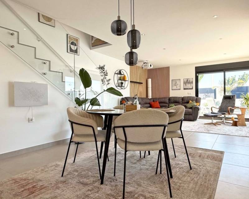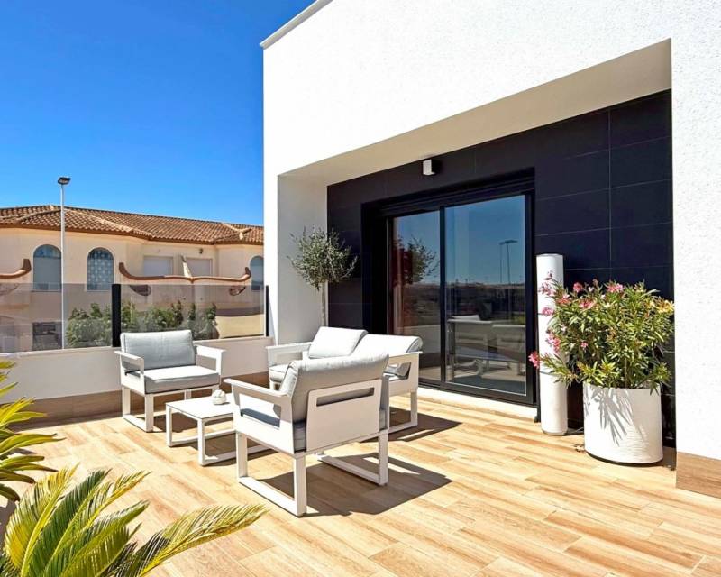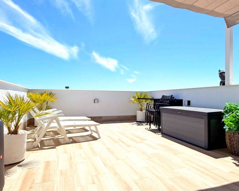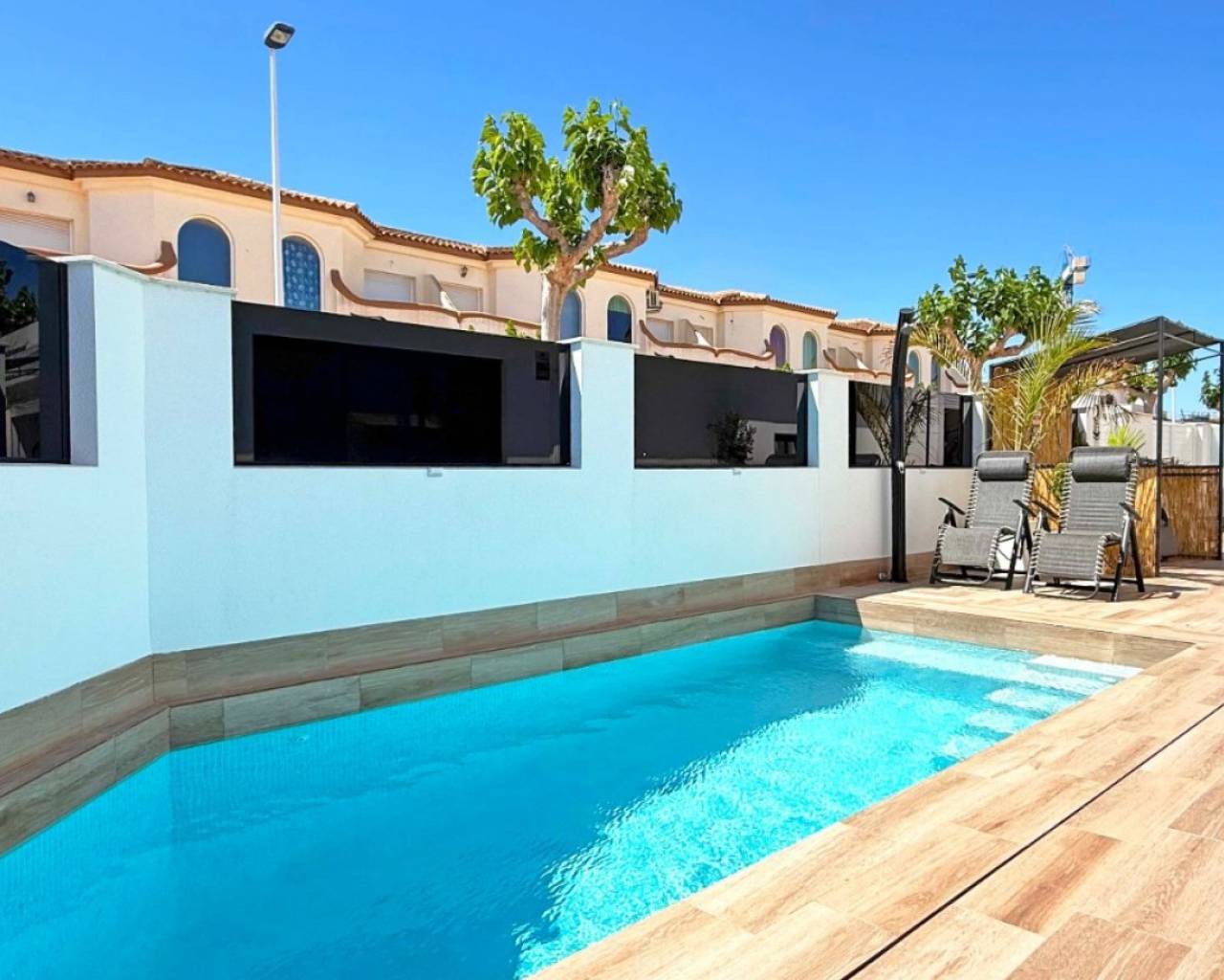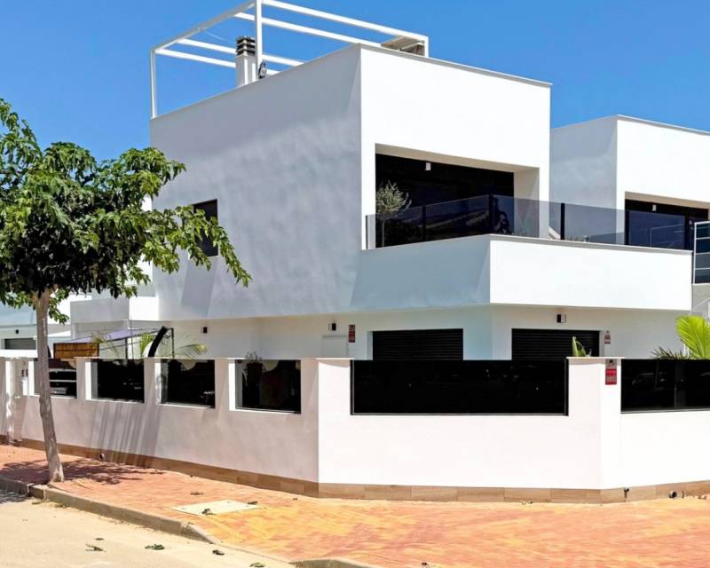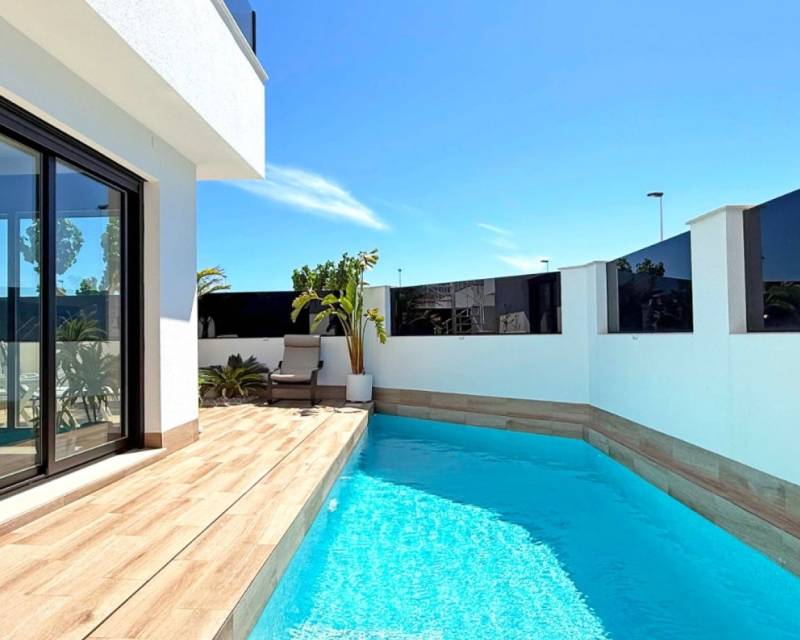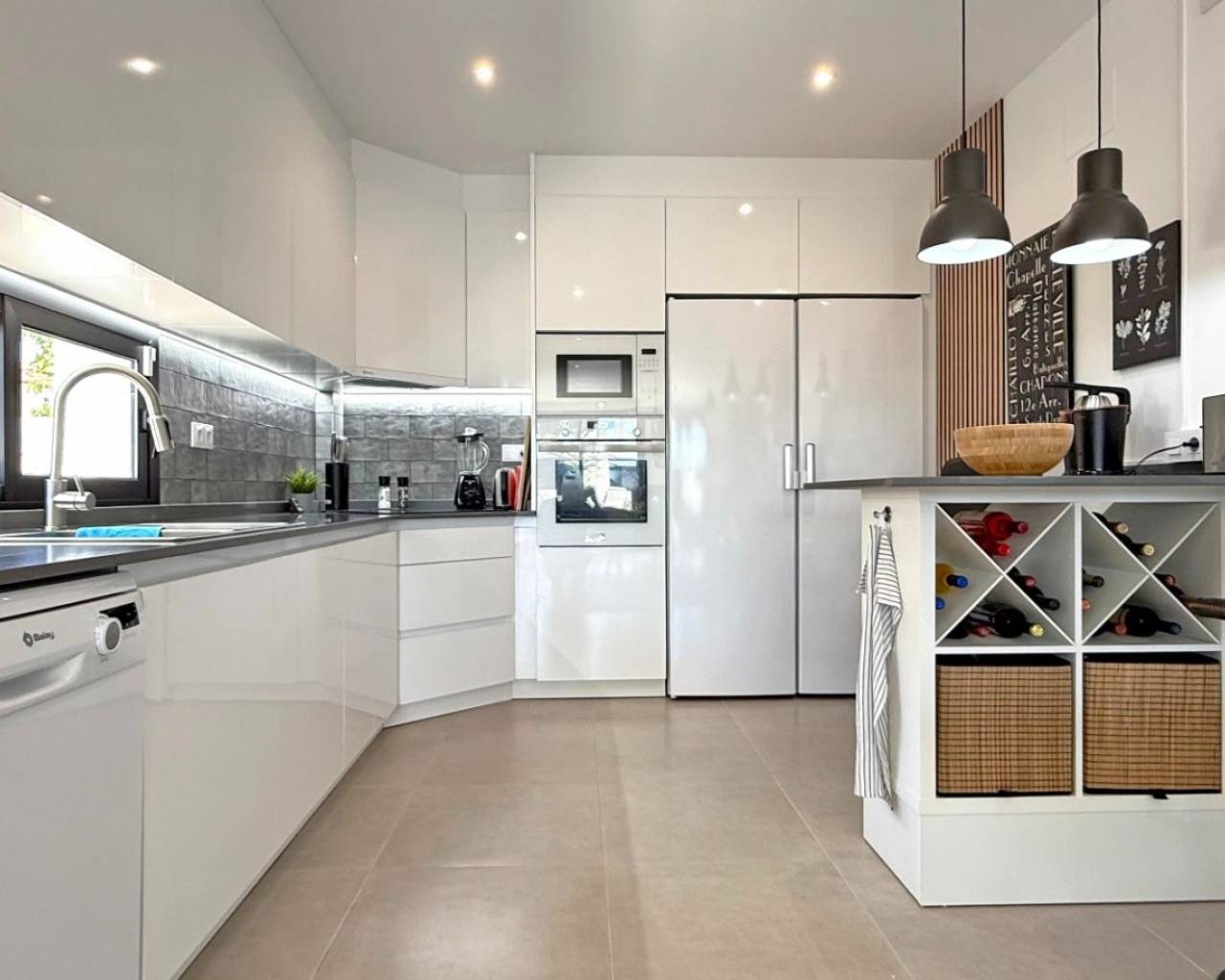 Descubre esta elegante villa independiente orientada al sur, construida en 2024 y en estado impecable. Situada en el corazón de San Pedro del Pinatar, esta vivienda de dos dormitorios y dos baños destaca por sus acabados de alta calidad y numerosos extras. La vivienda ofrece un salón ampliado y luminoso con acceso directo a las zonas exteriores. Disfruta de un balcón privado y un gran solárium con cocina exterior totalmente equipada, iluminación, y una moderna pérgola, ideal para relajarse o recibir invitados. Características adicionales: Garaje privado con armarios a medida. Posibilidad de convertirlo en un tercer dormitorio con baño. Escalera exterior al solárium Reguladores de intensidad de luz Enchufes adicionales por toda la casa Puertas correderas adicionales en el salón para mayor luminosidad y accesibilidad. Una opción perfecta como vivienda habitual o casa de vacaciones moderna y cómoda.