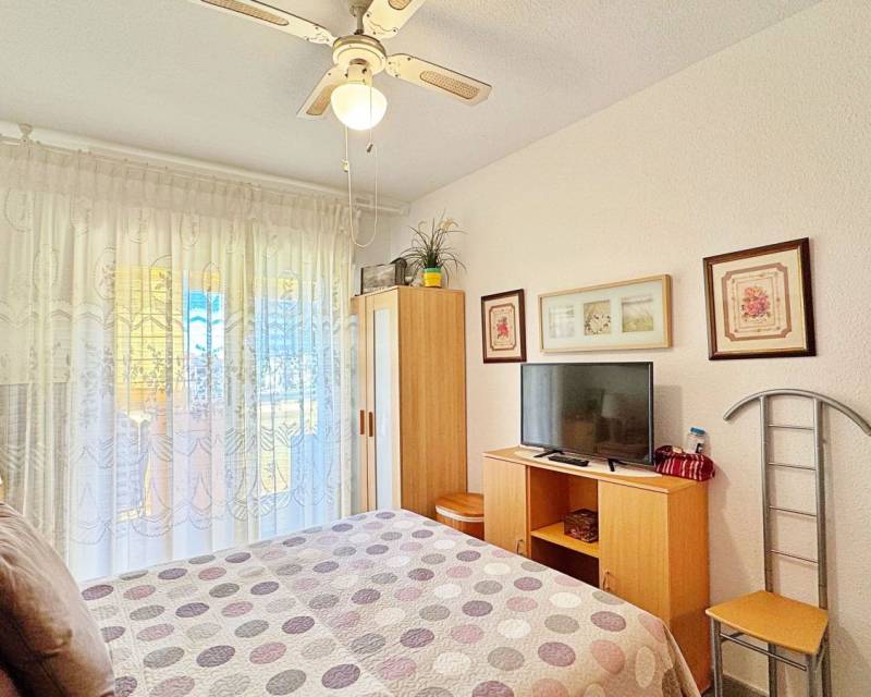 Apartamento en venta en Rocío del Mar, Torrevieja, situado en una exclusiva zona residencial junto a Punta Prima, a tan solo 200 metros del mar. Esta vivienda de 43 m² se encuentra dentro de una urbanización privada con piscina comunitaria y ofrece un ambiente tranquilo y familiar durante todo el año. El apartamento está en excelente estado de conservación y destaca por su orientación sur, que garantiza una luminosidad excepcional durante todo el día. Dispone de un acogedor salón comedor con salida a una terraza acristalada ideal para disfrutar del clima mediterráneo, cocina completamente equipada, un dormitorio doble con armario empotrado y un baño completo con bañera y ventilación natural. La terraza ofrece agradables vistas laterales al mar y espacio suficiente para colocar una mesa y varias sillas. Entre sus características adicionales se incluyen aire acondicionado en el salón, toldos instalados, suelos de plaqueta, edificio con ascensor y acceso adaptado. La vivienda se entrega lista para entrar a vivir. La urbanización cuenta con una amplia piscina comunitaria rodeada de zonas de descanso, en un entorno seguro y cuidado. Su ubicación es inmejorable, a pocos pasos del mar y muy cerca de todos los servicios como supermercados, restaurantes, transporte público y zonas de ocio. Este apartamento en Rocío del Mar es una excelente oportunidad de compra tanto para residencia habitual como para disfrutarlo como vivienda vacacional o como inversión con alta rentabilidad en una de las zonas más demandadas de la costa de Torrevieja.