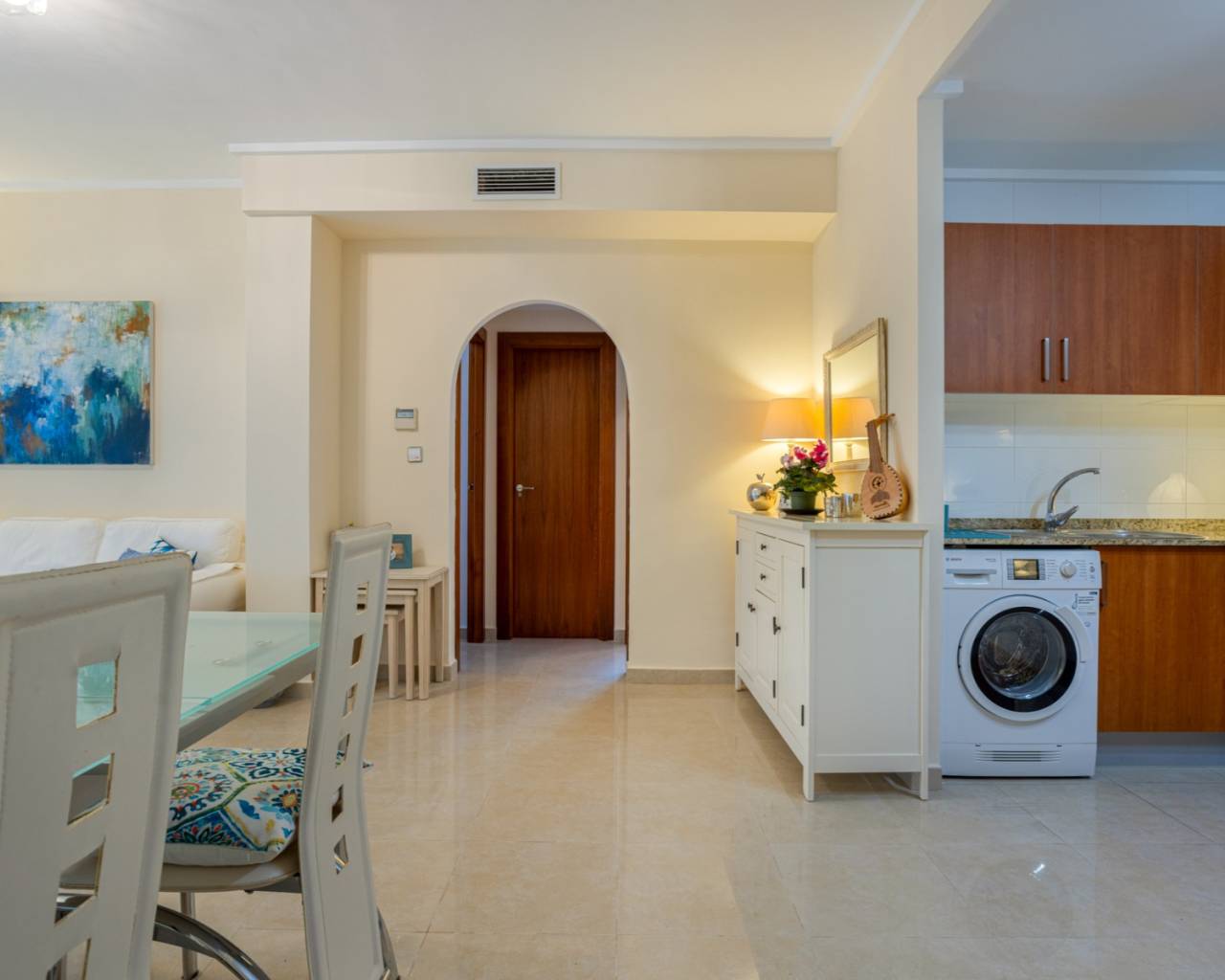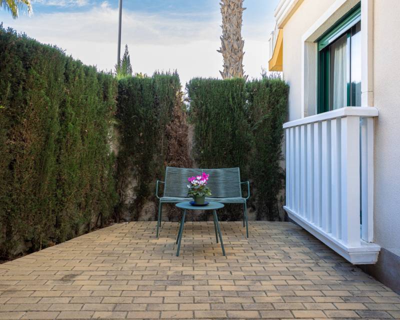 Apartamento en planta baja con jardín y piscina compartida en Ciudad Quesada Les presentamos este encantador apartamento en planta baja, ubicado en una de las zonas residenciales más populares de Doña Pepa, en el municipio de Rojales. Es el hogar perfecto para quienes buscan comodidad, un clima mediterráneo y proximidad a todos los servicios. Este apartamento de 84 metros cuadrados cuenta con una distribución práctica y luminosa. Al entrar, encontrará una amplia terraza cubierta, ideal para disfrutar del clima templado de la Costa Blanca durante todo el año. La zona de estar consta de un acogedor salón-comedor y una cocina americana totalmente equipada con electrodomésticos modernos, que ofrece un espacio funcional y confortable para el día a día. Este apartamento ofrece dos amplias habitaciones, cada una con armario empotrado, y un baño elegantemente decorado. Se encuentra en excelentes condiciones, listo para entrar a vivir y completamente amueblado, con todos los electrodomésticos de cocina y aire acondicionado para un confort óptimo durante todo el año. La terraza, contigua al salón, está equipada con persianas verticales que proporcionan sombra en verano y una temperatura agradable en los meses más fríos. La propiedad cuenta con un jardín privado, ideal para relajarse, tomar el sol o comer al aire libre. Hay aparcamiento privado justo al lado de la puerta. Los huéspedes también tienen acceso a tres magníficas piscinas comunitarias, rodeadas de preciosos jardines: el lugar perfecto para relajarse y disfrutar de la belleza del entorno. Ubicación excepcional: La propiedad se encuentra a tan solo 12 minutos de las playas de Guardamar y Torrevieja, a 40 minutos del aeropuerto de Alicante, a 5 minutos de instalaciones de ocio, restaurantes y supermercados y a 7 minutos del campo de golf La Marquesa, uno de los más prestigiosos de la región. Esta propiedad es ideal como residencia principal o secundaria y, debido a la alta demanda de apartamentos vacacionales, también como una excelente oportunidad de inversión.