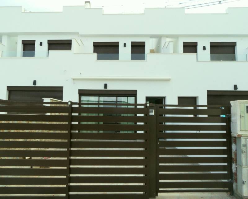 ADOSADOS DE OBRA NUEVA EN PILAR DE LA HORADADA Adosados modernos de nueva construcción en una zona tranquila de Pilar de la Horadada con proximidad a todo lo que necesitas. Los adosados tienen 4 dormitorios, 2 baños, cocina abierta, salón con acceso directo a la acogedora zona de la piscina, terraza en la parte trasera con plaza de aparcamiento, terraza y gran solarium en la azotea. Pilar de la Horadada es un típico pueblo español en la parte más meridional de la Costa Blanca. La gran calle principal tiene supermercados, muchas tiendas, restaurantes y bares y algunas plazas encantadoras. Las hermosas playas de Torre de la Horadada y Mil Palmeras con arena fina y paseo marítimo está a sólo 5 minutos. Los aeropuertos de Corvera (Murcia) y Alicante están a 40 y 55 minutos respectivamente.