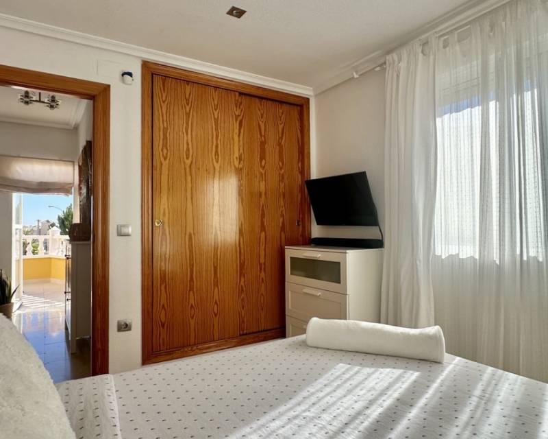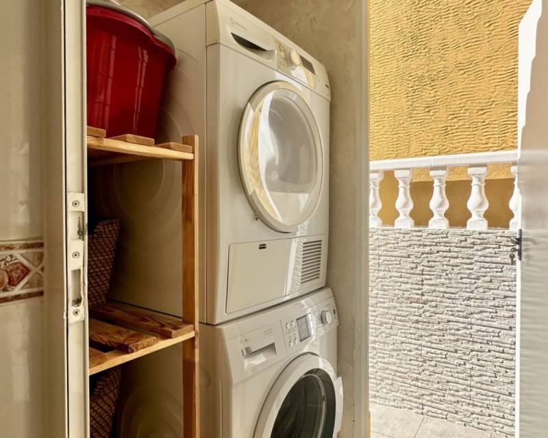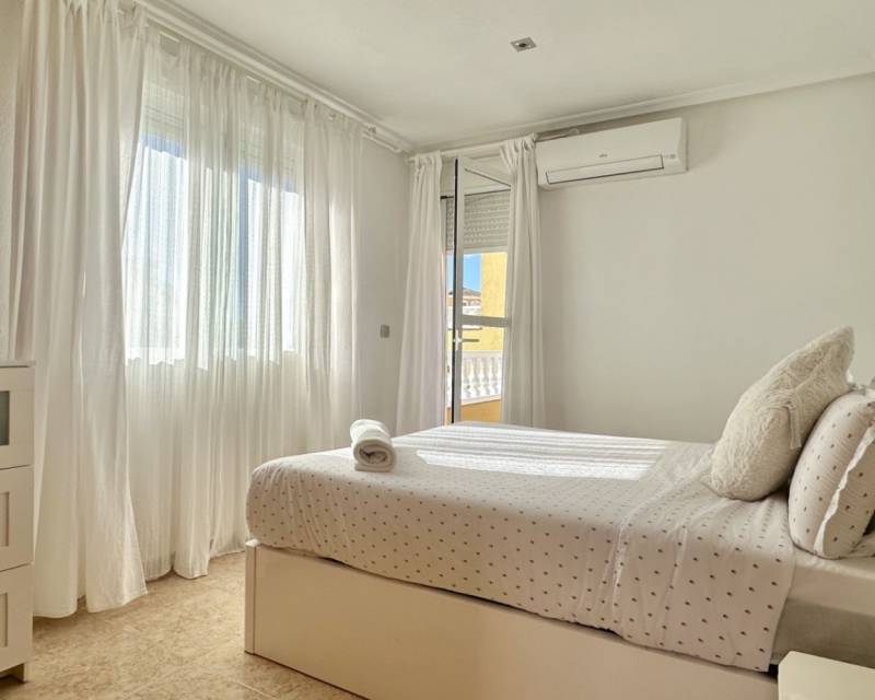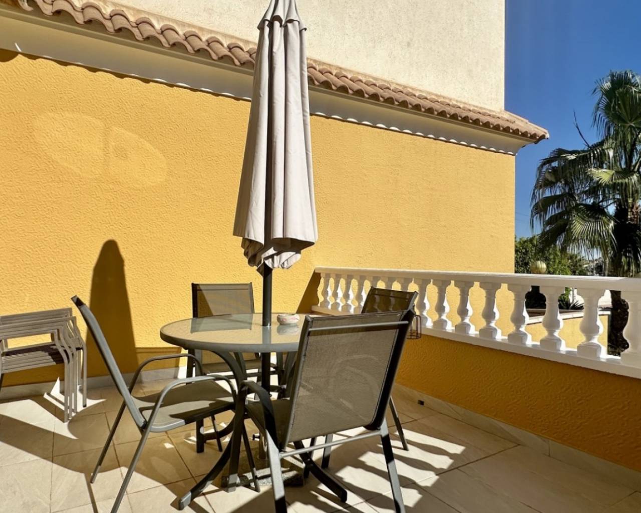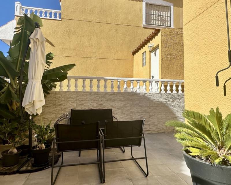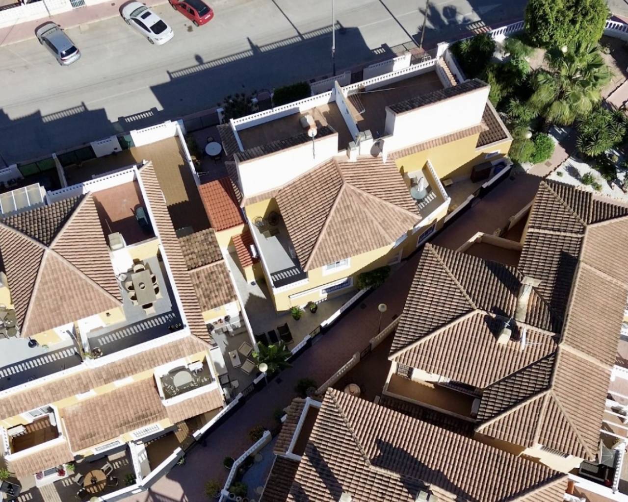 Esta preciosa villa pareada de dos plantas ofrece 167 m² construidos y 116 m² útiles, ubicada en una tranquila y segura urbanización con piscina comunitaria y zonas verdes. Cuenta con 3 dormitorios amplios, 2 baños, cocina independiente totalmente equipada, y un luminoso salón con aire acondicionado. Además, dispone de 4 terrazas privadas, ideales para comer al aire libre, relajarse o tomar el sol. Ubicación privilegiada: A 6 minutos de la playaA 5 minutos de La Zenia BoulevardA 10 minutos del Hospital de TorreviejaA 2 minutos de colegios Perfecta como vivienda habitual, casa de vacaciones o inversión.