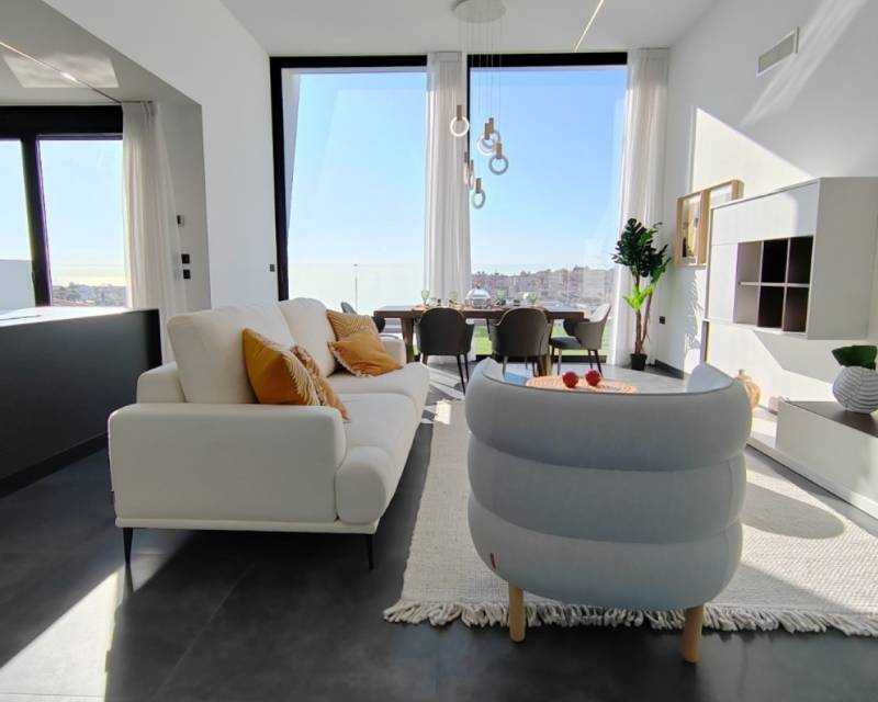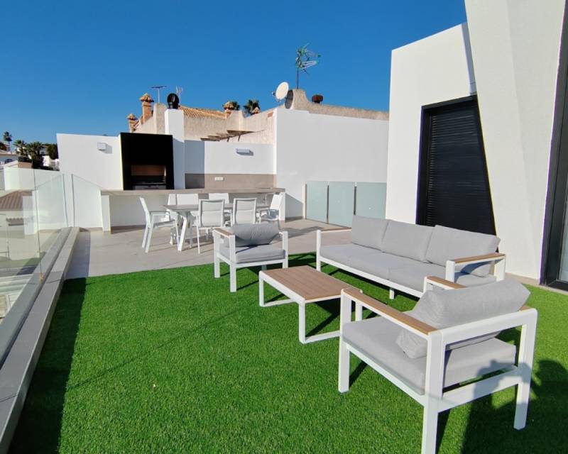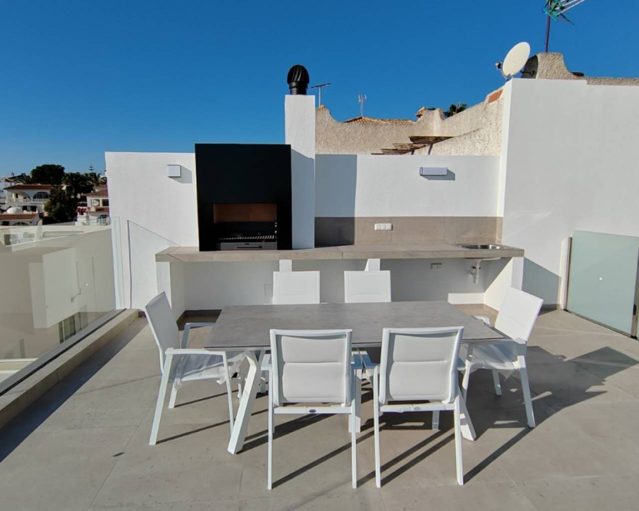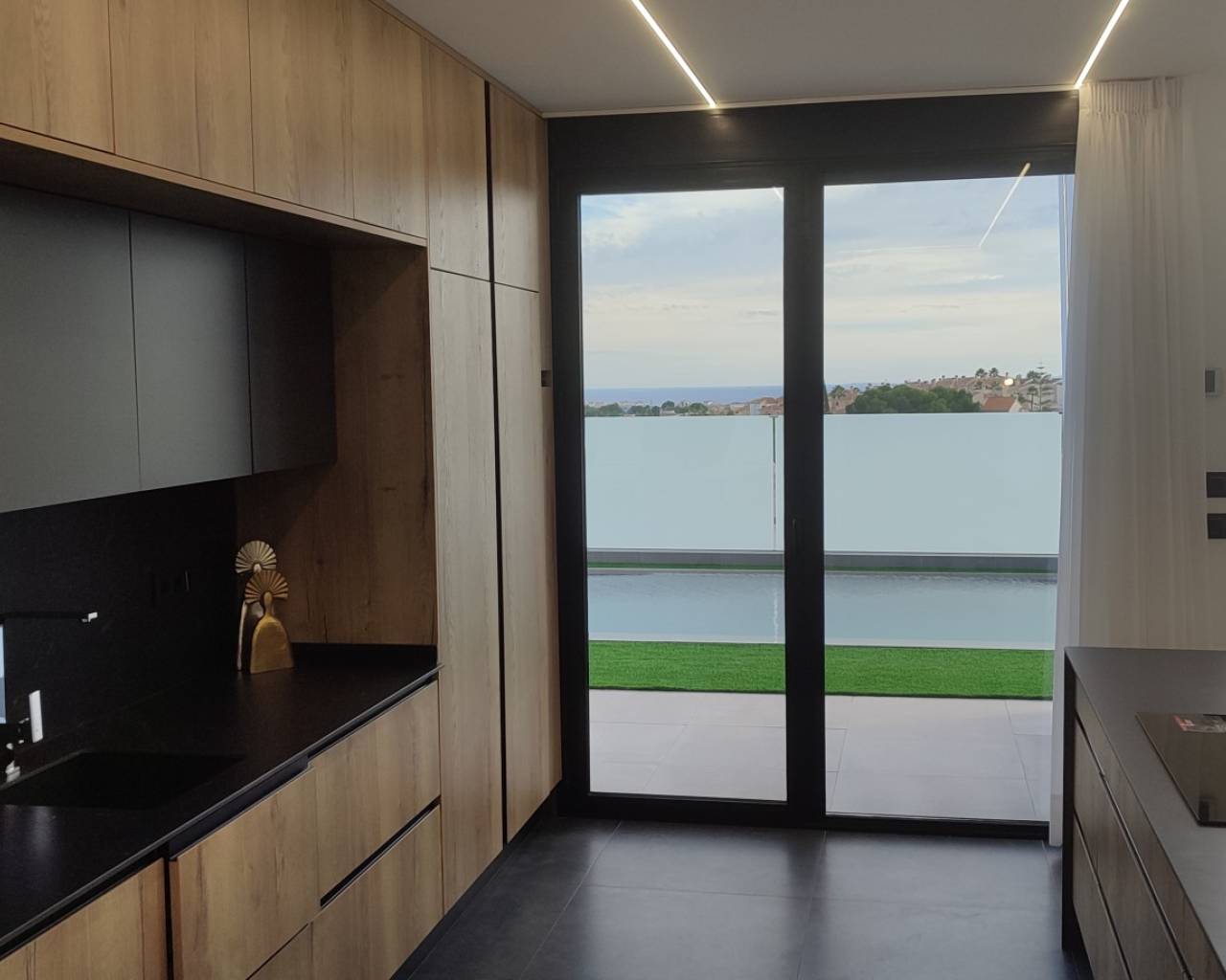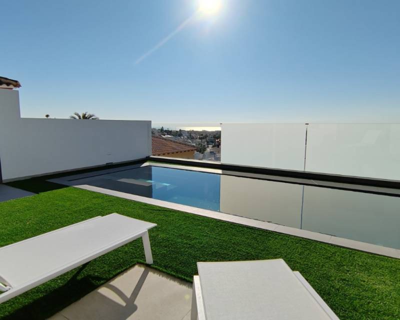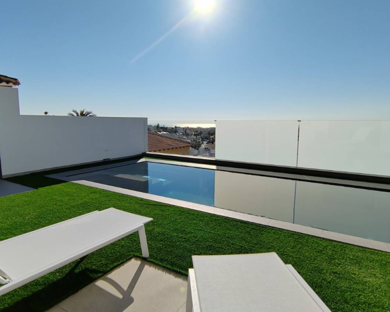 Adéntrese en el lujo mediterráneo con esta villa de nueva construcción en Los Balcones, Torrevieja, donde el diseño contemporáneo se une al confort y al estilo. Cada detalle de esta vivienda ha sido creado para ofrecer un estilo de vida de sofisticación, relax y comodidad. Características de la propiedad 3 amplios dormitorios y 3 elegantes baños 130 m² de espacio habitable moderno y luminoso Parcela privada de 475 m² para máximo confort y privacidad Garaje/sótano de 250 m² con espacio para varios coches, gimnasio, cine o trastero Orientación sur para disfrutar del sol todo el día Piscina privada de 12 x 3,5 m con jardín paisajístico Salón y cocina de planta abierta con acceso directo a la terraza y piscina Solárium con vistas panorámicas al mar Acabados de primera calidad en toda la vivienda Ubicación Situada en Los Balcones, Torrevieja, esta villa goza de una ubicación inmejorable, cerca de colegios internacionales, centros comerciales, restaurantes, campos de golf y a solo un corto trayecto en coche de las playas de arena de Orihuela Costa. Esto es más que una villa: es una declaración de vida mediterránea moderna.