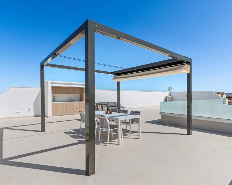 Villas de nueva construcción cerca de Serena Golf en Los Alcázares Villas modernas en una ubicación privilegiada junto a la costa y al campo de golf Este exclusivo proyecto residencial de nueva construcción ofrece villas modernas situadas en Los Alcázares, a poca distancia del prestigioso Serena Golf y a solo 1,2 km de las playas de arena del Mar Menor. Situadas en una de las zonas más atractivas de la Región de Murcia, estas viviendas combinan un diseño contemporáneo, comodidad y una excelente ubicación cerca del mar, del golf y de todos los servicios diarios. Los Alcázares es una localidad costera bien establecida, conocida por su estilo de vida relajado, su largo paseo marítimo, los deportes acuáticos y su clima templado durante todo el año. Diseño de una sola planta con espacios exteriores privados La promoción cuenta con elegantes villas de 3 dormitorios y 2 baños, disponibles en dos tamaños diferentes, de aproximadamente 106 m² y 130 m². El modelo más grande también incluye un aseo adicional para invitados. Todas las villas están diseñadas en una sola planta, lo que ofrece una vida práctica y cómoda. La cocina, el comedor y la sala de estar de planta abierta conectan directamente con una terraza y un jardín privado con piscina, creando un espacio ideal para la vida interior y exterior. Cada propiedad incluye también un solárium privado y una plaza de aparcamiento en la parcela. Acabados de alta calidad y equipamiento moderno Estas villas están construidas con materiales de alta calidad y equipadas con características modernas. Las cocinas, totalmente equipadas, están disponibles en acabado blanco brillante o madera e incluyen encimeras de cuarzo, fregadero de acero inoxidable, placa de inducción con extractor integrado, horno, microondas, lavadora, frigorífico integrado y lavavajillas. Los baños están equipados con muebles, espejos, iluminación y calentadores eléctricos de toallas. Otras características adicionales son las persianas eléctricas en los dormitorios, la iluminación LED en toda la propiedad y un completo sistema de aire acondicionado por conductos de Fujitsu. Piscina privada y confort energéticamente eficiente Cada villa incluye una piscina privada con acabado de azulejos cerámicos azules, escalones integrados e iluminación LED blanca. La piscina está preparada con preinstalación para una bomba de calor. La combinación de un control climático eficiente, una construcción moderna y un diseño bien pensado garantiza el confort durante todo el año. Excelente conectividad y distancias clave Las villas se encuentran a poca distancia a pie del centro de Los Alcázares y muy cerca de Serena Golf. La playa está a aproximadamente 1,2 km. La ciudad de Cartagena está a unos 20 km y ofrece una rica oferta cultural y gastronómica. El aeropuerto internacional de Murcia-Corvera está a unos 22 km y el de Alicante, a unos 90 km. También hay varios campos de golf y puertos deportivos en las cercanías, lo que hace que esta ubicación sea ideal tanto para vivir como para pasar las vacaciones. Su hogar ideal junto al mar y al golf Si busca una villa moderna de nueva construcción cerca de la playa y del golf en Los Alcázares, póngase en contacto con nosotros hoy mismo para obtener más información o concertar una visita privada.