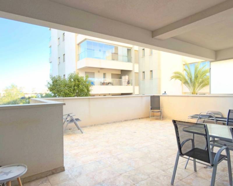 Situado en la codiciada zona de Los Dolses, Orihuela Costa, este atractivo apartamento en planta baja ofrece comodidad, calidad y un excelente estilo de vida dentro de una urbanización cerrada y muy bien cuidada. La vivienda cuenta con dos amplios dormitorios y dos baños modernos, lo que la hace ideal tanto para residencia habitual como para uso vacacional. El luminoso salón-comedor de concepto abierto tiene acceso directo a una gran terraza privada con vistas abiertas al parque, creando un espacio perfecto para disfrutar de comidas al aire libre, relajarse o aprovechar el clima mediterráneo durante todo el año. La propiedad se vende totalmente amueblada, lista para entrar a vivir o comenzar a alquilar de inmediato. Los acabados de calidad y la distribución bien pensada garantizan un ambiente cómodo y acogedor en toda la vivienda. Los residentes de esta exclusiva comunidad disfrutan de cuidados jardines comunitarios, piscina, zona de spa y aparcamiento, todo dentro de un entorno seguro y cerrado. Ubicado cerca de La Zenia Boulevard, campos de golf, playas y todos los servicios, este apartamento en planta baja es una excelente opción como vivienda vacacional, inversión o residencia permanente en la Costa Blanca. Una propiedad llave en mano en una ubicación privilegiada, lista para disfrutar.