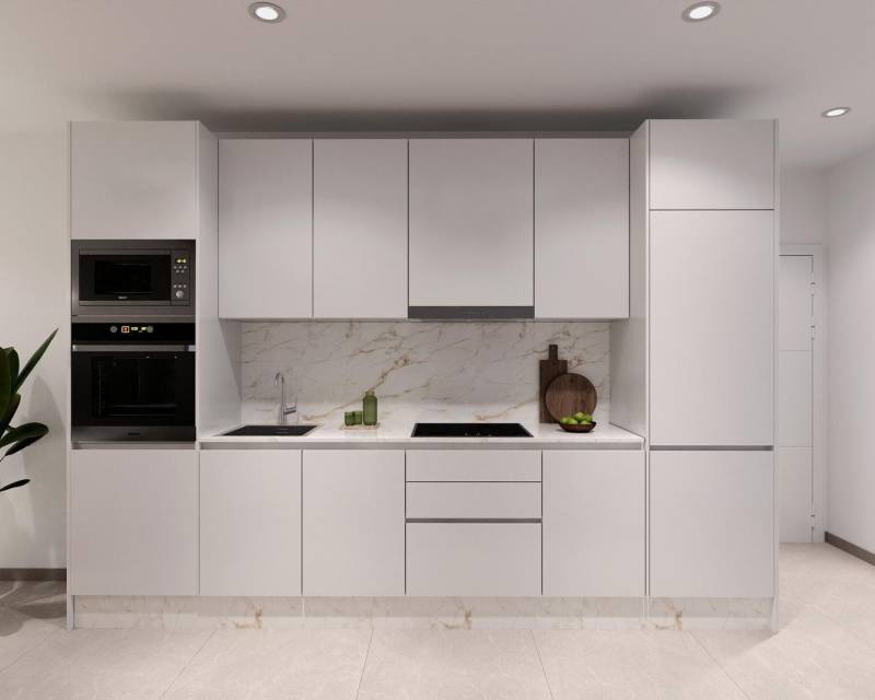 Apartamentos de nueva construcción en Torrevieja A solo 600 m de la Playa del Cura Ubicación privilegiada en el corazón de Torrevieja Descubra estos apartamentos y áticos a estrenar en una de las zonas más cotizadas de Torrevieja, a solo 600 m de la Playa del Cura y a 300 m del paseo marítimo. Situado en el centro de la ciudad, este animado barrio ofrece todos los servicios esenciales a poca distancia, incluyendo supermercados, tiendas, restaurantes, cafeterías y transporte público. Torrevieja es una conocida ciudad costera de la Costa Blanca, famosa por su clima mediterráneo templado, su animado ambiente y su estilo de vida junto al mar durante todo el año. Apartamentos modernos con distribuciones espaciosas Esta exclusiva promoción nueva consta de solo 12 apartamentos y áticos de 1 o 3 dormitorios, diseñados para ofrecer comodidad, funcionalidad y estilo contemporáneo. Los apartamentos de las plantas intermedias cuentan con amplias terrazas, mientras que los áticos disfrutan de un solárium privado adicional, ideal para tomar el sol o comer al aire libre. Todas las viviendas incluyen una cocina abierta conectada con el salón-comedor, lo que crea interiores luminosos y acogedores. Los dormitorios cuentan con armarios empotrados y los baños están totalmente equipados con muebles, espejos y mamparas de ducha. Hay plazas de aparcamiento opcionales disponibles con un coste adicional. Acabados de calidad y características de eficiencia energética Los apartamentos están construidos con materiales de alta calidad y un fuerte enfoque en la eficiencia energética. La carpintería exterior de aluminio incluye tecnología de rotura de puente térmico y doble acristalamiento para el aislamiento térmico y acústico. Las persianas motorizadas añaden comodidad y seguridad. Cada vivienda cuenta con preinstalación de aire acondicionado y calefacción por conductos, puertas de entrada reforzadas y puertas interiores lacadas en blanco. El agua caliente se produce mediante un sistema aerotérmico, lo que reduce el consumo de energía y mejora la sostenibilidad. Solárium en la azotea con piscina comunitaria Los residentes pueden disfrutar de un solárium exclusivo en la azotea con piscina comunitaria, accesible por ascensor o escaleras. Esta zona privada es perfecta para relajarse, tomar el sol y disfrutar de las vistas panorámicas de la ciudad. Ofrece un refugio tranquilo sobre las animadas calles de Torrevieja y añade un valor significativo a la promoción. Estilo de vida y alrededores de Torrevieja Torrevieja es conocida por su extenso litoral, sus playas de arena y sus emblemáticas salinas. El Parque Natural de las Lagunas de La Mata y Torrevieja se encuentra a unos 5 km y ofrece rutas de senderismo y paisajes únicos. Varios campos de golf, como Villamartin Golf y Las Colinas Golf, se encuentran a entre 12 y 18 km. El puerto deportivo y el puerto de Torrevieja están a aproximadamente 1 km. El aeropuerto de Alicante está a unos 45 km y el aeropuerto internacional de Murcia a unos 65 km, ambos con excelentes conexiones europeas. Su hogar en la costa le espera No pierda esta oportunidad de adquirir un moderno apartamento de nueva construcción cerca de la playa en Torrevieja. Póngase en contacto con nosotros hoy mismo para obtener más información o concertar una visita privada.