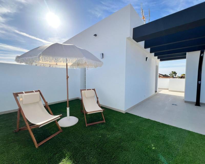 Modernas villas adosadas de nueva construcción en Benferri, Alicante Exclusiva promoción nueva en Benfis Park Descubra esta nueva promoción de 10 modernas villas adosadas situadas en Benfis Park, Benferri, en el corazón de la comarca de la Vega Baja, en Alicante. Esta encantadora localidad ofrece un ambiente residencial tranquilo, con calles bien cuidadas y una comunidad acogedora, ideal para familias, jubilados o cualquier persona que busque un estilo de vida relajado bajo el sol del Mediterráneo. Benferri combina el encanto rural con un excelente acceso a las ciudades cercanas, las playas y las principales conexiones de transporte. Amplias villas con solárium privado Cada villa ofrece una superficie total construida de 222 m² y se distribuye en tres plantas más un solárium privado. La planta sótano incluye un garaje con espacio para dos coches y un trastero. La planta baja cuenta con un luminoso salón-comedor diáfano con una moderna cocina, un lavadero y un aseo de invitados, con acceso directo a una terraza que rodea la vivienda. En la primera planta hay tres dormitorios y dos baños, uno de ellos en suite, así como dos terrazas que dan servicio a dos de los dormitorios. La planta superior ofrece un solárium privado de aproximadamente 39 m², perfecto para tomar el sol, comer al aire libre o relajarse con vistas abiertas. Características modernas y piscina opcional Las villas cuentan con una cocina totalmente equipada, incluyendo electrodomésticos, y preinstalación para aire acondicionado por conductos. Se ofrece una piscina privada como extra opcional, lo que permite a los compradores personalizar aún más su vivienda. El diseño se centra en la comodidad, la funcionalidad y la luz natural, creando un entorno de vida contemporáneo ideal para vivir todo el año o para uso vacacional. Vivir en Benferri Vega Baja Benferri se encuentra a pocos minutos de Orihuela y cuenta con un rápido acceso a la autopista AP 7, lo que hace que los desplazamientos a las playas de la Costa Blanca, al aeropuerto de Alicante-Elche y a las principales zonas comerciales y de ocio sean rápidos y cómodos. El paisaje circundante se caracteriza por fértiles tierras de cultivo, suaves colinas y paisajes mediterráneos, que ofrecen una sensación de bienestar y conexión con la naturaleza. La localidad cuenta con todos los servicios esenciales, como supermercados, colegios, instalaciones deportivas y un animado ambiente local durante todo el año. Distancias a puntos de interés Orihuela 8 km Playa de Guardamar del Segura 25 km La Finca Golf Resort 18 km Vistabella Golf 14 km Aeropuerto de Alicante-Elche 45 km Puerto de Torrevieja 32 km Centro comercial Zenia Boulevard 30 km Su nuevo hogar en la Costa Blanca Estas villas adosadas de nueva construcción en Benferri ofrecen un espacio generoso, un diseño moderno y una ubicación estratégica cerca de playas, campos de golf y servicios clave. Póngase en contacto con nosotros hoy mismo para recibir más información o concertar una visita privada.