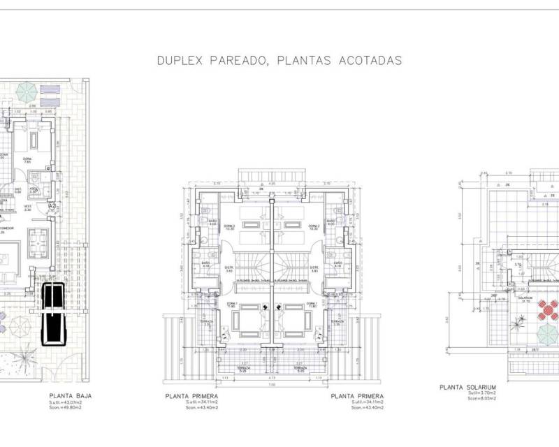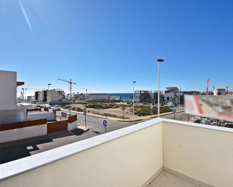 Modernas villas adosadas con vistas al mar en Puerto de Mazarrón Exclusivas viviendas nuevas cerca de la playa Descubra estas fantásticas villas adosadas de nueva construcción situadas en la codiciada zona de Mar de Plata, El Alamillo, en Puerto de Mazarrón. Situadas a solo 350 metros de la playa, estas modernas viviendas disfrutan de hermosas vistas al mar desde sus soláriums privados, lo que ofrece una oportunidad única para disfrutar del estilo de vida mediterráneo en la Costa Cálida. El barrio es tranquilo, residencial y bien establecido, ideal para vivir todo el año o como refugio vacacional. Amplia distribución con solárium privado Cada villa ofrece una superficie construida de 101 m² en una parcela en esquina de 126 m², distribuida en dos plantas más un solárium. En la planta baja se encuentra un luminoso salón, una cocina independiente con acceso a la parte trasera de la parcela, un dormitorio doble y un cuarto de baño completo. La primera planta cuenta con dos dormitorios, uno con acceso a dos terrazas con vistas abiertas y el otro con baño en suite, además de un baño familiar adicional. La planta superior está dedicada a un solárium privado de 31 m² con impresionantes vistas al mar, perfecto para tomar el sol, comer al aire libre o relajarse con los amigos. Espacio exterior y piscina comunitaria El exterior incluye una parcela en esquina con espacio para aparcamiento privado en el lateral y una zona de lavandería en la parte trasera. El complejo residencial también ofrece una piscina comunitaria, creando un ambiente agradable para que las familias y los residentes disfruten de su tiempo libre en un entorno seguro y acogedor. Especificaciones de alta calidad Estas viviendas están construidas con materiales de calidad e incluyen una puerta de entrada reforzada, preinstalación de aire acondicionado por conductos, baños con muebles, espejos y mamparas de ducha, sistema de agua caliente alimentado por energía aerotérmica, persianas eléctricas en los dormitorios y en las aberturas de la fachada principal, y carpintería exterior de aluminio con doble acristalamiento. La cocina se entrega sin muebles, lo que permite a los compradores personalizarla a su gusto. La vida en Puerto de Mazarrón Puerto de Mazarrón es una de las localidades costeras más atractivas de la Región de Murcia, conocida por sus hermosas playas, sus aguas cristalinas, su encantador puerto deportivo y su ambiente relajado. La zona ofrece excelentes servicios, tiendas, restaurantes, colegios, centros médicos y opciones de ocio al aire libre. Los espacios naturales cercanos, como la Sierra de las Moreras, son perfectos para practicar senderismo y ciclismo, mientras que los amantes de los deportes acuáticos pueden disfrutar de la vela, el buceo y el kayak. Distancias a puntos de interés Playa Negra 0,35 km Puerto deportivo de Mazarrón 2 km Centro comercial Parque de Mazarrón 5 km Camposol Golf 25 km Hacienda del Álamo Golf 35 km Cartagena 35 km Ciudad de Murcia 70 km Aeropuerto de Murcia Corvera 45 km Su hogar en la costa le espera Estas villas adosadas de nueva construcción en Puerto de Mazarrón combinan vistas al mar, diseño moderno y una ubicación inmejorable cerca de la playa y de todos los servicios. Póngase en contacto con nosotros hoy mismo para obtener más información o concertar una visita privada.
