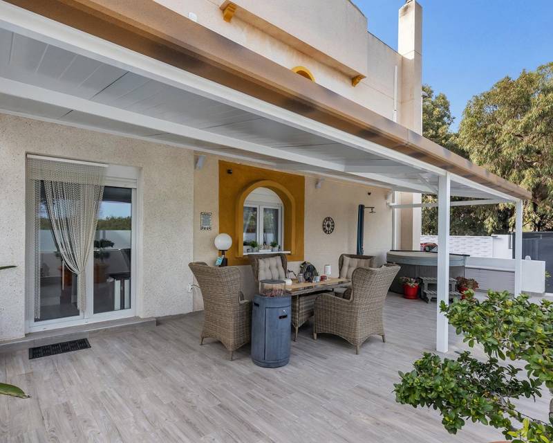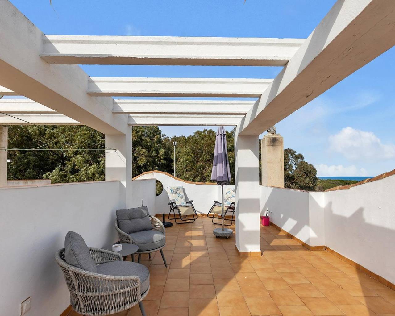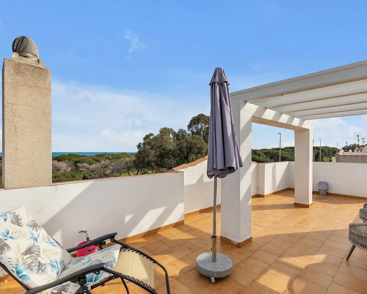 Descubra esta joya arquitectónica totalmente reformada con materiales de primera calidad. Situado en una codiciada esquina, este chalet ofrece la máxima privacidad y unas vistas que permanecerán inalterables para siempre: frente a usted, solo la pinada protegida y el azul del Mediterráneo.~~Distribución:~~Sótano: Un espacio lleno de luz natural gracias a sus ventanas. Cuenta con una gran zona de juegos con barra americana, baño completo y dos dormitorios de dimensiones generosas.~~Planta Principal: Salón elegante y luminoso, cocina de diseño totalmente equipada, trastero y un práctico aseo.~~Primera Planta: Dos dormitorios (uno convertido en un vestidor de ensueño) y un baño completo con ducha.~~Solárium: El lugar perfecto para relajarse con vistas panorámicas al mar y la playa.~~Exteriores: Disfrute de una espectacular terraza en esquina de 120 m2, entrada privada para coche y acceso a una refrescante piscina comunitaria. Una propiedad única donde el diseño moderno se encuentra con la naturaleza.