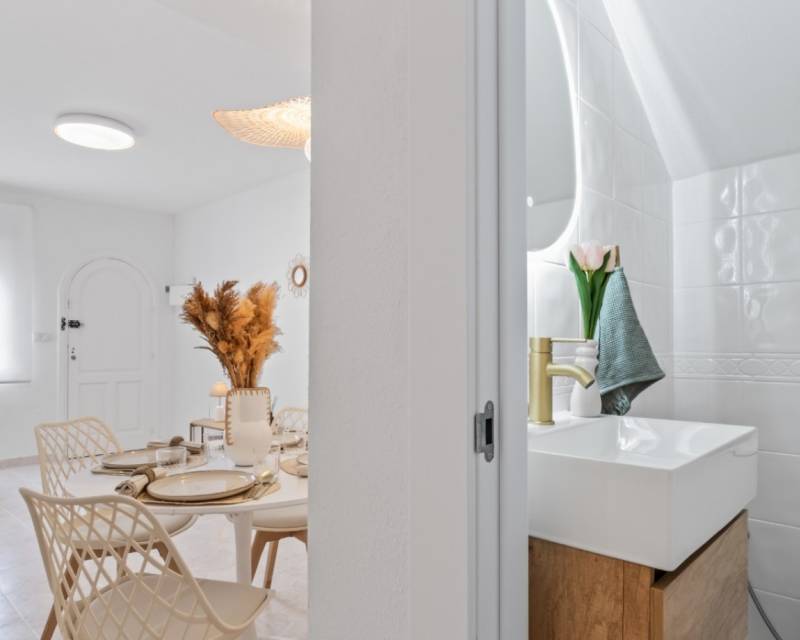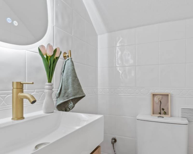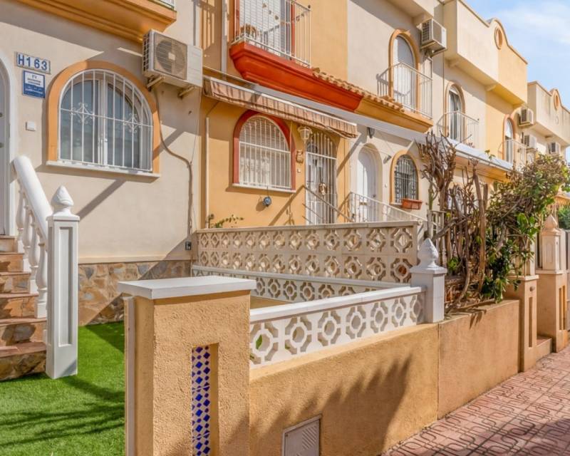 Este encantador adosado con orientación oeste está ubicado en la popular zona de La Florida, Orihuela Costa, siendo una excelente propiedad en venta en La Florida Orihuela Costa, que ofrece comodidad, luz natural y una excelente ubicación cerca de todos los servicios. La vivienda cuenta con una amplia terraza frontal soleada, ideal para disfrutar del sol de tarde. En la planta principal encontramos un salón amplio y luminoso, además de un aseo. La cocina independiente moderna se encuentra en perfecto estado y tiene acceso directo a una terraza trasera, ideal para relajarse o comer al aire libre. En la planta superior hay dos dormitorios con buena luz natural y un baño completo. Uno de los dormitorios tiene acceso a una terraza que conecta con un solárium privado, perfecto para disfrutar de las puestas de sol. La vivienda forma parte de una urbanización con piscina comunitaria y zonas ajardinadas. Ubicada cerca de comercios, restaurantes y servicios, y a pocos minutos de Zenia Boulevard, campos de golf y las playas de Orihuela Costa. Ideal como vivienda cerca del golf y playas de Orihuela Costa, o como inversión en Costa Blanca Sur.