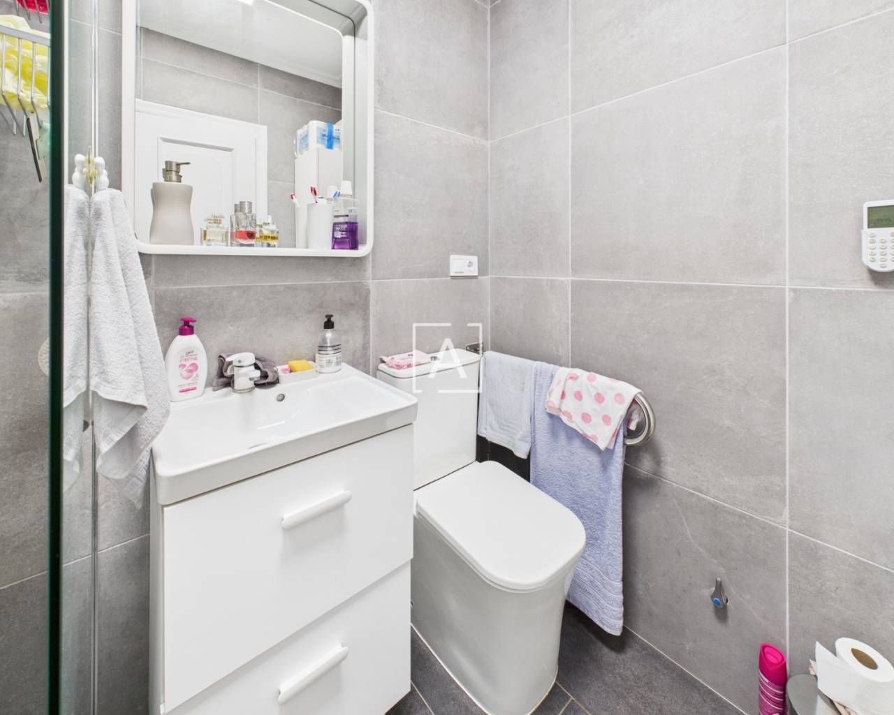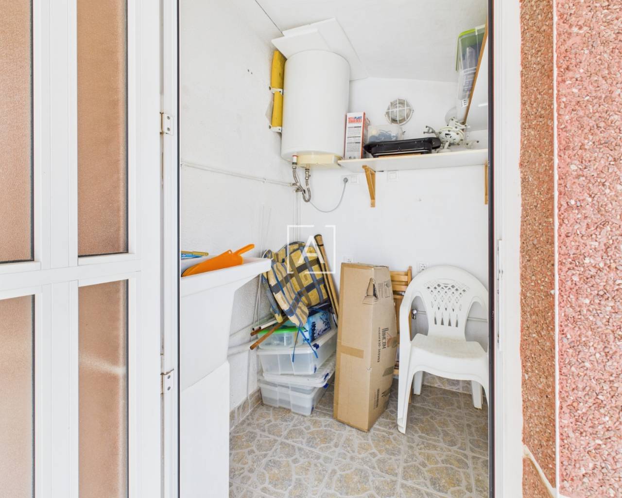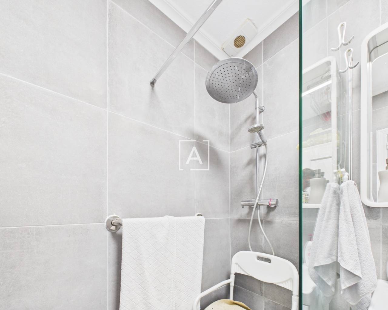 On accède à la propriété par un porche spacieux et fermé, équipé de stores, qui mène à un salon lumineux et à une cuisine américaine. Les deux chambres, accessibles depuis le salon, disposent chacune d'une armoire encastrée. La salle de bains moderne a été récemment rénovée et comprend une douche à l'italienne.