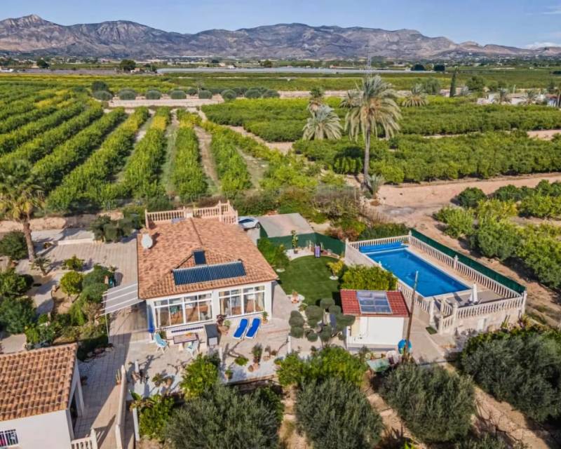 Vues à couper le souffle ! Cette belle maison de campagne exposée plein sud dans la campagne populaire d'Albatera avec 3 chambres et 2 salles de bains est située sur un terrain de 2007 m² avec quelques dépendances, dont une destinée à un débarras. Un autre bâtiment utilisé comme salle de bain et est situé à côté de la piscine. Un abri voiture, une piscine spacieuse et une oliveraie. En entrant par l'avant de la maison, vous êtes accueilli dans la cuisine à gauche avec un débarras et le salon et la salle à manger à droite. Depuis le salon, il y a un couloir vers les 3 chambres et la salle de bain. Vous pouvez également profiter depuis le salon de la belle véranda que vous pouvez utiliser toute l'année, entièrement exposée plein sud avec une belle vue sur la terrasse et le jardin. A l'étage, il y a un solarium où vous pourrez vraiment profiter d'une vue à 360° sur la vallée et les montagnes. La propriété se trouve à seulement 4,5 km de la ville d'Albatera où se trouvent tous les commerces locaux, cafés, bars et supermarchés. La propriété est accessible par un portail privé sur une impasse dans un quartier calme. La propriété est privée mais avec des voisins à proximité. La propriété dispose de l'eau courante, de l'électricité, du gaz et d'Internet par fibre optique. La maison est équipée de panneaux solaires. Cette propriété doit être visitée pour être pleinement appréciée.