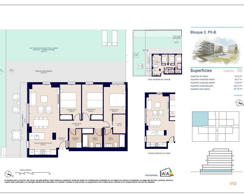 NOUVEAU COMPLEXE RÉSIDENTIEL À VILLAYOJOSA Nouveau complexe résidentiel d'appartements à Villayojosa situé à seulement 450 mètres de la mer. Appartements modernes avec 2 et 3 chambres à coucher, cuisine ouverte avec coin salon, grandes terrasses et une urbanisation complète qui comprend un club social, une salle de gym et une piscine. Les appartements du rez-de-chaussée disposent d'un jardin privé. A proximité de votre nouvelle maison, vous trouverez des centres commerciaux, un hôpital et toutes sortes de services à quelques minutes. Le complexe est situé à 2 km du centre de Villajoyosa et à 10 km de Benidorm. Votre nouvelle maison est située dans un coin idyllique, Playa del Torres, un environnement naturel. Une crique aux eaux cristallines et calmes, où le bleu turquoise est le principal protagoniste. Toutes les propriétés disposent d'un parking privé. Villajoyosa est une perle cachée de la Costa Blanca espagnole. Ce village de pêcheurs coloré est situé entre Benidorm et El Campello, à environ 30 minutes en voiture de l'aéroport d'Alicante. Ces dernières années, cette ville idyllique est devenue un lieu recherché par les résidents de résidences secondaires et les touristes. Villajoyosa a beaucoup à offrir, de la grande plage de sable aux rues étroites et colorées du centre historique. Aujourd'hui, plus de trente mille personnes vivent à Villajoyosa et, surtout, les maisons colorées sont une source d'inspiration pour les nombreux artistes. Villajoyosa est également connue pour son délicieux musée de la chocolaterie Valor. 607