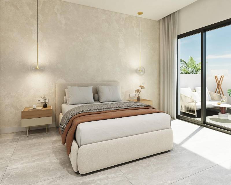 Bungalows exclusifs nouvellement construits à Pilar de la Horadada - Style unique et emplacement privilégié Un style unique qui définit votre nouvelle maison Cette nouvelle promotion de bungalows de 2 et 3 chambres à Pilar de la Horadada se distingue par son design moderne et sa structure ondulée, qui confère à chaque maison une personnalité unique. Vous pourrez choisir entre rez-de-chaussée avec jardin avant et patio arrière. Dernier étage avec solarium privé. Le complexe résidentiel dispose d'une piscine commune et de vastes espaces communs conçus pour la détente et le plaisir de toute la famille. En outre, le projet propose une salle de sport extérieure, un jacuzzi commun et un parking pour les vélos, ainsi qu'une place de parking attribuée à chaque propriété avec la possibilité de recharger les véhicules électriques, conçus pour vous offrir un maximum de confort et de qualité de vie. Des intérieurs lumineux et de grande qualité Chaque maison a été conçue pour offrir une expérience de confort et de fonctionnalité. Les espaces ouverts maximisent la sensation d'espace et de lumière, tandis que les finitions neutres et en bois créent une ambiance élégante et accueillante. Des chambres spacieuses et lumineuses, la chambre principale offrant un accès à une terrasse privée. Cuisine ouverte, intégrée au salon pour plus de commodité. Salles de bains modernes avec des matériaux de première qualité. Pilar de la Horadada - Qualité de vie sur la Costa Blanca Située dans la province d'Alicante, Pilar de la Horadada est une ville côtière qui allie tradition et atmosphère détendue. Elle est connue pour ses belles plages, comme la Playa de las Higuericas, au sable doré et aux eaux méditerranéennes cristallines. Outre son littoral, la ville possède une rue principale animée, bordée de boutiques, de supermarchés, de restaurants et de places pittoresques. Son excellente infrastructure comprend des pistes cyclables, des sentiers de randonnée et une grande variété d'activités sportives. Proximité des principaux centres d'intérêt Ce complexe résidentiel offre un accès pratique aux destinations les plus importantes de la région : Plage de Torre de la Horadada - 3 km (5 minutes en voiture). Terrain de golf Lo Romero - 5 km (10 minutes en voiture). Centre commercial La Zenia Boulevard - 15 km (15 minutes en voiture). Aéroport de Corvera (Murcie) - 40 km (40 min en voiture). Aéroport d'Alicante - 55 km (55 min en voiture). Réservez dès aujourd'hui votre propriété sur la Costa Blanca Ne manquez pas l'occasion d'acheter une toute nouvelle propriété dans un endroit exceptionnel. Contactez-nous dès aujourd'hui pour plus d'informations et pour organiser une visite. 607