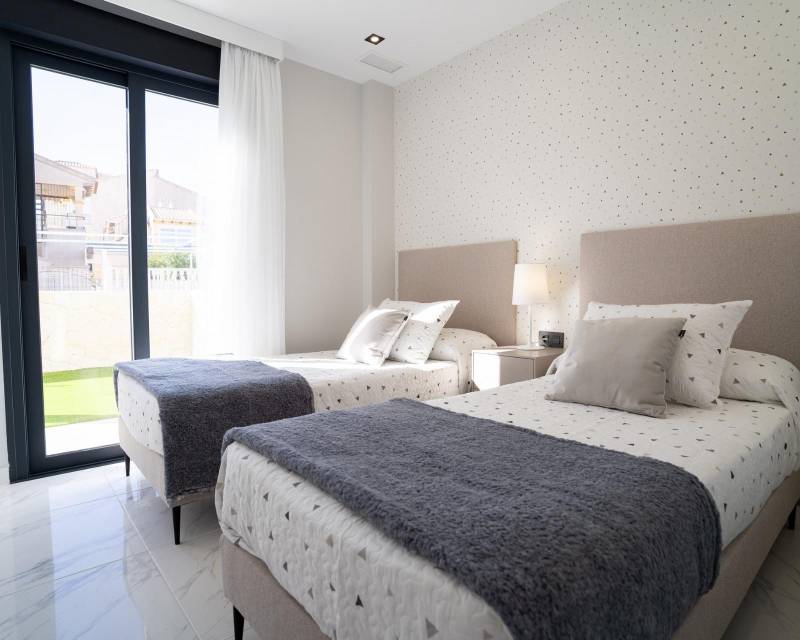 Maisons neuves à Pilar de la Horadada Maisons modernes à proximité de la plage Découvrez ce nouveau complexe résidentiel exclusif à Pilar de la Horadada, qui propose des bungalows à seulement 2 km de la plage. Conçues pour le confort et le style, ces maisons sont une excellente occasion de profiter de la vie sur la Costa Blanca. Des maisons spacieuses et élégantes Ce lotissement propose des maisons de 2 ou 3 chambres avec 2 salles de bains et un parking privé. Vous avez le choix entre Bungalows au rez-de-chaussée avec jardin privé. Bungalows au dernier étage avec solarium privé. Chaque propriété est construite avec des matériaux de haute qualité et des finitions modernes : Pré-installation de l'air conditionné. Menuiserie extérieure en aluminium, double vitrage et volets en aluminium injecté. Porte d'entrée sécurisée pour une plus grande tranquillité d'esprit. Système aérothermique pour une production d'eau chaude efficace. Armoires encastrées dans les chambres. Salles de bains entièrement équipées avec meubles et parois de douche. Caractéristiques communautaires exclusives Ce complexe résidentiel privé dispose d'une belle piscine commune et de jardins paysagers, créant un espace idéal pour la détente. Situé juste à l'extérieur du centre-ville, les résidents peuvent se rendre à pied aux supermarchés, restaurants, bars, écoles et autres services essentiels. Situation privilégiée à Pilar de la Horadada Pilar de la Horadada est une charmante ville espagnole située dans la partie la plus méridionale de la Costa Blanca. Elle offre une rue principale animée avec de nombreux magasins, supermarchés, restaurants et places pittoresques. Les superbes plages de Torre de la Horadada et de Mil Palmeras ne sont qu'à 5 minutes, avec du sable fin et doré et une promenade pittoresque. La ville offre également des pistes cyclables et des sentiers de randonnée bien développés, ainsi qu'une variété d'activités sportives. Accès pratique aux principales destinations Terrain de golf Lo Romero - 5 km (10 minutes en voiture). Aéroport de Corvera (Murcie) - 40 km (40 minutes en voiture). Aéroport d'Alicante - 55 km (55 minutes en voiture). Centres commerciaux (La Zenia Boulevard) - 15 km (15 minutes en voiture). Marina Torre de la Horadada - 3 km (5 minutes en voiture). Réservez la maison de vos rêves dès aujourd'hui Ne manquez pas cette fantastique opportunité de devenir propriétaire d'une maison toute neuve dans un emplacement de choix. Contactez-nous dès aujourd'hui pour plus d'informations et pour organiser une visite ! 607