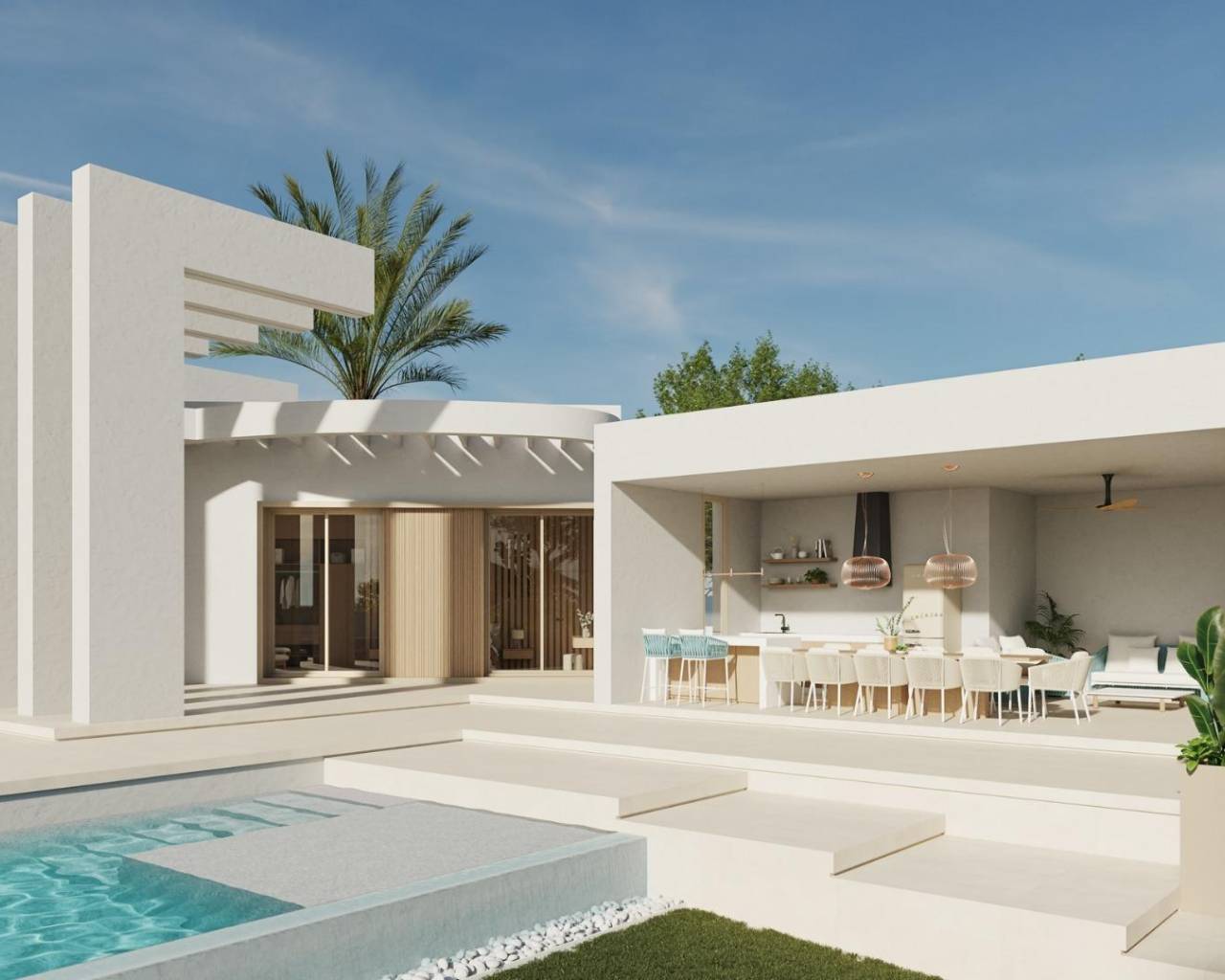 Villas exclusives de construction récente à Algorfa, près de La Finca Golf Resort Une vie paisible dans un emplacement de choix Découvrez ces luxueuses villas neuves dans la ville pittoresque d'Algorfa, nichées sur de vastes parcelles rustiques de plus de 10 000 m². Situées à seulement 2 km de La Finca Golf Resort et à proximité de l'Almoradí Tennis Club, ces propriétés sont conçues pour ceux qui apprécient l'intimité, l'élégance et la proximité d'équipements de loisirs de premier plan. Située au cœur de la Costa Blanca Sud, Algorfa offre un cadre serein entouré par la nature, avec un accès facile au sable doré de la plage de Guardamar, à une courte distance en voiture. Cette situation idyllique garantit un mode de vie alliant détente et commodité. Villas spacieuses de 4 chambres avec options de personnalisation Ces élégantes villas disposent de quatre chambres spacieuses, avec la possibilité d'ajouter une cinquième chambre, un solarium ou un niveau souterrain moyennant un supplément. Conçues dans un esprit d'ouverture, les maisons bénéficient des caractéristiques suivantes Une cuisine moderne parfaitement intégrée à l'espace de vie. De grandes fenêtres et des portes coulissantes en verre pour une lumière naturelle abondante et une bonne ventilation. Un accès direct à une terrasse privée et à une piscine, parfaites pour profiter des journées méditerranéennes ensoleillées. Un parking privé sur le terrain pour plus de commodité. Des équipements haut de gamme pour un confort moderne Chaque villa est dotée de finitions de haute qualité et d'équipements de pointe pour assurer un maximum de confort et de durabilité : Éclairage LED dans toutes les pièces. Stores électriques motorisés pour une plus grande facilité d'utilisation. Portail d'entrée automatisé pour une sécurité accrue. Chauffe-eau aérothermique Ariston pour une meilleure efficacité énergétique. Chauffage au sol dans les salles de bains pour plus de luxe. Piscine privée pour la détente et le divertissement. Système de panneaux solaires pour une vie respectueuse de l'environnement. Système de climatisation complet. Interphone vidéo pour la commodité et la sécurité. Proximité des principaux centres d'intérêt Ces villas sont idéalement situées pour permettre l'accès aux commodités et attractions essentielles : La Finca Golf Resort : 2 km. Plage de Guardamar : 12 km (environ 15 minutes en voiture). Aéroport d'Alicante : 40 km (35 minutes en voiture). Aéroport de Murcie : 55 km (45 minutes en voiture). Centres commerciaux : Zenia Boulevard, à 25 minutes. Routes principales : L'autoroute AP-7 permet d'accéder rapidement aux villes voisines comme Orihuela, Elche, Murcia et Alicante. Votre retraite méditerranéenne vous attend Saisissez l'opportunité de posséder une luxueuse villa à Algorfa, alliant design moderne, charme traditionnel et style de vie méditerranéen décontracté. Contactez-nous dès aujourd'hui pour planifier une visite et commencer à vivre votre rêve ! 607