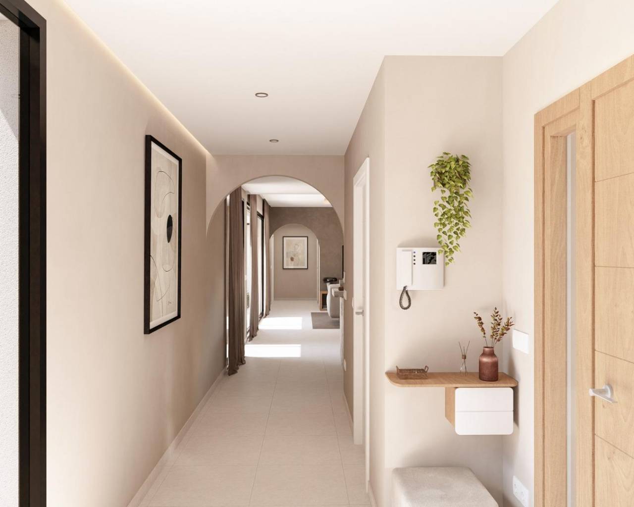 VILLAS NEUVES À ALTAONA GOLF RESORT, MURCIA Nouvelle construction résidentielle de belles villas à Altaona Golf resort, Murcia. Villas neuves avec cuisine ouverte, 3 chambres, 3 salles de bains, toilettes invités, terrasse, jardin privé avec piscine et place de parking. Caractéristiques : - Les propriétés ont un certificat énergétique de niveau A. - Installation d'air conditionné avec pompe à chaleur. Dans toute la maison sauf dans les salles de bains. - Chauffage électrique par le sol dans le salon et les salles de bains avec thermostat individuel par zone. - Système de renouvellement d'air dans la cuisine, les salles de bains, la buanderie et les toilettes des invités. - Cuisine Comprend une hotte aspirante et une plaque de cuisson électrique à induction avec 3 points de cuisson. - Éclairage LED dans le salon, le couloir et à l'extérieur. Le reste des pièces est préparé pour que le futur propriétaire puisse installer son propre éclairage. - Prises USB dans toutes les chambres. - Interphone électronique pour l'accès de l'extérieur au chemin intérieur. Sonnette à l'entrée de la propriété. - Système domotique avec deux interrupteurs intelligents. - Jardin paysager privé avec système d'irrigation goutte à goutte et la piscine. - Clôture extérieure de l'urbanisation. - Portails d'accès à l'urbanisation pour les véhicules : Portail coulissant en métal avec système d'ouverture à distance. Résidentiel situé à Altaona Golf à seulement 15 minutes en voiture du centre de la capitale Murcie et 20 minutes des plages, vous pouvez profiter de la tranquillité et de la sécurité offerte par le terrain de golf de 18 trous et le confort de vivre à proximité de tous les services. L'aéroport de Murcie Corvera est à seulement 15 minutes en voiture. 607