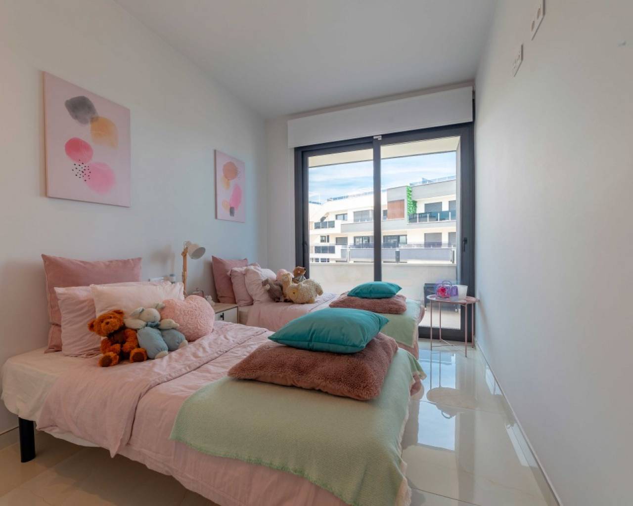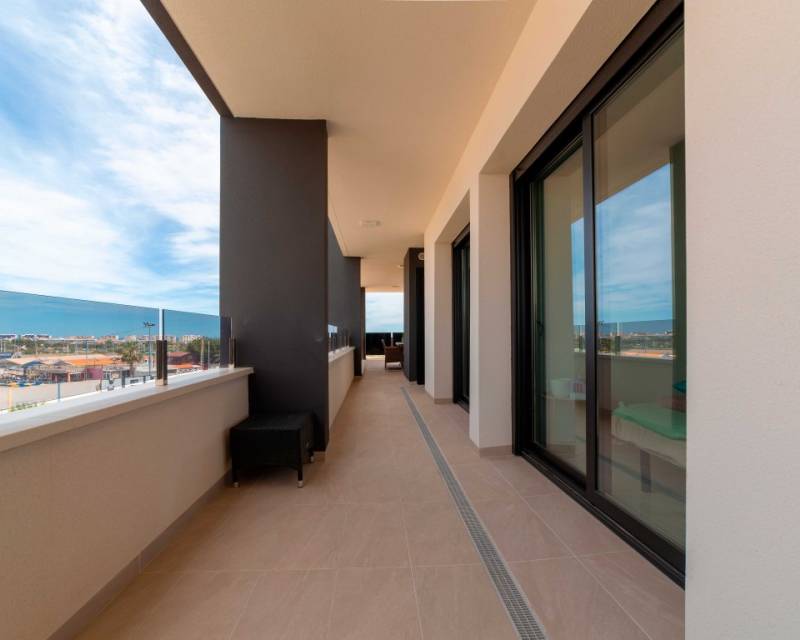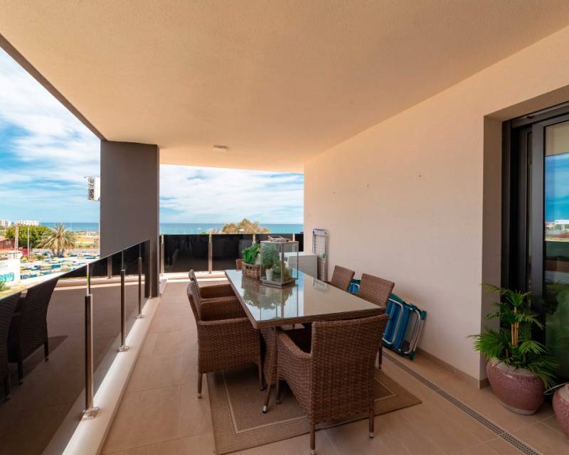 Het ruime appartement, dat pas in november 2024 is opgeleverd, is zeer weinig gebruikt en verkeert daardoor in bijna nieuwstaat. De woning beschikt over drie ruime slaapkamers, die alle drie directe toegang bieden tot het royale terras van 48 m², en twee smaakvol ingerichte badkamers met vloerverwarming. De open woonkamer en keuken creëren een zeer lichte en uitnodigende sfeer en bieden via schuiframen directe toegang tot het grote terras met uitzicht op zee. De keuken is voorzien van hoogwaardige apparatuur. Grenzend aan de keuken bevindt zich een aparte wasruimte met cv-ketel en wasmachine. Het appartement wordt ongemeubileerd verkocht, maar overname is bespreekbaar. Deze woning beschikt over 2 ondergrondse parkeerplaatsen en een ruime berging. De garage is bereikbaar via de lift, die zich op slechts enkele meters van de ingang bevindt. De gemeenschappelijke ruimte omvat prachtige groene zones met een fontein, palmbomen en een zwembad, een fitnessruimte met sauna, een kinderspeelplaats en een barbecue. Het appartement ligt op loopafstand van een ruime keuze aan winkels, restaurants, bars en stranden. In de directe omgeving zijn ook tal van activiteiten, 3 grote golfbanen en een van Europa's grootste winkelcentra, "Zenia Boulevard". Orihuela Costa is een van de populairste gebieden aan de Costa Blanca en telt veel vaste bewoners en bezoekers gedurende het hele jaar.
