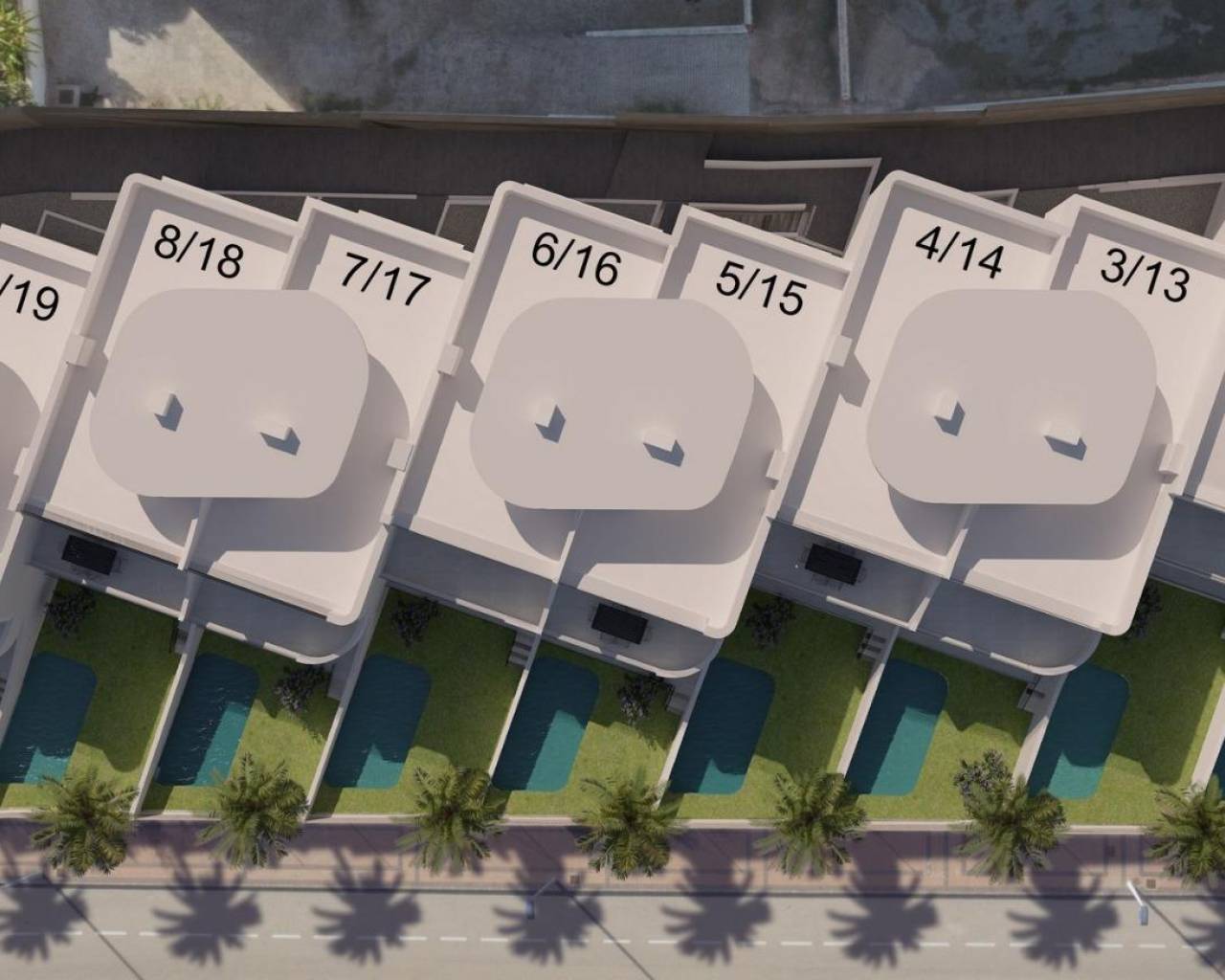 Nieuwbouw Bungalows met Uitzicht op Zee in La Mata, Torrevieja Bevoorrechte locatie op 300 meter van het strand Deze exclusieve nieuwe ontwikkeling is gelegen in La Mata, Torrevieja, een van de meest gewilde gebieden van de Costa Blanca. Slechts 300 meter van het strand, deze ontwikkeling biedt een uitzonderlijke natuurlijke omgeving met panoramisch uitzicht op zee en gemakkelijke toegang tot alle essentiële voorzieningen. La Mata is een levendige wijk met een speciale charme, omringd door promenades, restaurants, cafés en supermarkten, waardoor het de perfecte bestemming is voor zowel het hele jaar door wonen als genieten van een tweede huis aan zee. Modern ontwerp en energie-efficiëntie Dit project valt op door de elegante mediterrane architectuur met een avant-gardistisch tintje. Ontworpen volgens de Passivhaus-norm, garandeert het een duurzame constructie die maximaal thermisch comfort en energie-efficiëntie biedt, waardoor het verbruik en de impact op het milieu worden verminderd. De woningen hebben een hoogwaardige afwerking, ruime kamers en een overvloed aan natuurlijk licht, waardoor een perfecte balans wordt bereikt tussen design en functionaliteit. Woonopties voor alle levensstijlen Gelijkvloerse appartementen met een grote privétuin met uitzicht op zee en genoeg ruimte voor een privézwembad. Ze hebben ook een halve kelder met de mogelijkheid om extra slaapkamers toe te voegen. Bovenste verdieping appartementen met groot balkon, privé solarium en spectaculair uitzicht op zee, perfect om te genieten van de mediterrane zon. Exclusieve gemeenschappelijke ruimtes Dit project biedt ruimtes die zijn ontworpen voor comfort en ontspanning: Gemeenschappelijk overloopzwembad, ideaal om af te koelen met panoramisch uitzicht. Ondergrondse parkeerplaats inbegrepen bij elke woning. Nabijheid van bezienswaardigheden La Mata strand - 300 m. Torrevieja centrum - 6 km. Parque Natural de las Lagunas de La Mata-Torrevieja - 2 km. Golfbaan La Marquesa - 15 km. Luchthaven Alicante - 40 km (ca. 40 min.). Luchthaven Murcia - 65 km (ca. 1 uur). Jouw thuis aan de Costa Blanca wacht op je Als je op zoek bent naar een luxe appartement met uitzicht op zee, op een bevoorrechte locatie en met alle voorzieningen, dan is deze residentie je beste optie. Neem vandaag nog contact met ons op voor meer informatie en om een bezichtiging te regelen. 607