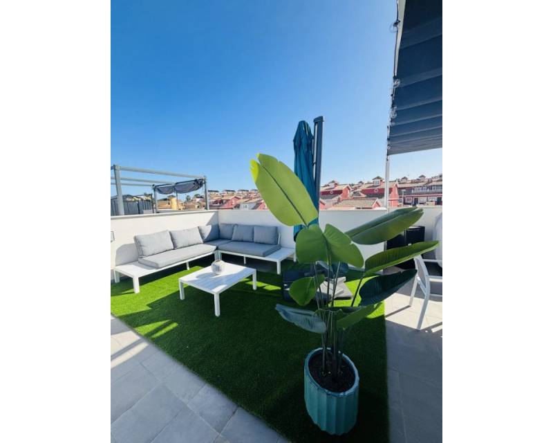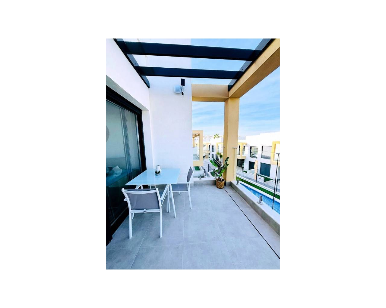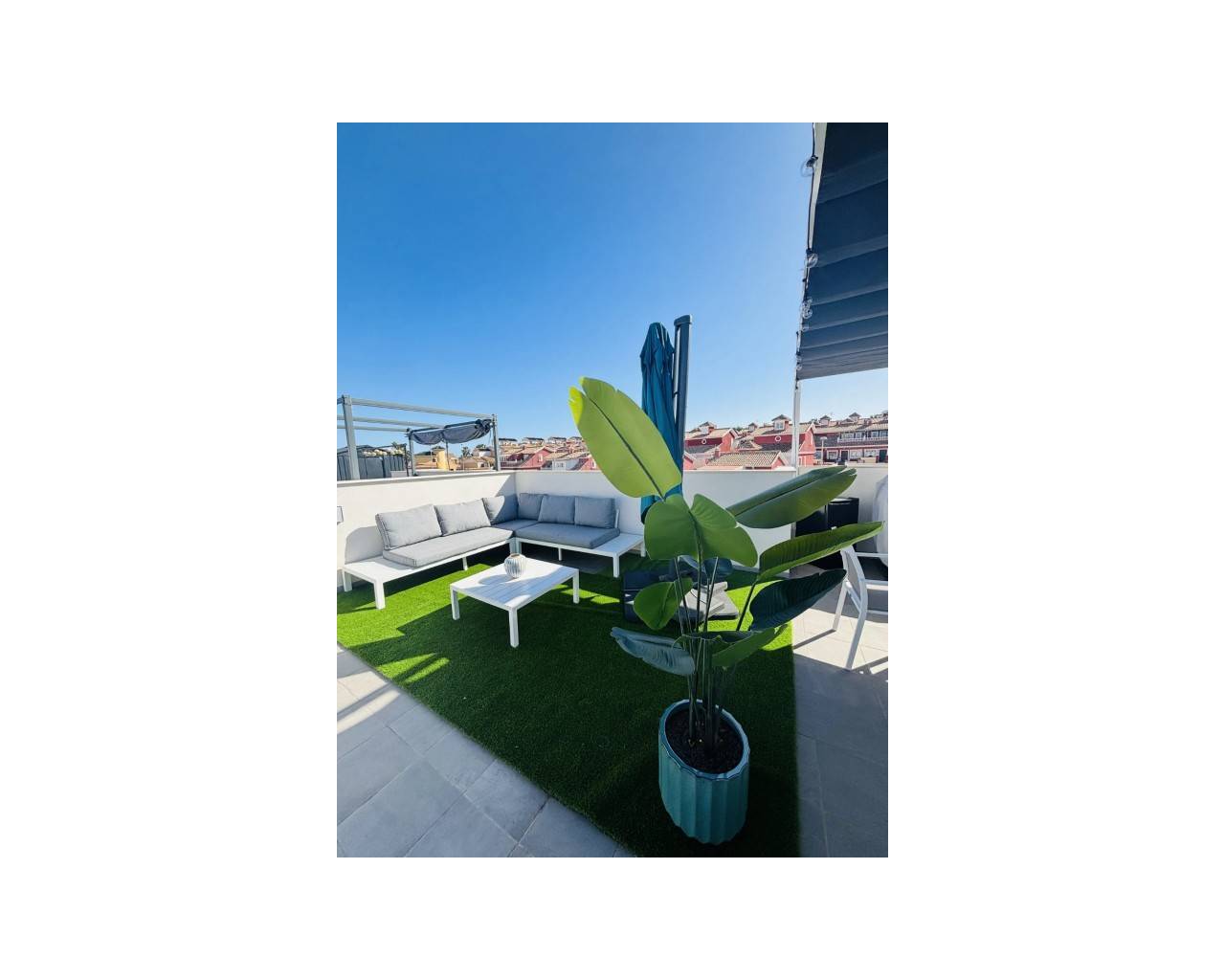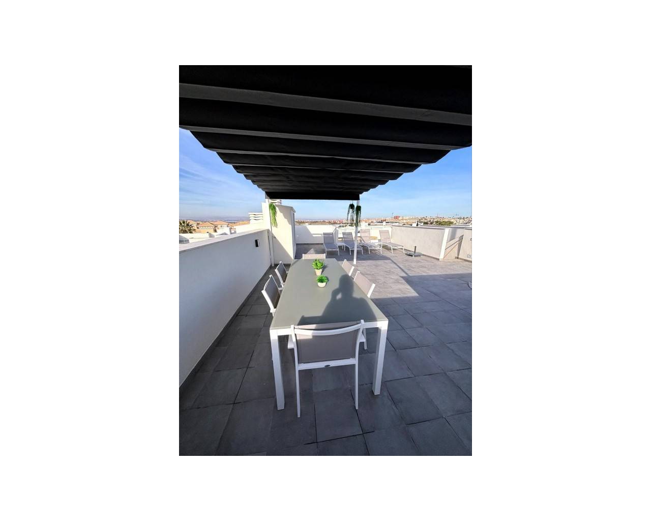 Prachtig modern penthouse te koop met groot dakterras en uitzicht op de zoutmeren. Ideaal als investering voor een tweede woning/vakantieverhuur. Dit prachtige penthouse beschikt over twee slaapkamers, waarvan één met een en-suite badkamer en één met een aparte badkamer. De badkamers zijn voorzien van vloerverwarming. De keuken is volledig uitgerust met een combi-oven, kookplaat, koelkast, vriezer, wasmachine en vaatwasser. Airconditioning en verwarming zijn in elke kamer afzonderlijk te regelen. De woonkamer met veel natuurlijk lichtinval heeft een aangrenzend terras met uitzicht op de twee zwembaden, waarvan één een kinderbad is. Elektrische rolluiken, intercom, beveiligde voordeur, airconditioning, ventilatie met camera en alarm zijn eveneens aanwezig. Dit penthouse beschikt over een ruim dakterras met zonnescherm, barbecue, loungeset, buitendouche, berging, ligstoelen en eettafel. Kortom, alles wat u nodig heeft om te genieten van het prachtige uitzicht vanuit de lounge met een heerlijke cocktail, heerlijke tapas aan de grote eettafel onder de pergola of vanaf de ligstoelen onder de parasol. Het penthouse beschikt over een eigen parkeerplaats. De residentie is een beveiligd complex met 40 appartementen en is een laagbouwgebouw gelegen op een heuvel in een prachtige woonwijk. De vele prachtige stranden liggen op minder dan 10 minuten rijden. Uiteraard vindt u ook lokale winkels, restaurants, bars en supermarkten op loopafstand van uw woning. In iets meer dan vijf minuten rijdt u naar winkelcentrum La Zenia Boulevard, met 80.000 m² aan winkels, supermarkten, restaurants en terrassen. U zult zich hier zeker niet vervelen. Deze accommodatie ligt op vijf minuten van de golfbaan Villamartín en op minder dan 5 km afstand vindt u twee andere uitdagende 18-holes golfbanen: Real Club de Golf de Campoamor en Las Ramblas Golf. Ideaal als beleggingspand en direct verhuurbaar!
