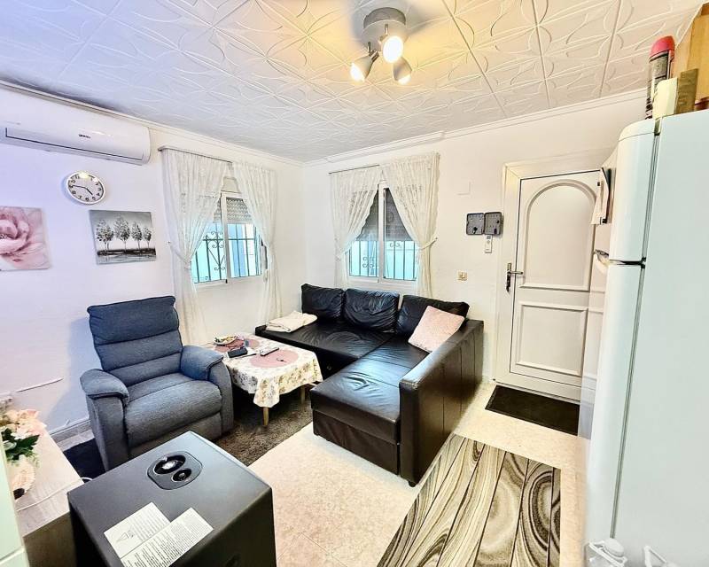 We presenteren dit charmante bungalow op de begane grond, gelegen in het rustige gebied La Siesta € El Salado € Torreta, ideaal voor wie dicht bij de zee wil wonen in een rustige omgeving.~~Het pand biedt 47€m2 bebouwde oppervlakte en 38€m2 gebruiksoppervlakte, efficiënt verdeeld over twee ruime tweepersoonsslaapkamers en een gedeeltelijk gerenoveerde badkamer.~~Dankzij de noordoostelijke oriëntatie kunt u 's ochtends van de zon genieten, terwijl de privétuin van 26€m2 perfect is om buiten te ontspannen, omgeven door prachtige fruitbomen zoals laurier, pruim, nectarine, citroen en sinaasappel. Het pand beschikt ook over een berging, wat extra opslagruimte biedt.~~Op slechts 5 minuten lopen bevindt zich het Plaza Lira-park met een openbaar zwembad, ideaal om van het mooie weer en buitenactiviteiten te genieten.~~Gelegen op ongeveer 3 km van de zee, met gemakkelijke toegang tot winkelcentra, supermarkten en scholen, wat het een uitstekende optie maakt als permanent verblijf en als vakantie-investering.~~Mis deze kans niet! Neem contact met ons op om te ontdekken hoe dit spannende appartement uw nieuwe thuis kan worden.~~Denkt u eraan uw woning te verkopen en dit droomappartement aan te schaffen€ Ons bureau biedt een gratis waardebepaling, met meer dan 20 jaar ervaring en de meest actuele verkoopgegevens. Wij helpen u een snelle en voordelige verkoop te realiseren, zodat u kunt beginnen te genieten van het leven aan zee dat u altijd al wilde.~~Neem nu contact met ons op en zet de eerste stap naar uw nieuwe leven aan de Costa Blanca!