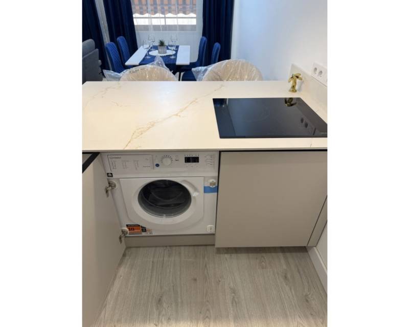 Dit volledig gerenoveerde appartement ligt op slechts 50 meter van Playa del Acequión en biedt modern comfort op een uitstekende locatie in Torrevieja. De woning is grondig gerenoveerd met nieuwe ramen en deuren, een volledig vernieuwde elektrische installatie met verhoogde capaciteit en een compleet vernieuwd water- en rioleringssysteem. Daarnaast beschikt het appartement over gekanaliseerde airconditioning, een 100L elektrische boiler met WiFi-toegang en een moderne keuken met geïntegreerde Bosch-apparatuur. Binnen vindt u een lichte woon- en eetkamer, twee slaapkamers en twee moderne badkamers, allemaal in uitstekende staat met nieuwe meubels. Het appartement beschikt over een ruim privéterras, ideaal om te genieten van het mediterrane klimaat. Het gebouw heeft een lift en ligt op loopafstand van het strand, restaurants, supermarkten en de boulevard van Torrevieja. Een garageplaats in hetzelfde gebouw kan apart worden gekocht. Een uitstekende woning voor vakantiegebruik, permanente bewoning of verhuurinvestering aan de Costa Blanca.