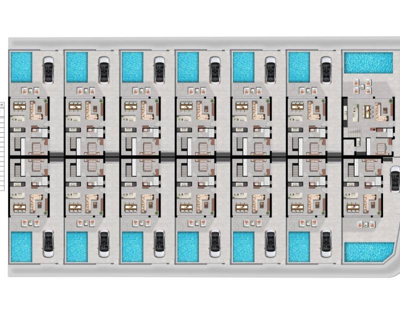 Moderne nieuwbouwwoningen met privézwembad in San Pedro del Pinatar Eigentijds design en premium woonkwaliteit Ontdek de derde fase van dit exclusieve woonproject in San Pedro del Pinatar, waar moderne architectuur samengaat met comfort en functionaliteit. Deze 14 halfvrijstaande villa's zijn ontworpen in een minimalistische stijl en afgewerkt met hoogwaardige materialen, waardoor ze een elegante en verfijnde woonervaring bieden aan de Costa Calida. Elke villa beschikt over 3-4 ruime slaapkamers, 3 badkamers, een privézwembad, terrassen en een privétuin, waardoor de perfecte omgeving wordt gecreëerd voor privacy, ontspanning en mediterraan buitenleven. San Pedro del Pinatar is een van de meest gewilde steden in het Mar Menor-gebied, bekend om zijn natuurlijke zoutmeren, rustige stranden en het hele jaar door aangename klimaat, waardoor het ideaal is voor zowel permanent wonen als vakantiegebruik. Open indeling ontworpen voor het moderne leven De villa's zijn zorgvuldig ingedeeld met een open keuken die in verbinding staat met een lichte woon- en eetkamer. Grote ramen in de woonkamer met gemotoriseerde jaloezieën bieden directe toegang tot het zwembad en laten natuurlijk licht binnenstromen in de binnenruimtes. De belangrijkste kenmerken van elke woning zijn: 3 slaapkamers met inbouwkasten 3 volledig uitgeruste badkamers met wastafels, spiegels en doucheschermen Ingerichte keuken met Balay-apparatuur Privézwembad en tuin LED-verlichting binnen en buiten Terrassen op de eerste verdieping en optioneel solarium op het dak Parkeerplaats op het perceel Aerothermisch systeem voor warm water Fotovoltaïsche zonnepanelen voor verbeterde energie-efficiëntie Voorbereiding voor airconditioning met luchtkanalen Deze woningen zijn ontworpen om duurzaamheid, comfort en moderne stijl in elk detail te combineren. Toplocatie vlakbij stranden en voorzieningen San Pedro del Pinatar, gelegen tussen de Mar Menor en de Middellandse Zee, is een paradijs voor strandliefhebbers en watersporters. De stad biedt een levendige jachthaven, natuurlijke modderbaden, winkels, restaurants, sportfaciliteiten en uitstekende voorzieningen het hele jaar door. Stranden van de Mar Menor 3 km Mediterrane stranden 5 km Winkelcentrum Dos Mares 5 km Lo Romero Golf 10 km Roda Golf 15 km Luchthaven Murcia Corvera 30 km Luchthaven Alicante 80 km Jachthaven San Pedro 4 km Een ideale woning voor levensstijl en investering Dankzij hun ligging, ontwerp en energiezuinige kenmerken zijn deze villa's een uitstekende kans als permanente woning, vakantiehuis of investering in verhuur in een van de meest aantrekkelijke gebieden van de Costa Calida. Neem vandaag nog contact met ons op voor meer informatie of om een bezichtiging te regelen en uw nieuwe villa in San Pedro del Pinatar veilig te stellen. 607