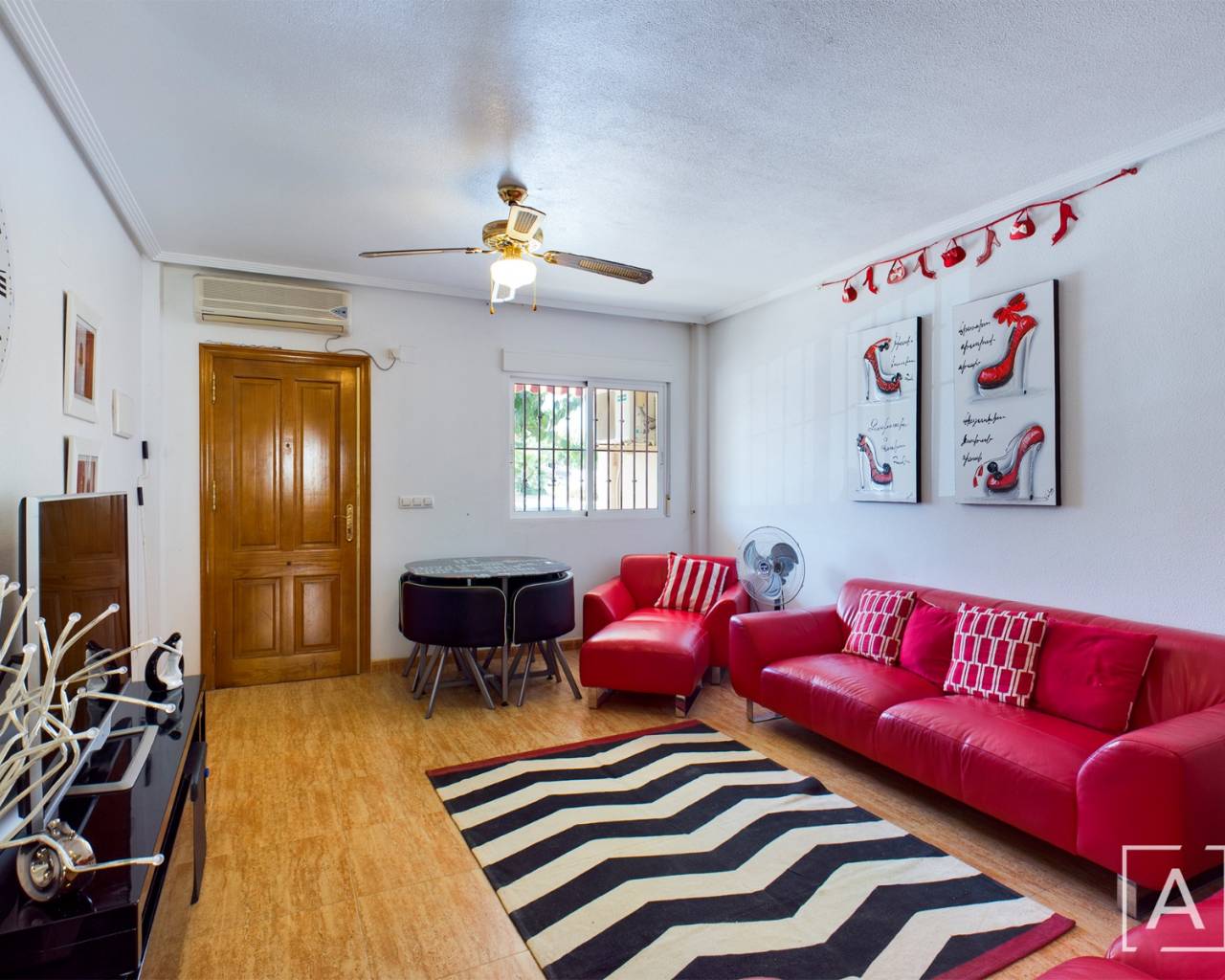 We are delighted to offer for sale this spacious 3 bedroom, 2 bathroom Townhouse located a short walk from the mudbaths in San Pedro del Pinar on the Mar Menor.To the front is a terrace, leading to a covered porch. Entering the property directly into the lounge you will notice how the current owners have created a bright and spacous area. Off the lounge to the rear is WC, bedroom and kitchen, which has a good range of floor and wall units. To the rear of the kitchen is a useful covered storage area. On the first floor are 2 further double bedrooms,the master having access to a good size terrace to enjoy the views across to the park opposite. The family bathroom has a bath with shower over. A further staircase takes you to the large rooftop solarium which provides views to the both the front and rear aspects. From here you can see the communal swimming pool. This property benefits from A/C units in the lounge and bedrooms and is offered for sale, to include white goods. Furniture may be available subject to separate negotiation. Viewing is highly recommended in order to appreciate the location and space this property offers.
