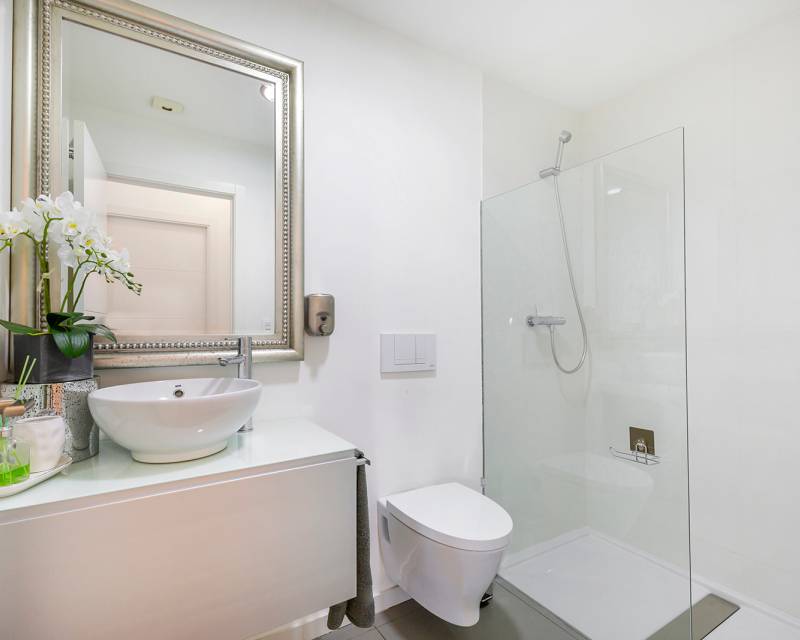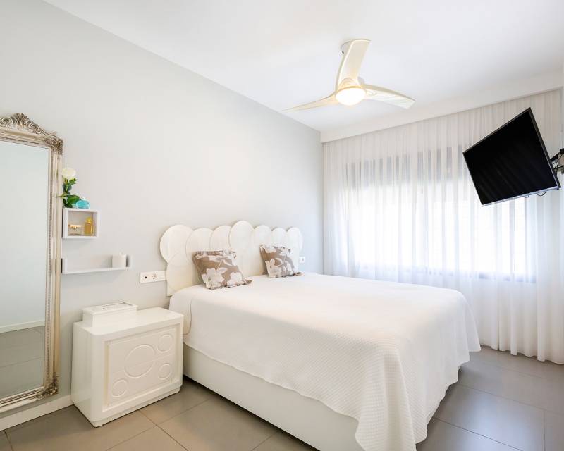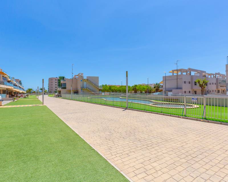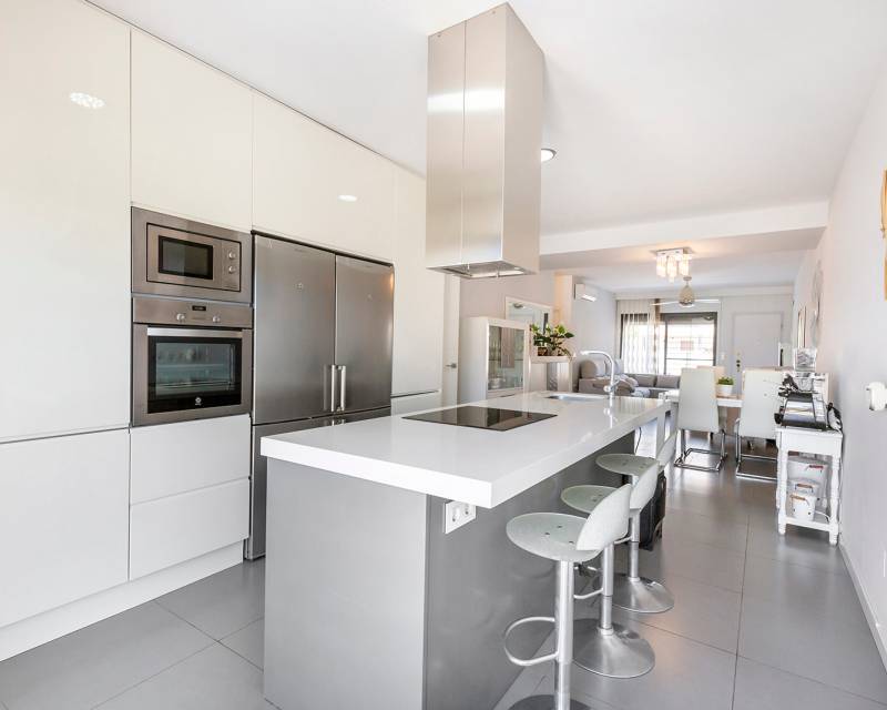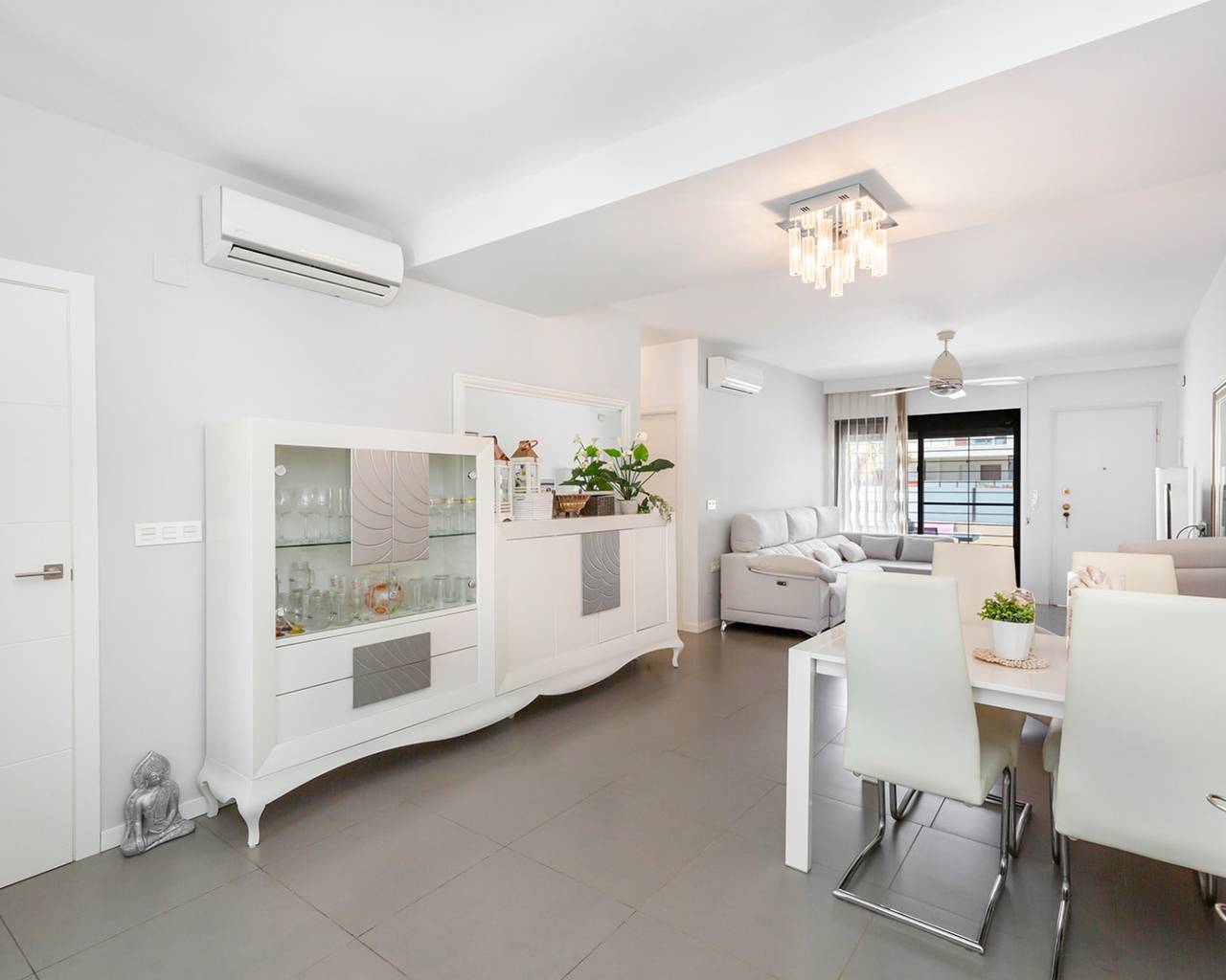 Spacious ground floor bungalow in Torre de la Horadada. This modern south facing property has 4 bedrooms, 3 bathrooms, a spacious living-dining room with open plan kitchen and direct access to the terrace and garden of 120m2. It is located in the complex where you can enjoy communal pool and garden areas. Torre de la Horadada is a prestigious area of the Costa Blanca, very close to Mil Palmeras, Campoamor, San Pedro del Pintar and Orihuela Costa. The famous salt lagoons of San Pedro del Pinatar and the Thalasia marine spa centre can be reached in only 10 minutes. Pilar De La Horadada, enjoys more than 2500 hours of sunshine a year and an average temperature of 18ºC, which makes it a privileged area. It has a wide range of services, green areas, promenades and a marina. Just 5 minutes from the shopping centres La Zenia Boulevard and Dos Mares. In addition to these magnificent weather conditions, there are sandy beaches such as Playa Jesuitas, Playa del Puerto and Playa de las Higuericas. Well communicated with the national road N-332 and the Mediterranean motorway AP-7. Close to major cities such as Murcia and Alicante.