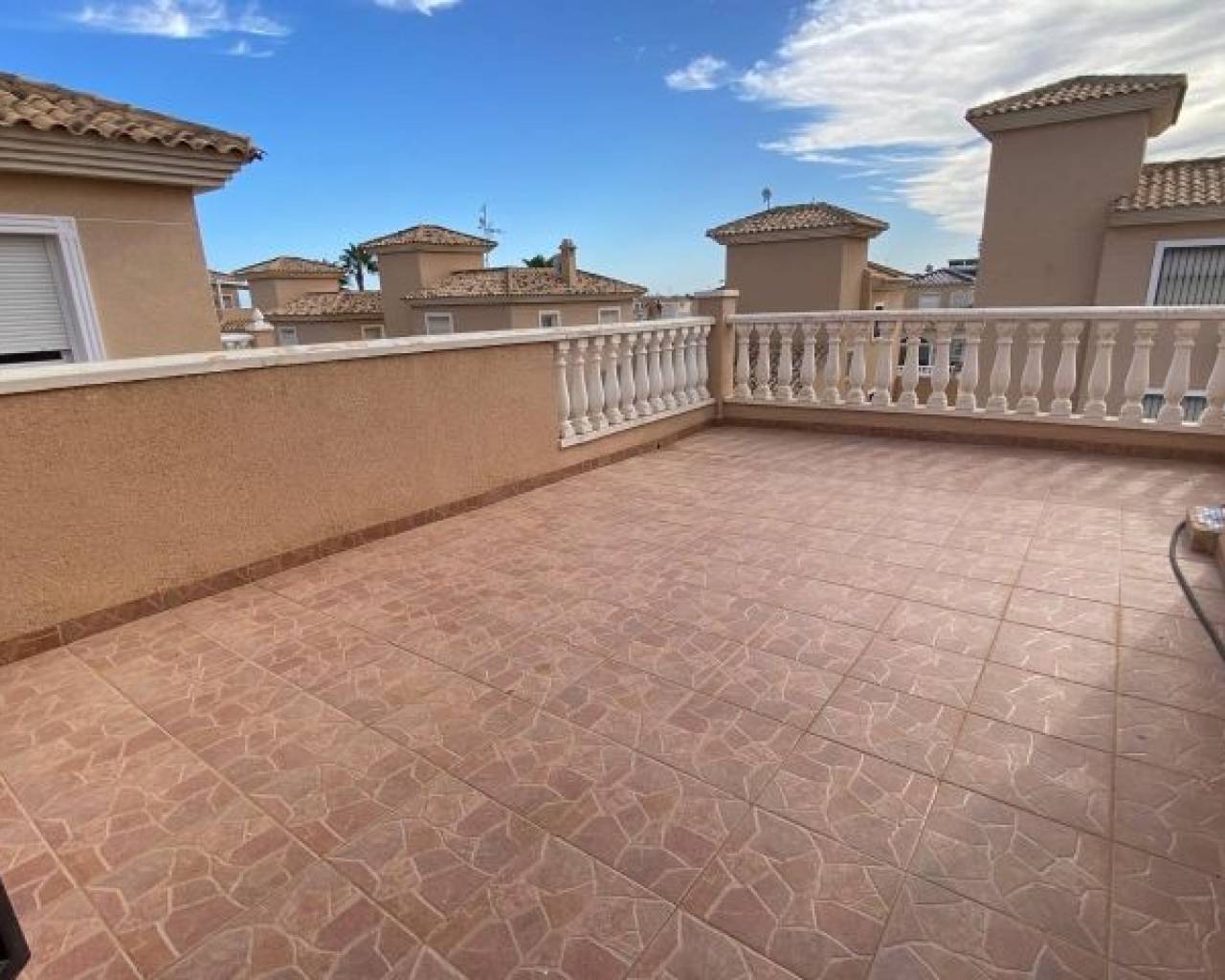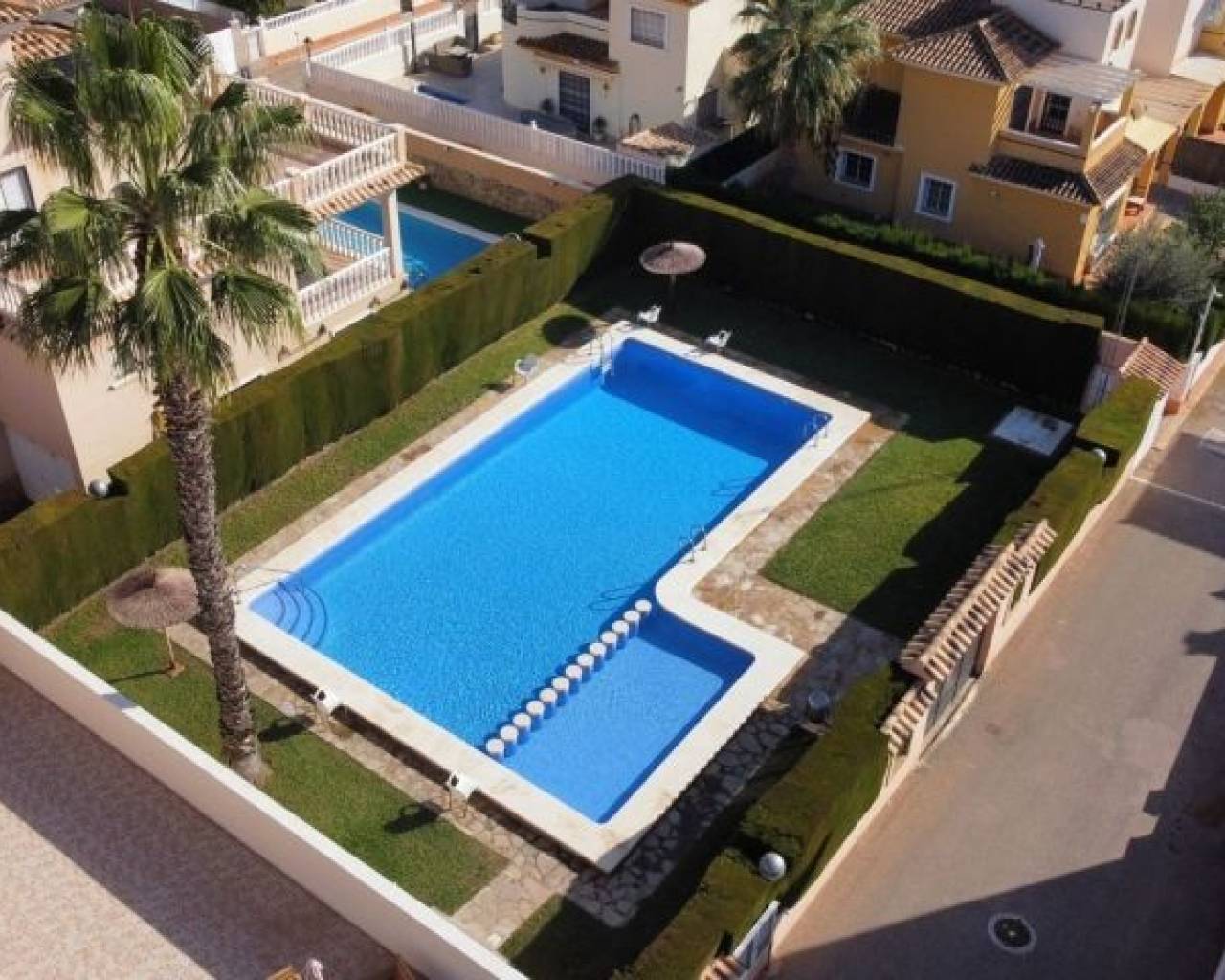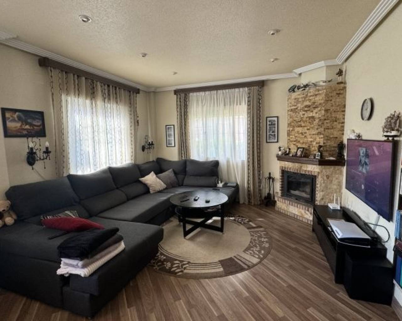 Detached south facing villa with garage, large terrace, communal pool, gated community and exceptional amenities Discover this wonderful 3 bedroom, 2 bathroom detached villa, designed to offer you maximum comfort and style. Located in a gated community, this property has its own garage in the basement, providing convenience and security. Enjoy the terrace and solarium, perfect for relaxing while you delight in the stunning south orientation that guarantees natural light throughout the day. The villa offers access to a communal pool, ideal for cooling off on warm summer days. Its location is unbeatable: just a few steps from the Consum store and just 2 km from the beach, where you can enjoy the sun and the sea. In addition, golf lovers will be pleased to know that there are golf courses just 4 km away. It is sold fully furnished, ready for you to move in and start enjoying your new home immediately. This villa is the dream retreat that combines luxury, comfort and proximity to the best attractions in the area. Don't miss the opportunity to acquire this gem in a privileged setting. Your new home awaits you!