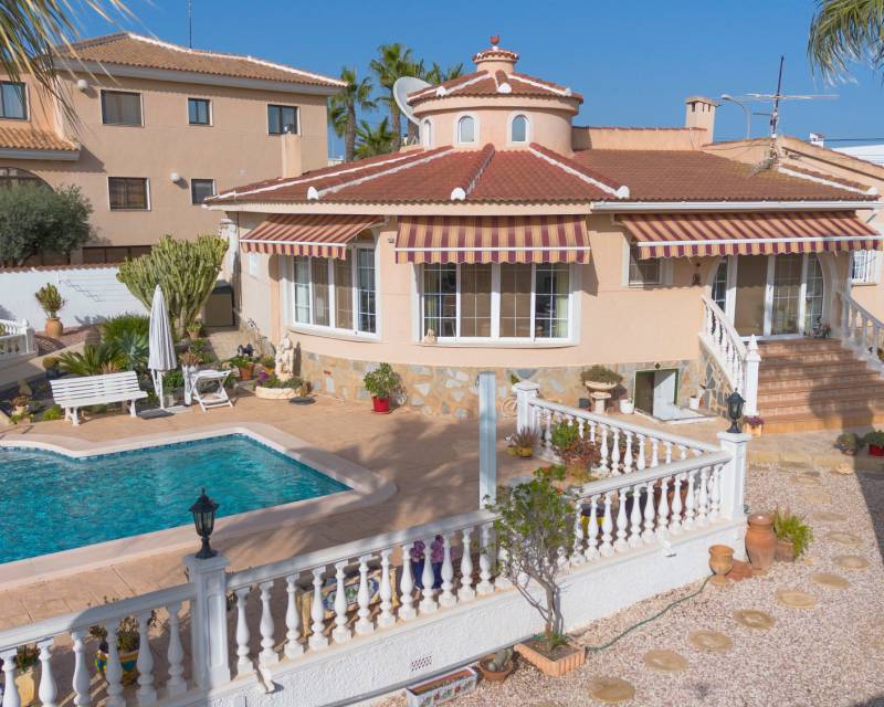 SPACIOUS LIVING ALL ON ONE LEVEL IN ONE OF THE MOST SOUGHT-AFTER AREAS OF CIUDAD QUESADA This spacious bungalow sits on a generous 1,084m² plot and offers excellent build quality, bright interiors and superb outdoor living. Designed on one level, it is ideal as a family home or a substantial holiday retreat, with plenty of scope for future extensions thanks to the size of the plot.Originally built for Swiss buyers, the property benefits from upgraded construction including gas central heating, damp-proof course and cavity wall insulation—rare features in Spain. The home is in very good condition throughout. Private Pool and Attractive Gardens The villa features mature landscaping, a rockery, multiple seating areas and a private swimming pool. The outdoor space is perfect for relaxing in the sun or enjoying shade at any time of day. Flexible Year-Round Living A south-facing, wrap-around glazed porch serves as an additional living room and can be fully opened in summer or closed for warmth in winter. Bright and Spacious Interior Two entrances from the porch lead into the main living areas: A large, light-filled living room with feature skylight A modern farmhouse-style kitchen with breakfast bar, utility area and access to the rear garden Accommodation A hallway leads to the main bedrooms: Master bedroom with fitted wardrobes, ensuite with bath and shower, new A/C and ceiling fan Two further double bedrooms with fitted wardrobes Fourth bedroom, currently used as a dressing room Family bathroom with shower Guest House / Summer Kitchen With Building Potential Beside the pool is a separate guest suite converted from the original garage. It includes a studio-style room, bathroom and a kitchen overlooking the pool—ideal for summer cooking and entertaining. Thanks to the size of the plot, there is still ample buildable square meterage available, and the current owners have already obtained approval to extend and even build upwards on the guest annex. Whether you want additional living space, a larger guest house or a bespoke hobby room, the potential here is excellent. The annex can also be easily reconverted back to a garage if preferred. Off-road parking is available. Sought-After Location in Ciudad Quesada Set in one of Quesada€s most desirable areas, the villa is close to amenities, restaurants, golf and international schools. Minutes walk to restaurants & bars 10 minutes to Guardamar€s beaches 15 minutes to Torrevieja 30 minutes to Alicante Airport Easy access to Orihuela Costa and Zenia Boulevard A beautifully presented villa offering space, privacy, excellent build quality and exciting potential for further development. Contact us now to request your in person or virtual viewing.