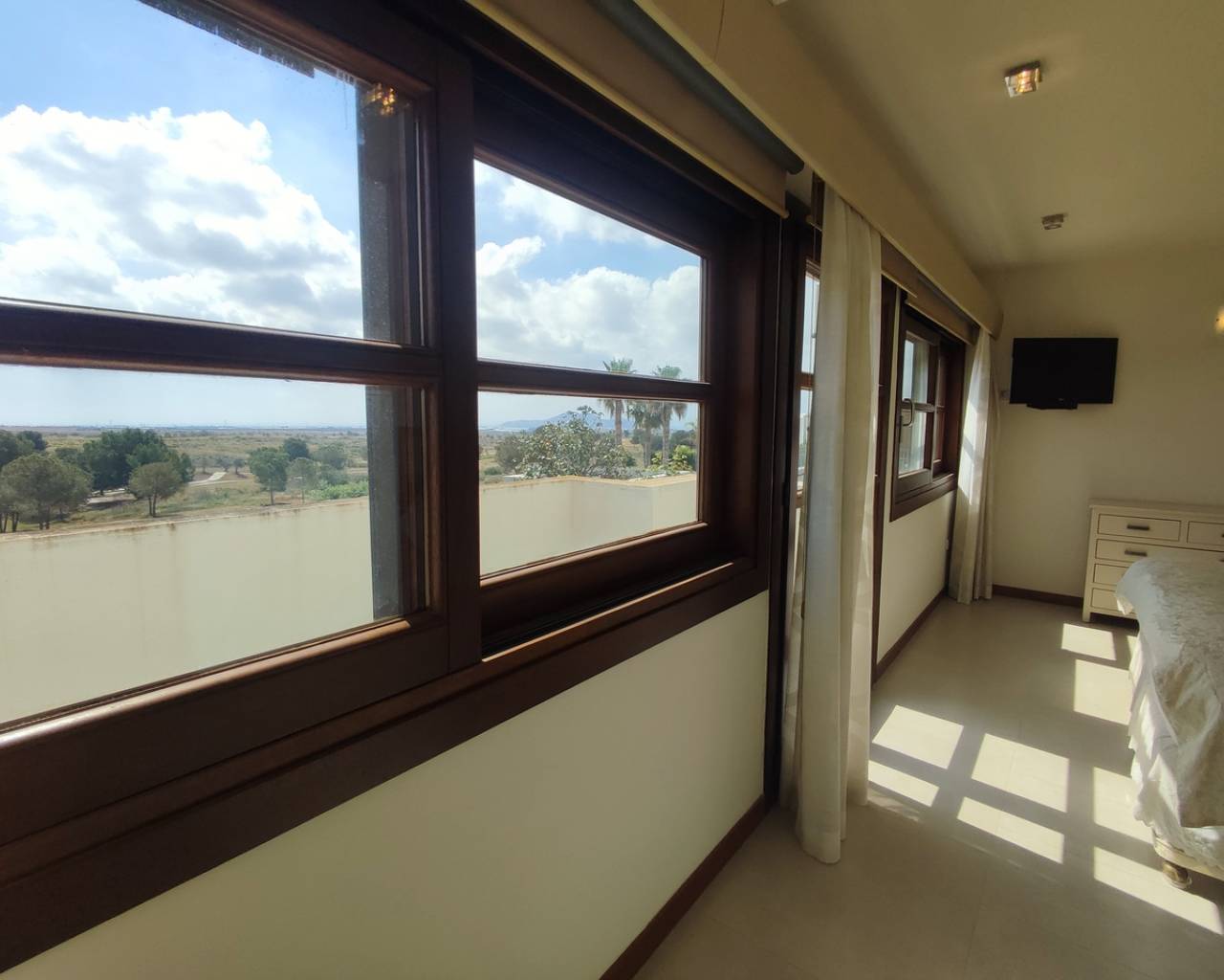 Set in a commanding position on an impressive plot overlooking the golf course with views to the sea, this 4-bedroom, 5-bathroom (4 en-suite) property oozes space and opulence.Amidst rolling landscapes and vibrant greenery, this exclusive resort is undergoing an exciting transformation with the resorts championship golf course designed by the legendary Seve Ballesteros set to reopen in approximately the first quarter of 2026, as is the clubhouse with a restaurant, a stylish cocktail bar, a practice driving range, and a putting green.Features:1387m2 Plot.360m2 Build.2 Bedroom both with ensuite downstairs.2 Bedroom both with ensuite upstairs.Downstairs Toilet.Large Dining Room.Impressive Kitchen with doors leading to dining area, lounge and outside terrace.Pantry.Huge Lounge with patio doors leading to outside terrace, seperate doors leading to office and bedrooms.Office with walkin storage.Electric Gates.Covered Driveway.Double Garage.Outsite Kitchen.10 x 5 swimming pool.Huge Landscape garden low maintenance.Terrace leading of bedrooms upstairs.Solarium.Panoramic Views - Mountains, Men Menor, Gardens, Countryside and Golf Course.LOCATION - The villas are a 25 minutes drive from the new Murcia International Airport and just over an hour from Alicante airport. Peraleja Golf is within 30 minutes from the lively cities of Murcia and Cartegena. The popular Spanish town of Sucina, made famous by A Place in the Sun TV program, is only 5 minutes by car and offers a good choice of bars and restaurants, two supermarkets, chemist, doctors, ironmongers, all everyday amenities. The tourist towns and beaches of Santiago de la Ribera, Lo Pagan and Los Alcazares are only 20 minutes away.Peraleja Golf Course, clubhouse and Piano Bar are currently closed, however it has been purchased by new investors and is on the pathway to a remarkable transformation, with renovations already underway on many of the unfinished properties. As part of the overall investment plan, the new owners now own much of the open area extending beyond the boundary of the golf course and are actively evaluating the opportunities for using that land as future recreational space. This is a great opportunity to buy a fantastic golf villa in the early stages of the redevelopment and secure it before the prices inevitably rise when the golf course, Clubhouse and Piano Bar reopen.