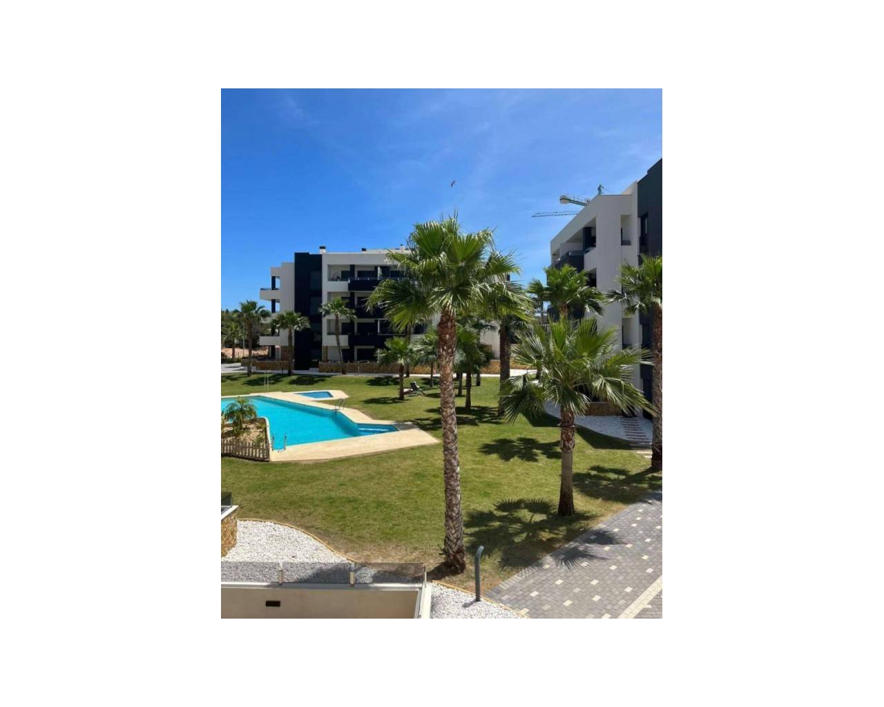 Apartment. Bright & Modern Apartment with Large Terrace and Garden Views This elegant first-floor apartment, completed in 2020, offers comfort, space, and style — all in a prime location. Featuring a large south-east facing terrace with beautiful views over the communal garden and pool, this property is ideal for those seeking a relaxed Mediterranean lifestyle. The apartment comprises 2 spacious bedrooms and 2 modern bathrooms. The master bedroom benefits from an en-suite bathroom with underfloor heating, while the second bedroom is perfect for guests and also served by a second heated bathroom. The open-plan kitchen flows into the bright and airy living room, creating a welcoming space for relaxing or entertaining. From here, you access the generous front terrace, partially enclosed with glass curtains, making it enjoyable all year round — open in the summer, sheltered in the winter. Included Features East, south and west orientation Partially furnished interior Fully equipped kitchen Central air conditioning (hot/cold) Electric shutters and indoor roller blinds Underfloor heating in both bathrooms Lift from underground garage directly to the apartment Private underground parking space + secure storage room Ready to move in The complex This well-maintained residential complex features: Manicured gardens with natural grass and palm trees A large communal swimming pool Petanque court Peaceful and green surroundings Prime Location Centrally located within walking distance of shops, bars, restaurants, and all other daily amenities. Close to several golf clubs, La Zenia Boulevard shopping centre, and the white sandy beaches of Orihuela Costa. Contact Contact us today for more information or to book your private viewing. This property is ready to welcome you.