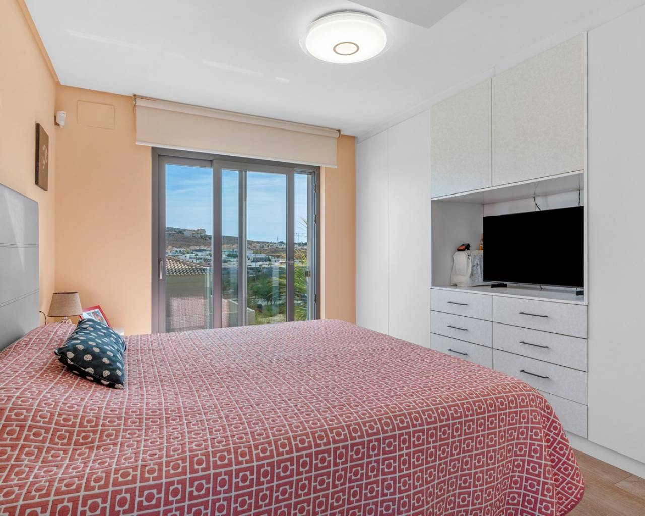 This impressive villa in Benijófar combines luxurious living with practical possibilities. The top floor features a very spacious master bedroom, a large dressing room, and a generous bathroom. The bedroom opens onto an extensive terrace, perfect for sunbathing or enjoying the views. The ground floor (approx. 85 m²) is currently set up as a practice area, with one large main room and two adjoining treatment rooms. It also includes a laundry room, a large storage area, and a separate room for the boiler and heating system. This level offers plenty of potential: the treatment rooms could easily be converted into additional bedrooms, and the entire ground floor could serve as a guest house or self-contained apartment. Please note: no photos of this floor are currently available. On the first floor is the spacious living area with open kitchen, fully equipped with Miele appliances and finished to a high standard. This floor also includes a large bedroom with an ensuite bathroom and a separate toilet, with direct access to a terrace. Large sliding doors from the living room lead to the private pool and sunny terrace, seamlessly connecting indoor and outdoor spaces. A bright and spacious office is also available. Outside, next to the pool, there is a poolhouse with storage, a separate toilet and shower, and a covered outdoor kitchen/bar, perfect for entertaining or relaxing in the sun. This villa offers the perfect combination of luxury, comfort, and functionality – ideal for those seeking a high-end home with both private living space and a fully equipped practice area.