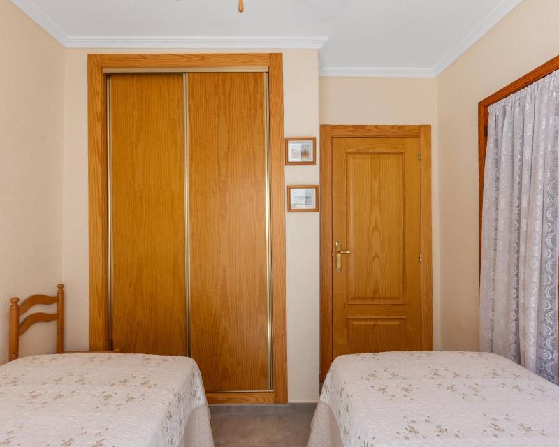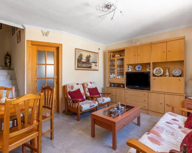 Discover this charming family villa located in the Torreblanca area of Torrevieja. With a constructed area of 80 m2 and a usable area of 78 m2, this property is ready to move into. The home features three spacious double bedrooms that offer comfort and privacy, ideal for families. It also has a full bathroom and an additional toilet. Its southeast orientation ensures light throughout the day.~~The plot has a total area of 40 m2 where you can enjoy the outdoors thanks to its private terrace surrounded by mature trees that provide natural shade.~~Notable extras include a refreshing pool, perfect for those warm summer days, as well as a security door to ensure your security. Strategically located near the sea (just 900 meters), you will have easy access to both beaches and various local amenities; nearby buses facilitate transportation, while shopping centers, schools, and medical facilities are available within the immediate area.~~You can also take advantage of the children's play areas, ideal for children, whether playing or exploring outdoors without worry, as the property is fenced, offering greater peace of mind.