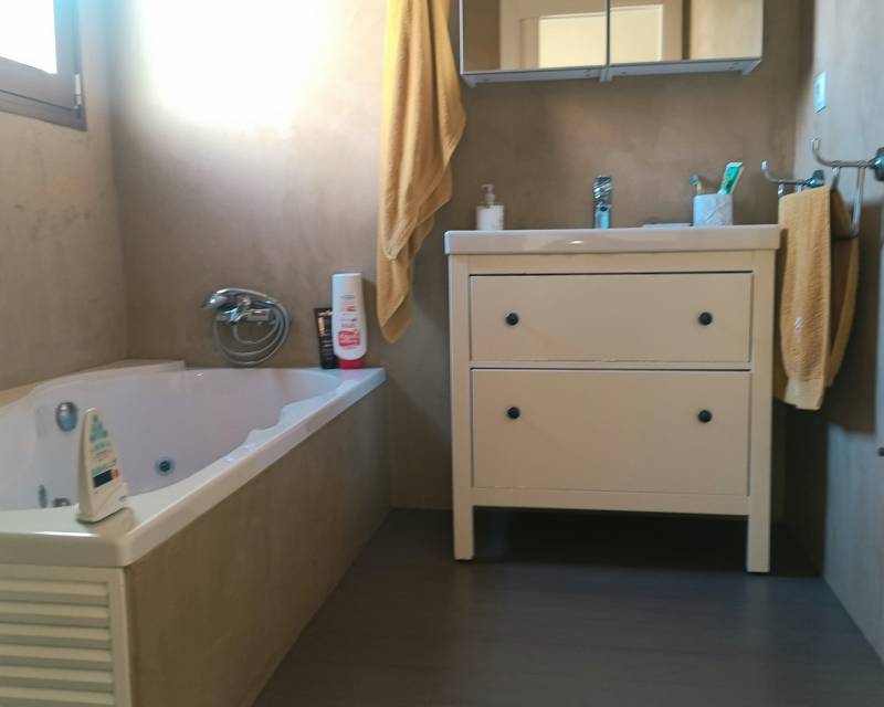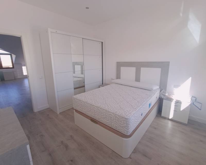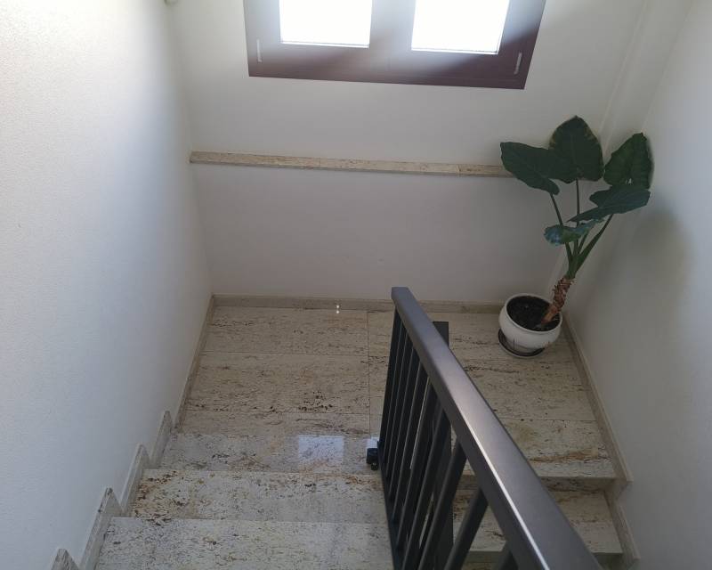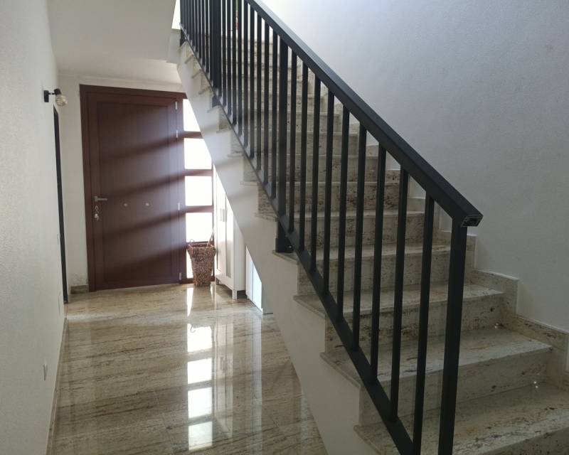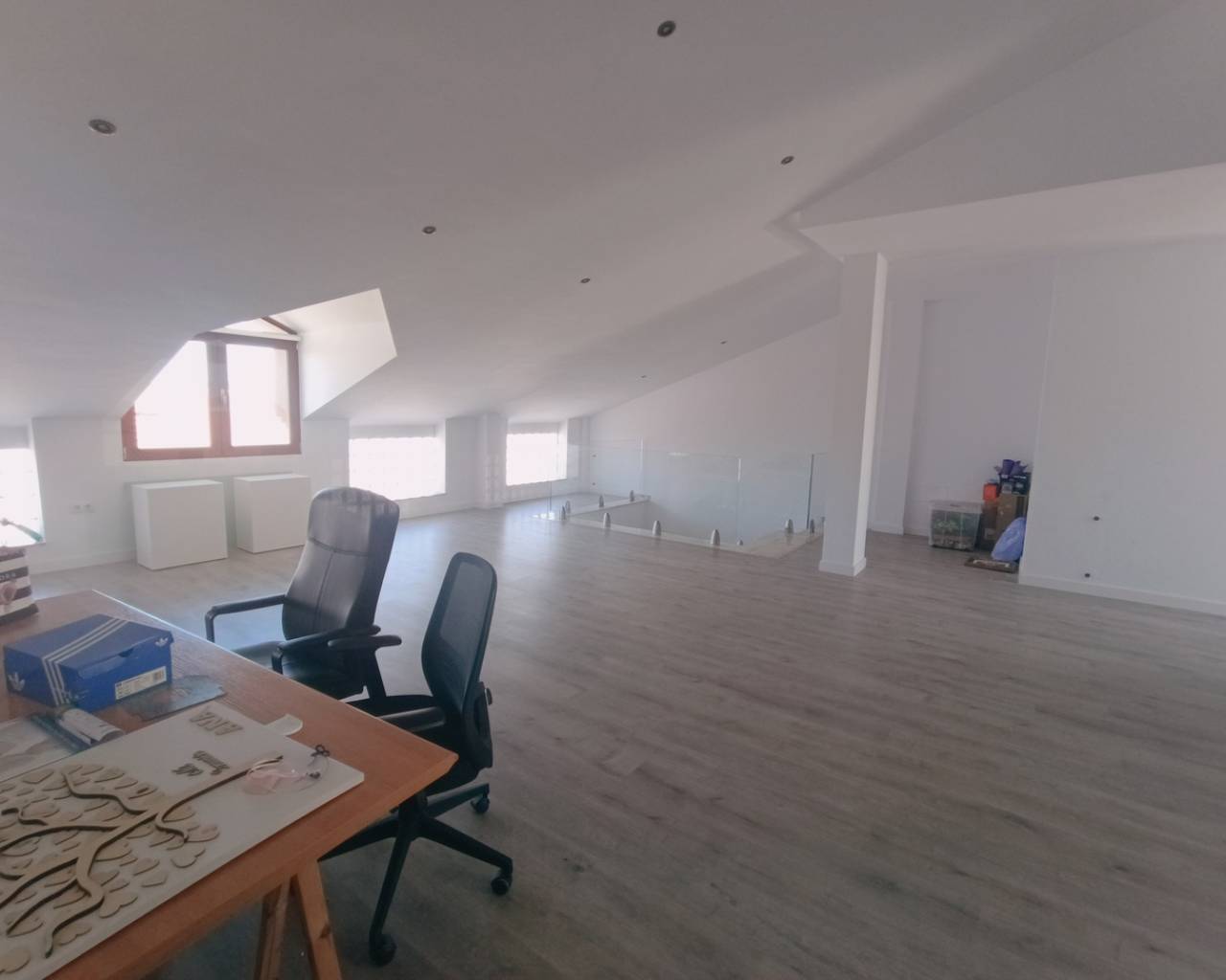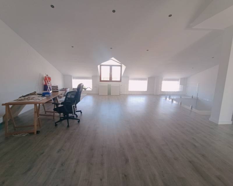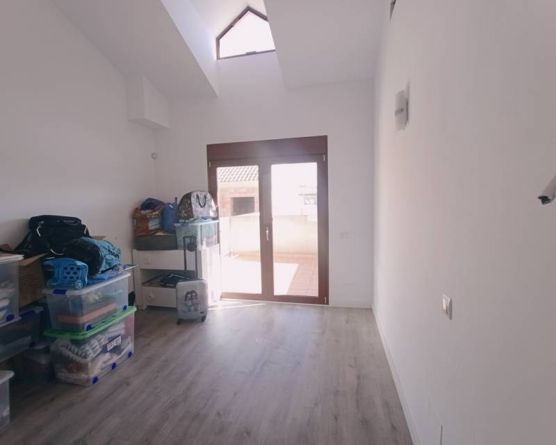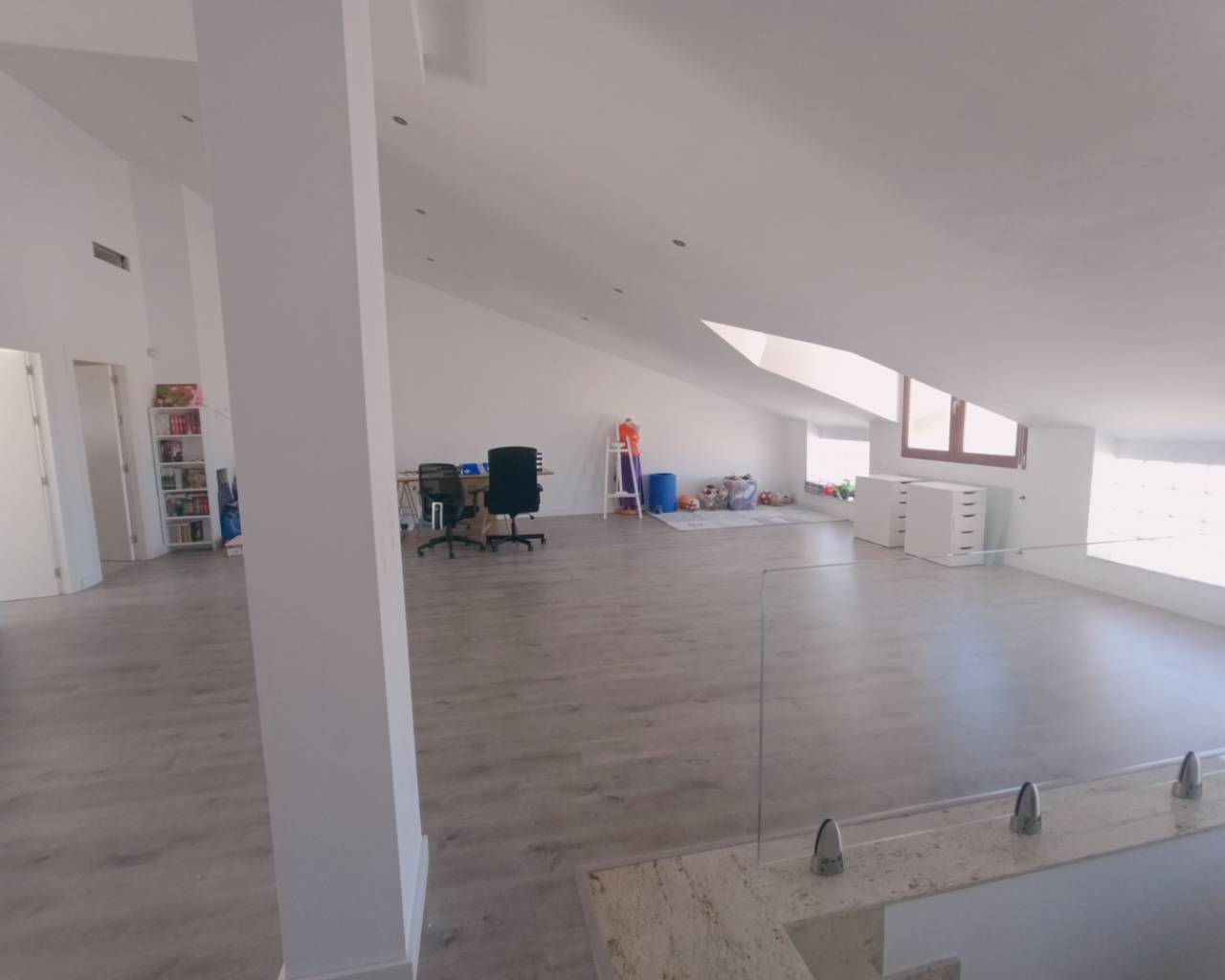 This exceptionally spacious townhouse in Roldán offers modern living finished to a very high standard, with extensive accommodation and enormous versatility. With over 300 m² of built living space, the property is arranged over three levels and includes a very large garage, a first-floor main living area, and a second upper living level, all connected by an elegant stairwell and a pre-installed lift shaft (a lift can be added if desired).The property is located on a quiet residential street in the traditional Spanish village of Roldán, offering peace, privacy, and easy access to local amenities.The house is entered through the front door into an impressive stairwell with marble flooring and a marble staircase leading to the upper floors. To the right, there is a substantial garage measuring approximately 125 m², providing ample space for multiple vehicles, bicycles, storage, or potential conversion, subject to requirements.The stairwell leads to the first floor, which forms the main living area of the home. Here you will find a large, fully fitted kitchen with extensive pantry storage, Silestone worktops, ceramic hob, oven, extractor fan, fridge-freezer, washing machine, dishwasher, and dining table with chairs. The kitchen opens directly onto a south-facing terrace, perfect for enjoying sunshine throughout the day.Also on this level is a spacious and comfortable living room, furnished with leather sofas, parquet flooring, and generous storage units. This is a relaxing and welcoming space, ideal for family living, and it leads onto a further terrace where you can enjoy fresh air and outdoor relaxation.The first floor also offers two double bedrooms. The main bedroom features an en-suite bathroom with bathtub, vanity unit, WC, and window, as well as a walk-in wardrobe providing excellent storage space. The second bedroom is also a double and comes complete with fitted wardrobes, a double bed, and bedside cabinets.A further stairwell leads to the upper level of the property. On this floor, there is a striking loft-style space with very high ceilings, feature windows, and doors leading onto another south-facing terrace. There is also an additional enclosed double bedroom with fitted wardrobes, drawer unit, and high-quality parquet flooring.The open loft area is currently used as a study but could easily be converted into a fourth bedroom, or even a fifth if required. This flexible space would be ideal as a studio, playroom, home office, or independent living area, especially as this level offers the potential for separate access and benefits from the existing lift shaft.Completing this floor is a large bathroom fitted with a walk-in shower, vanity unit, and WC, finished in light neutral tones and filled with natural light.This unique property has been built to specification and offers outstanding flexibility. It is ideal for a large family, multi-generational living, home-working professionals, or buyers seeking a property with space for a business, studio, or office.With its generous proportions, high-quality finishes, and huge potential, this townhouse is a rare opportunity to buy such a spacious property close to all amenities in the town of Roldan, just 20 minutes to the coast, 20 minutes to the city and 25 minutes to Murcia city.