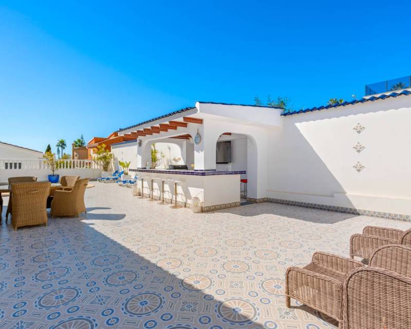 Spacious South-Facing Villa with Private Pool on 805 m² Plot Set on a generous 805 m² plot, this impressive villa offers space, privacy, and comfortable Mediterranean living just minutes from the coast near Guardamar del Segura. With 189 m² of built space, the property features bright interiors, large outdoor areas, and excellent lifestyle amenities, making it ideal as a permanent residence or luxury holiday home. The villa offers three spacious bedrooms with fitted wardrobes and two bathrooms, along with a fully fitted separate kitchen, a bright living area, and a practical utility room. Comfort is ensured year-round with air conditioning, gas central heating, central heating, ceiling fans, and double glazing.One of the 3 bedrooms is set in its only seprate guest house with shower room . Outside, the home truly shines. The south-facing orientation provides all-day sunshine around the private swimming pool (10x5) and landscaped gardens. An outdoor kitchen and BBQ / bar area and shpower and out side toilet ,creates the perfect setting for entertaining family and friends, while a private solarium offers additional space to relax and enjoy open garden and pool views. Key Features 3 Bedrooms and 3 BathroomsBuilt area 189 m2Plot size 805 m2Private swimming poolSouth facing orientationSeparate fully fitted kitchenAir conditioning and gas central heatingUtility room and storage roomDouble glazingPrivate gardens with pool and garden viewsOutdoor kitchen BBQ areaSolariumOff road parking Location Conveniently located close to shops, restaurants, and everyday amenities, with excellent access to the surrounding Costa Blanca. Beach: 10 minutesGolf: 10 minutesAmenities: 5 minutesAirport: 30 minutes This villa offers a rare combination of generous plot size, south-facing outdoor living, and excellent proximity to beaches, golf, and services—if you are looking to buy a villa in Spain this is an ideal home for enjoying the Mediterranean lifestyle.