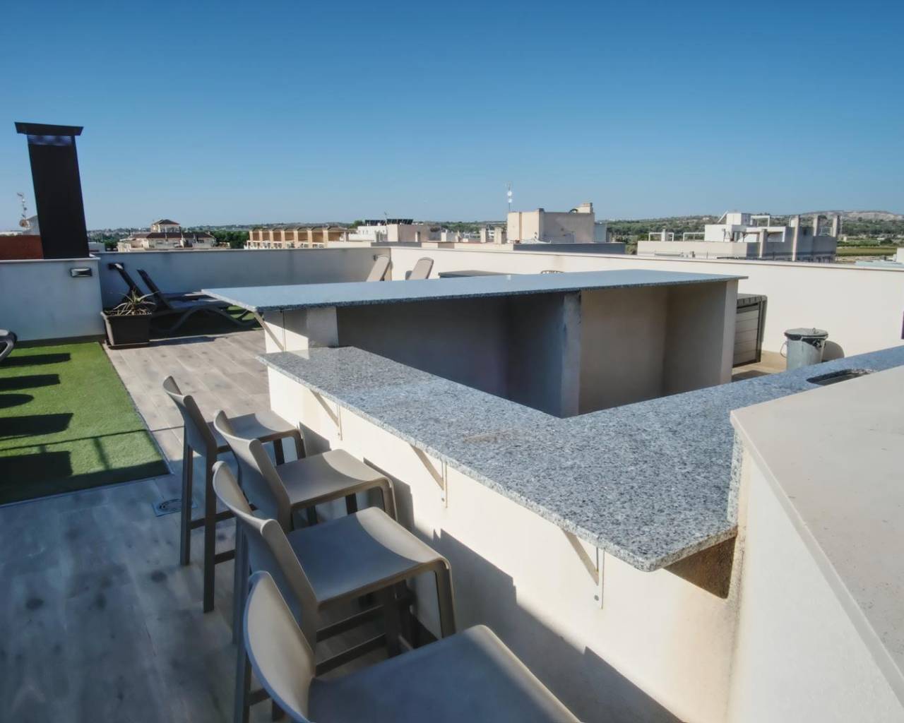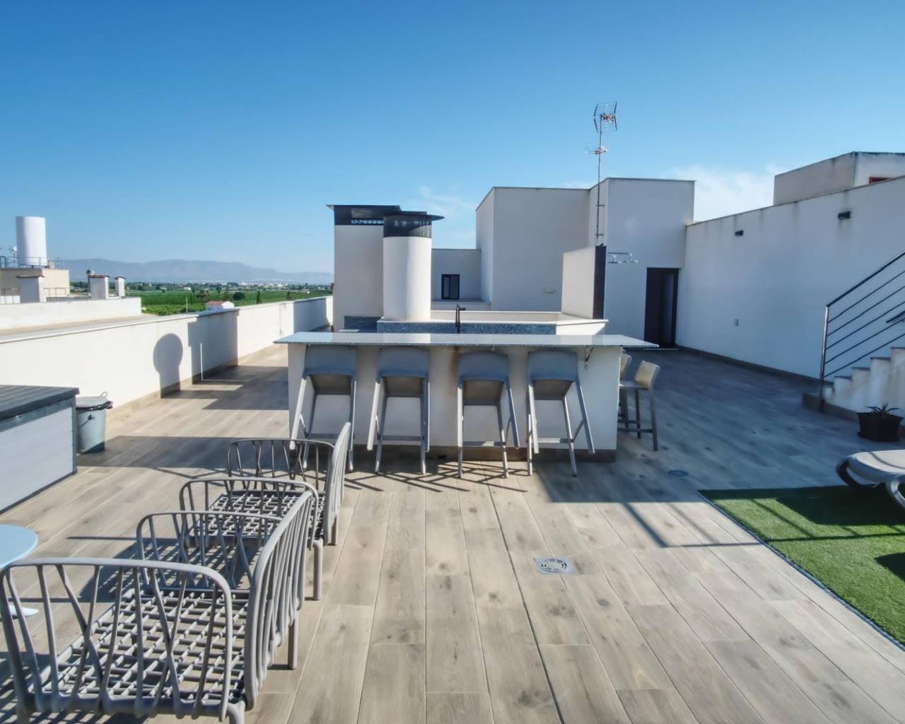Live in comfort and style in this spectacular modern apartment located on the second floor, west-facing to fill every corner with natural light and offer unforgettable sunsets. With 2 bedrooms and 2 bathrooms, every detail has been designed using high-quality materials to provide elegance and comfort.~~The main living space features a spacious open-plan living room with an integrated kitchen, complete with a stylish breakfast bar, perfect for everyday living or entertaining friends and family. The property also includes a practical pantry-storage room at the entrance, ideal for keeping everything organised, and a 15 m2 covered terrace that invites you to relax or enjoy outdoor meals all year round.~~Among its standout features are polished concrete floors, high-end appliances and designer furniture, as well as high-quality metal carpentry with mosquito screens and roller blinds. The apartment also benefits from an efficient climate control system, including centralised air conditioning and ceiling radiators, ensuring maximum comfort in every season. In addition, the property has a private storage room in the basement, with the possibility of renting a parking space.~~The building offers unique communal areas on the rooftop terrace, including an outdoor gym, swimming pool, barbecue area, sauna and showers, creating the perfect space to relax and enjoy leisure time without leaving home.~~The property is sold furnished and equipped, except for some items; see inventory.~~Located in Formentera del Segura, in a quiet and pleasant area, just 5 km from the beaches of Guardamar del Segura, this home perfectly combines the tranquillity of residential living with proximity to the sea and all amenities — an ideal place for year-round living or for enjoying your holidays.~