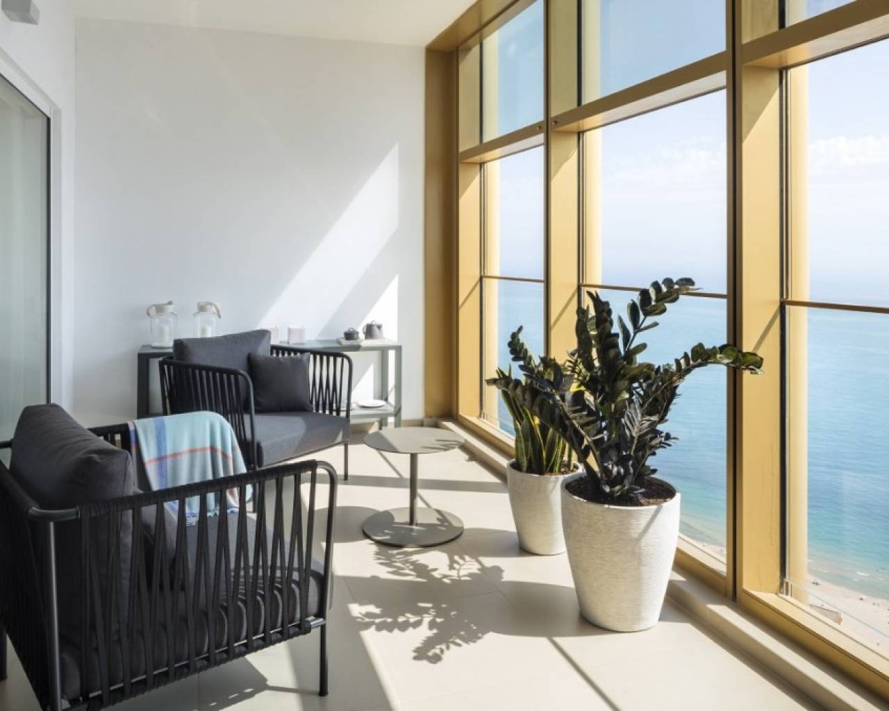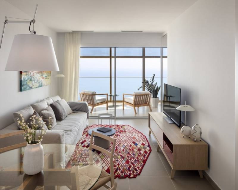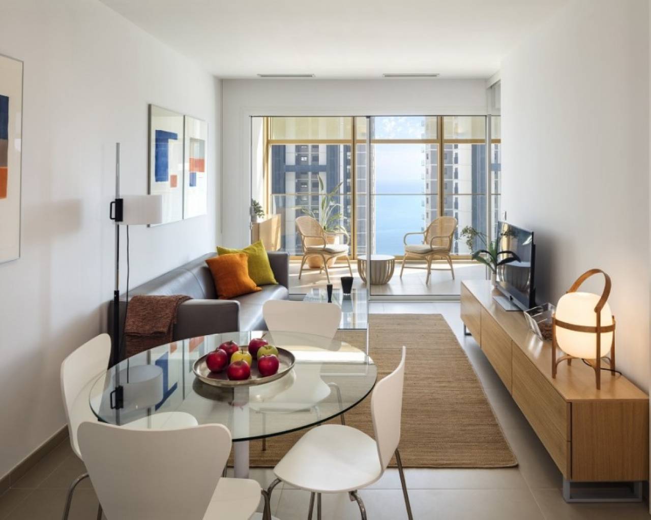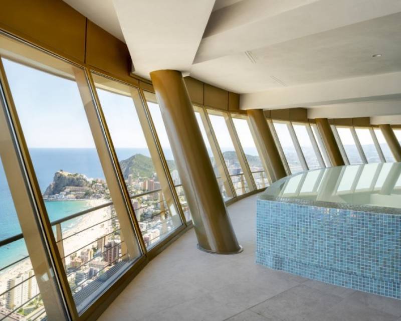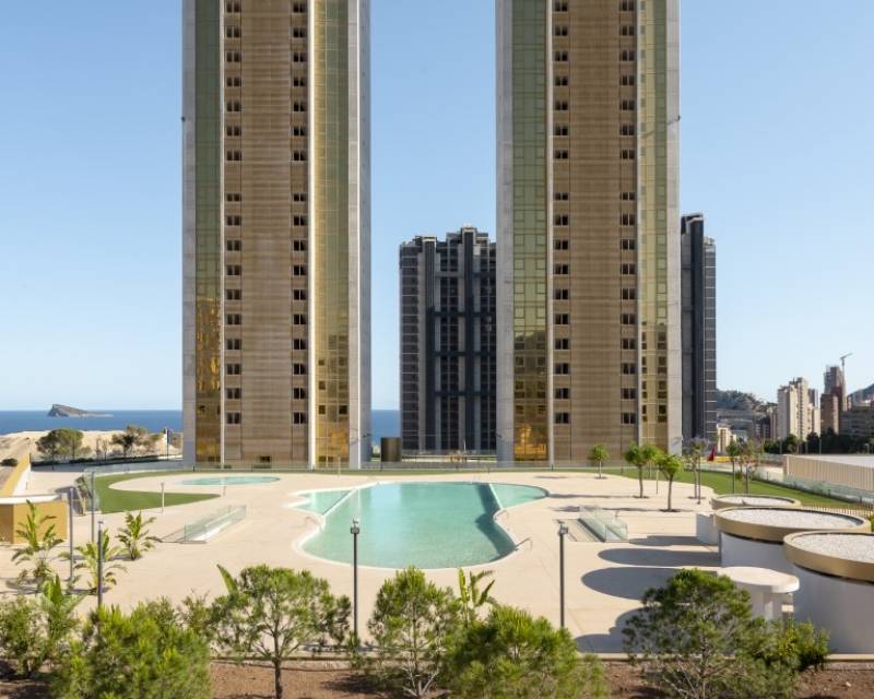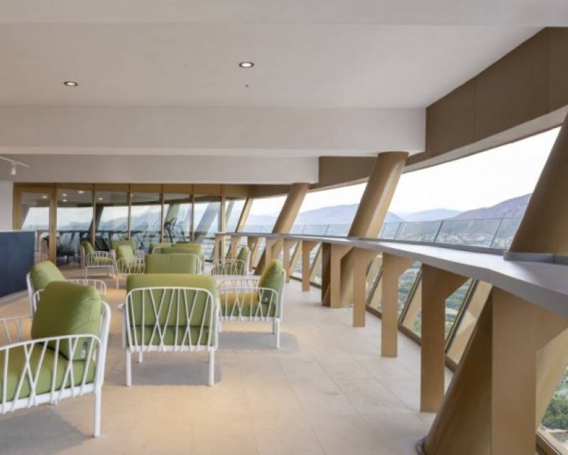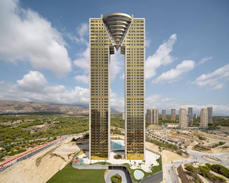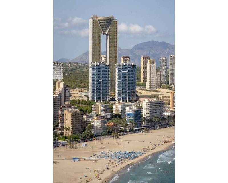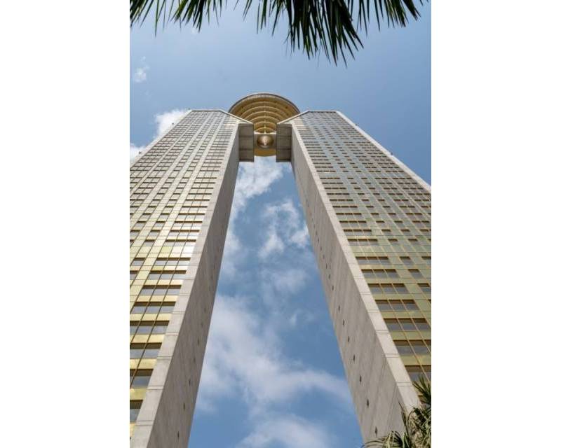 TU OPORTUNIDAD DE COMPRAR UN PISO DE LUJO EN EL EMBLEMÁTICO RASCACIELOS INTEMPO DE 52 PLANTAS EN BENIDORM DONDE "EL CIELO SE ENCUENTRA CON EL MAR" La exclusividad de tener el Mediterráneo como horizonte..... Estos apartamentos de lujo de alta gama ofrecen hermosas vistas desde cada apartamento debido a su formidable altura, el concepto de diseño abierto de su fachada y su excelente ubicación. Además, sus exclusivas zonas comunes, lo convierten en el conjunto residencial más singular de Europa. Son 2 torres rectas paralelas, conectadas en los pisos superiores con un cono invertido y una base elíptica, para dar forma de M. El edificio también tiene 3 plantas de sótano. La fachada de hormigón sin terminar y vidrio dorado y aluminio, brilla al sol. Cada torre tiene 3 apartamentos por piso en los pisos principales donde hay apartamento de 2 dormitorios y 2 baños (excepto el del medio con 1 baño) con área construida que va desde 75-96m2 dependiendo del apartamento elegido. Los precios comienzan desde 362.000€ (sujetos a cambios) e incluyen una plaza de garaje hasta la planta 37. Pisos superiores bajo petición. La cocina incluye muebles con acabado laminado blanco, electrodomésticos de cocina de la marca Bosch que incluyen horno eléctrico y/o microondas, lavavajillas, vitrocerámica y nevera. Hay aire acondicionado y suelo radiante. Las áreas comunes incluyen, cámaras de video vigilancia, jardines paisajísticos. Restaurante en la planta baja de la Torre Levante con 1200m2 de terraza. Junto a la torre de Poniente hay un parque infantil exterior y 2 salas polivalentes. Al fondo hay una zona de ocio de 4300m2 con 2 piscinas y zonas verdes. El piso 46 cuenta con 2 miradores en la azotea de cada torre y en el área central piscina climatizada y gimnasio, terraza al aire libre y sauna. En la azotea del piso 47 hay un bar, zona de camas balinesas, 4 jacuzzi y pérgolas. La torre cuenta con 6.500 m2 de zonas comunes exclusivas que han sido creadas para proporcionar el mayor confort posible a los residentes. Aquí podrás vivir atardeceres inolvidables desde la infinity pool, una fabulosa oferta gastronómica en los restaurantes con el mar a tus pies, o puedes terminar el día relajándote en uno de los jacuzzis del último piso, y mucho más. . Piscinas Gimnasio con equipamiento de última generación SPA y JACUZZIS Trabajo colaborativo Restaurante Bar con terraza áreas de juegos para niños CONSERJERÍA, VIGILANCIA Y SEGURIDAD 24H Póngase en contacto con nosotros para obtener un folleto detallado del nuevo informe de calidad de construcción y los materiales utilizados.