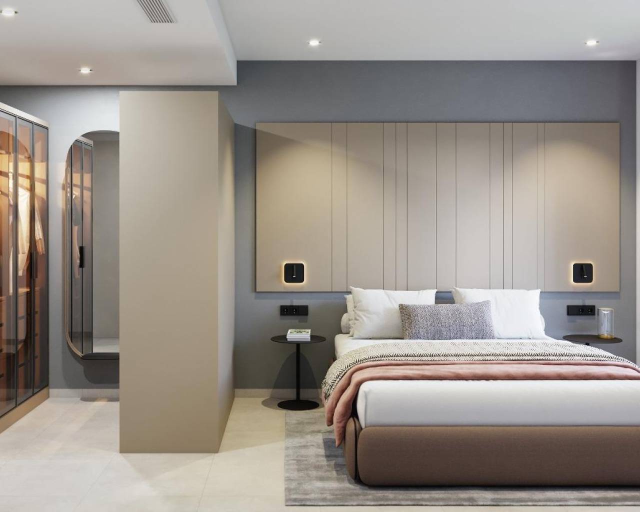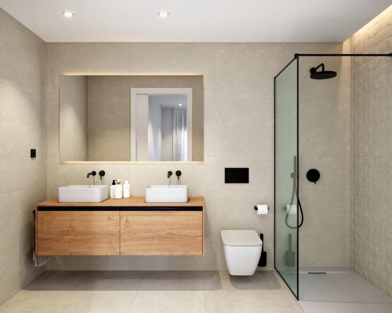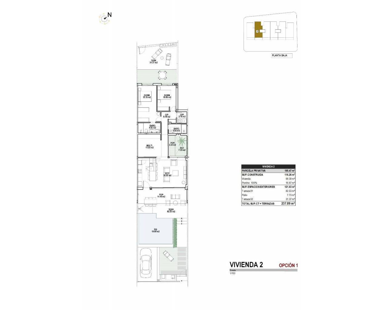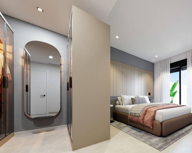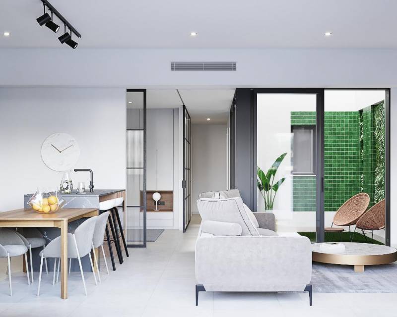RESIDENCIAL DE OBRA NUEVA DE BUNGALOWS EN PILAR DE LA HORADADA Residencial exclusivo de obra nueva de modernos bungalow apartamentos en Pilar de la Horadada. Las unidades de planta baja tienen terrazas delanteras y traseras con jardín privado, piscina y plaza de aparcamiento. Las viviendas de planta alta tienen un gran solarium en la azotea con piscina infinita, aseo, cocina exterior, césped artificial y una pérgola, todo incluido en el precio del apartamento. Todos los bungalows tienen 3 dormitorios, 2 baños, uno de los cuales pertenece al dormitorio principal, amplia cocina americana / salón con una cocina totalmente equipada con todos los electrodomésticos y un enfriador de vino de la marca Bosch / Siemens, también un purificador de agua en la cocina. En el dormitorio principal tiene grandes armarios con puertas de cristal e iluminación interior. Los baños vienen completamente amueblados y con suelo radiante. . En el salón tiene grandes ventanas correderas hacia la terraza que se pueden empujar completamente en la pared, creando un espacio increíble en el apartamento. Todo el apartamento tiene aire acondicionado y persianas eléctricas en todas las ventanas. Todos los materiales son de la más alta calidad y el proyecto tiene un diseño único y exclusivo. Todas las viviendas disponen de plaza de aparcamiento privada. Pilar de la Horadada es un típico pueblo español en la parte más meridional de la Costa Blanca. La gran calle principal tiene supermercados, muchas tiendas, restaurantes y bares y algunas plazas encantadoras. Las hermosas playas de Torre de la Horadada y Mil Palmeras con paseo marítimo de arena fina está a sólo 5 minutos. Los aeropuertos de Corvera (Murcia) y Alicante están respectivamente a 40 y 55 minutos.