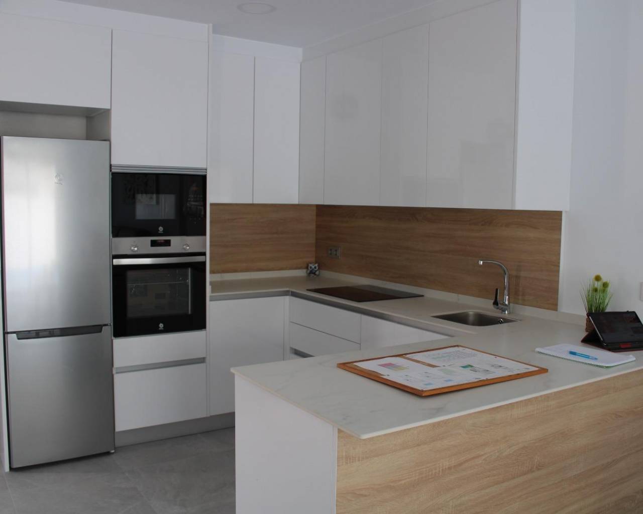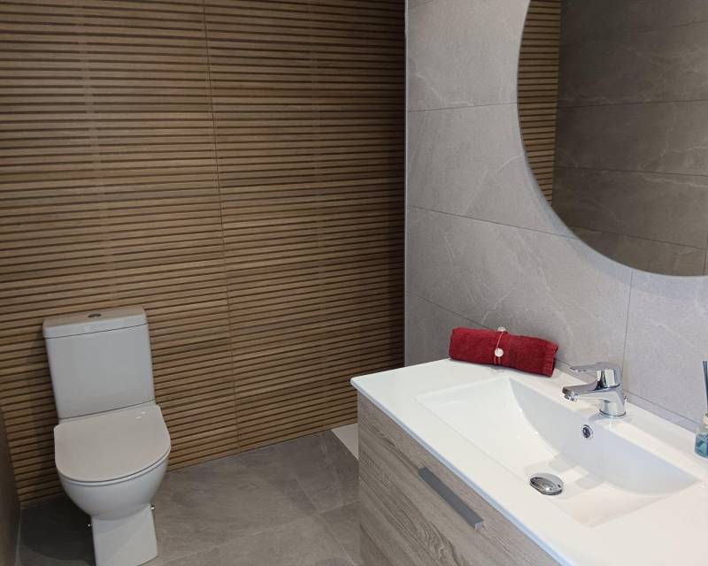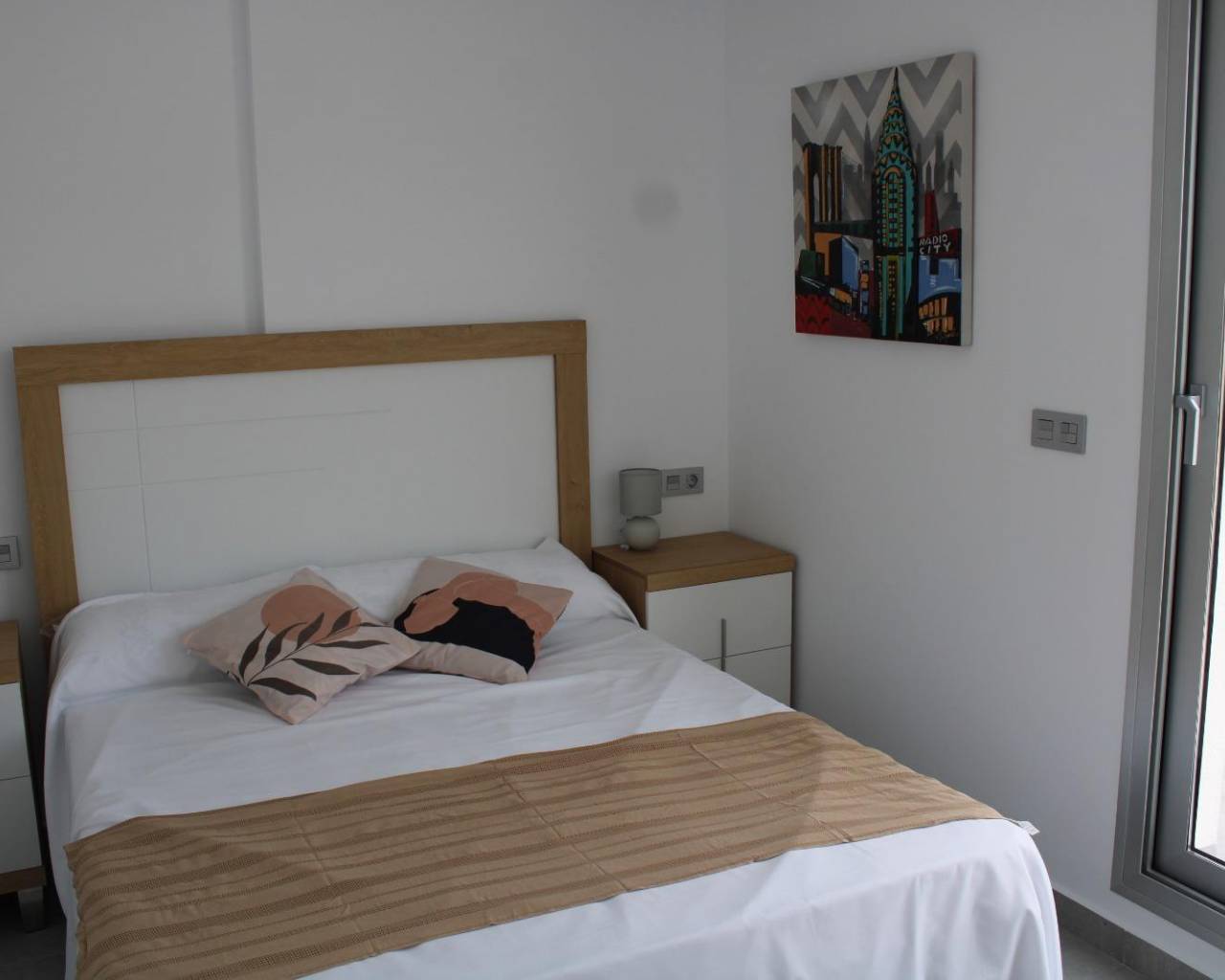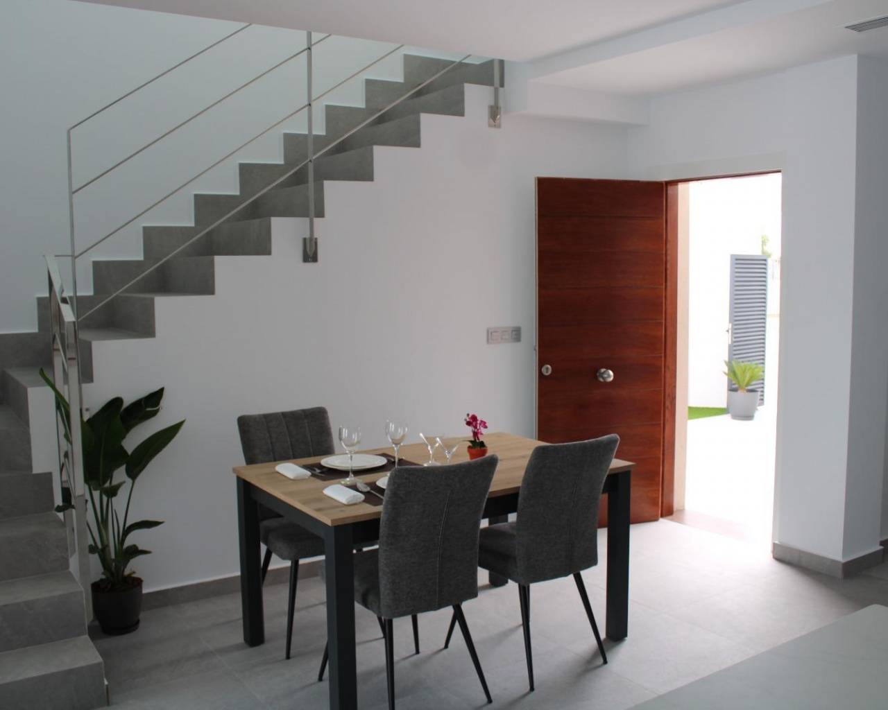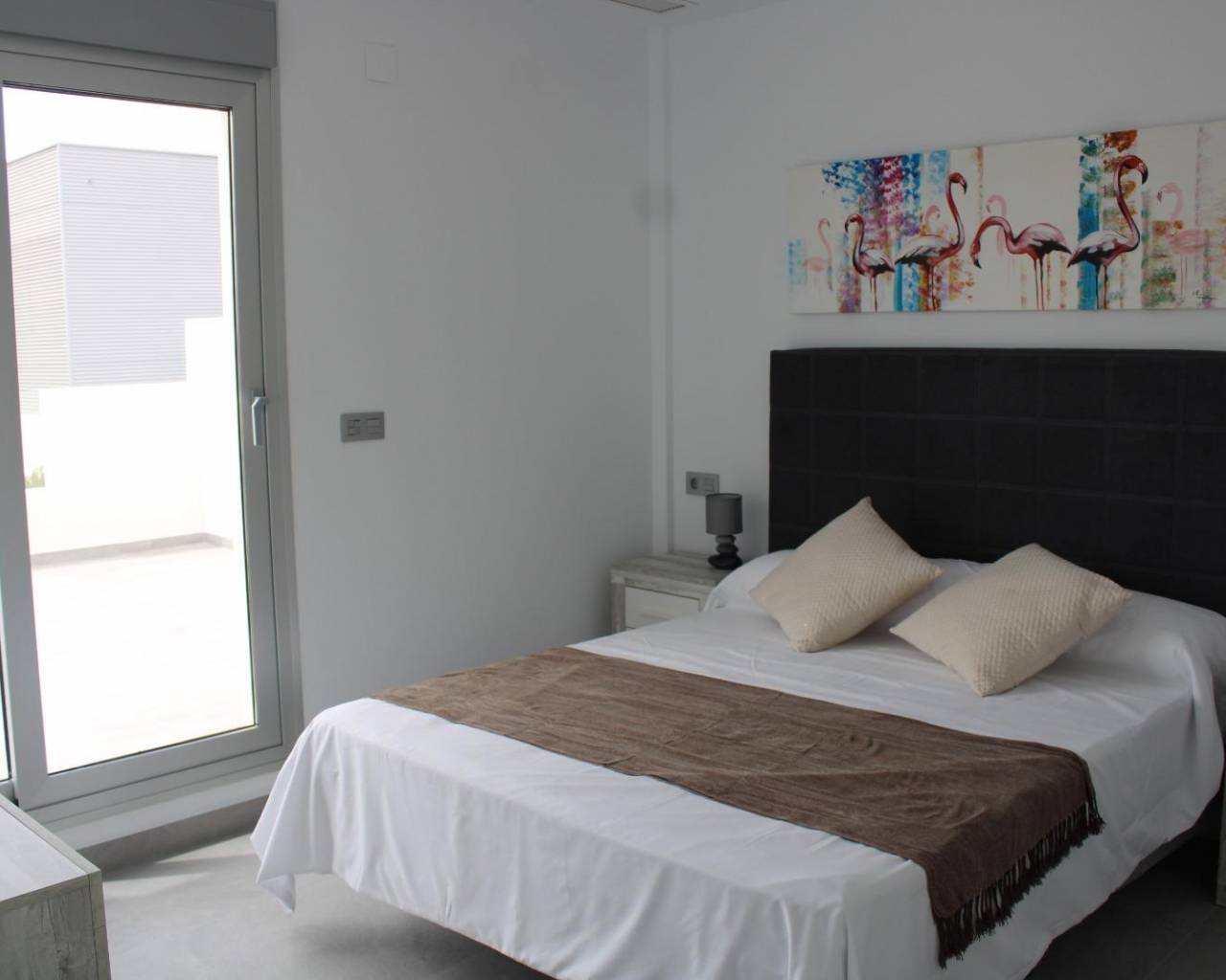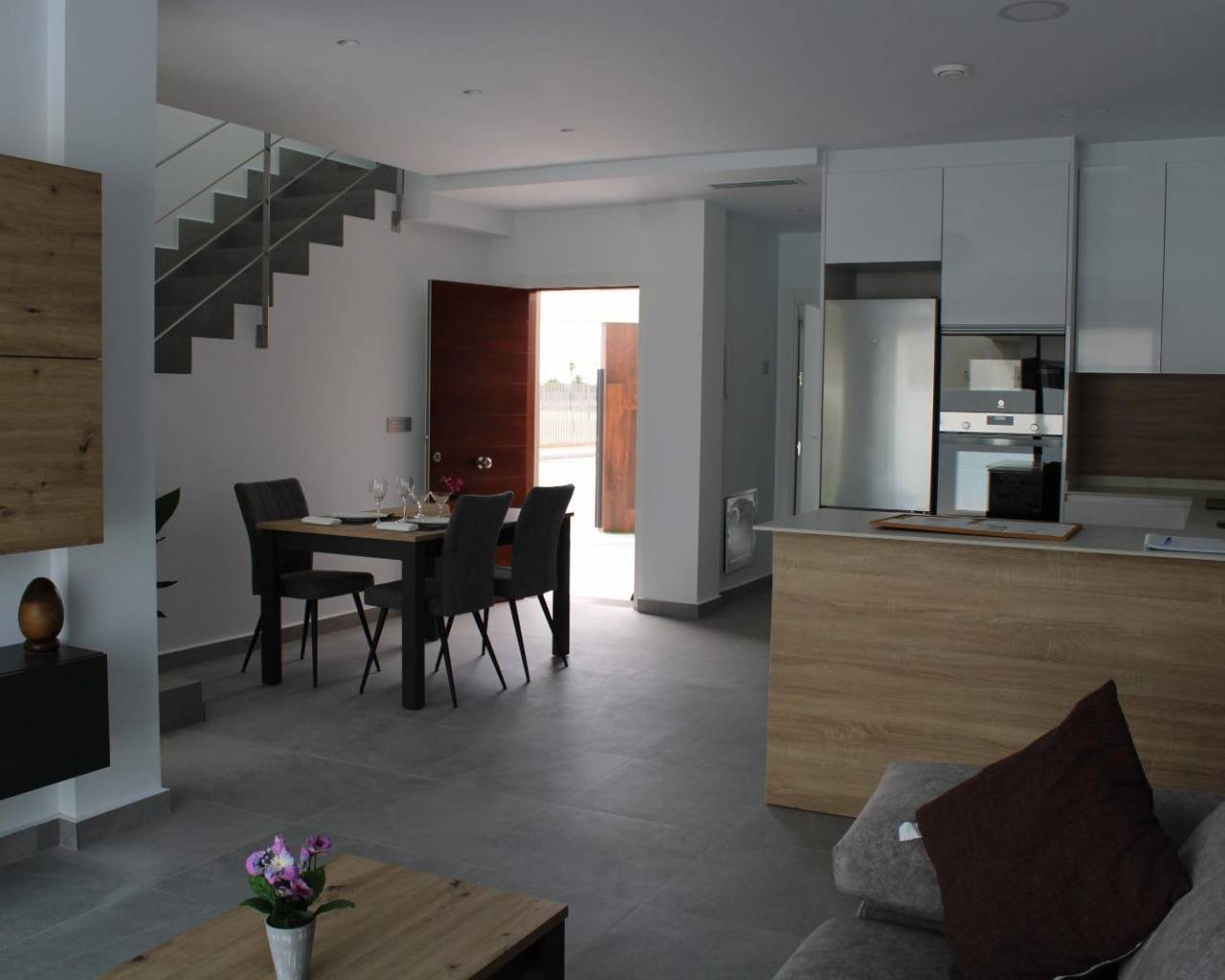 VILLAS DE OBRA NUEVA EN SAN FULGENCIO Villas independientes de nueva construcción situados en la localidad de San Fulgencio. Villas de 130 m2 construidos en parcelas de 180 m2, dispone de 3 dormitorios, 3 baños completos, 1 aseo, cocina americana con el salón-comedor, armarios empotrados, terrazas, solarium privado, jardín con piscina privada y plaza de parking. Se encuentra a 300 metros del centro del pueblo con todos los servicios, tiendas, restaurantes, ayuntamiento, banco. El pueblo de San Fulgencio está situado a unos 30 minutos del aeropuerto de Alicante-Elche, a 6km del campo de golf más cercano y a sólo 7km de la playa más cercana.