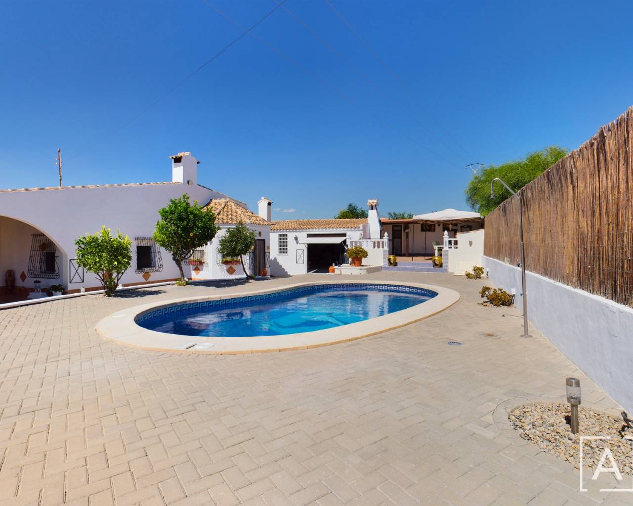 Estamos encantados de presentar a la venta esta espaciosa villa de 5 dormitorios y 3 baños ubicada en una ubicación tranquila pero a solo 9 km de la ciudad de San Javier y a 7,5 km de la ciudad de Sucina, que tiene una estación de tren con conexiones a Cartagen y Alicante. la Villa a través de puertas dobles, un camino de grava lo lleva al espacioso porche que proporciona una zona de estar al aire libre adicional y sombra. A la derecha del camino de entrada se encuentra la piscina y el área de cocina / bar al aire libre.
